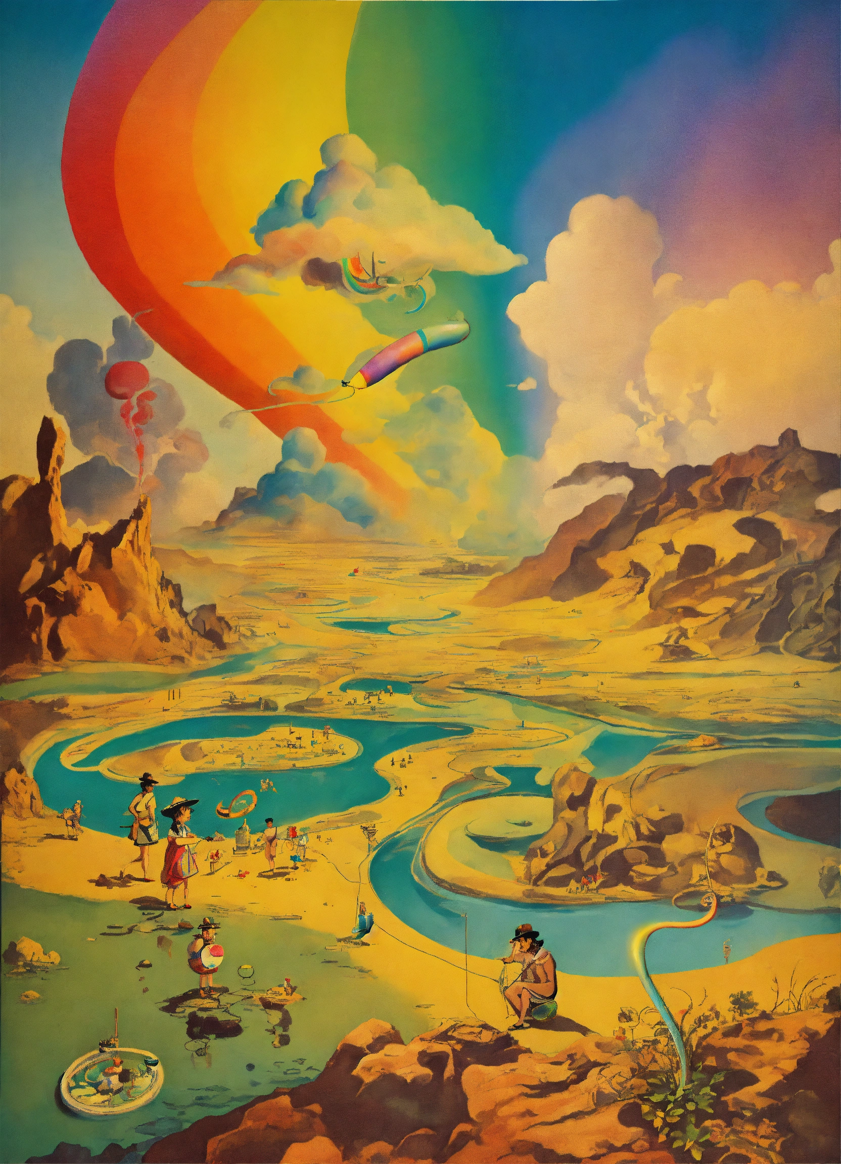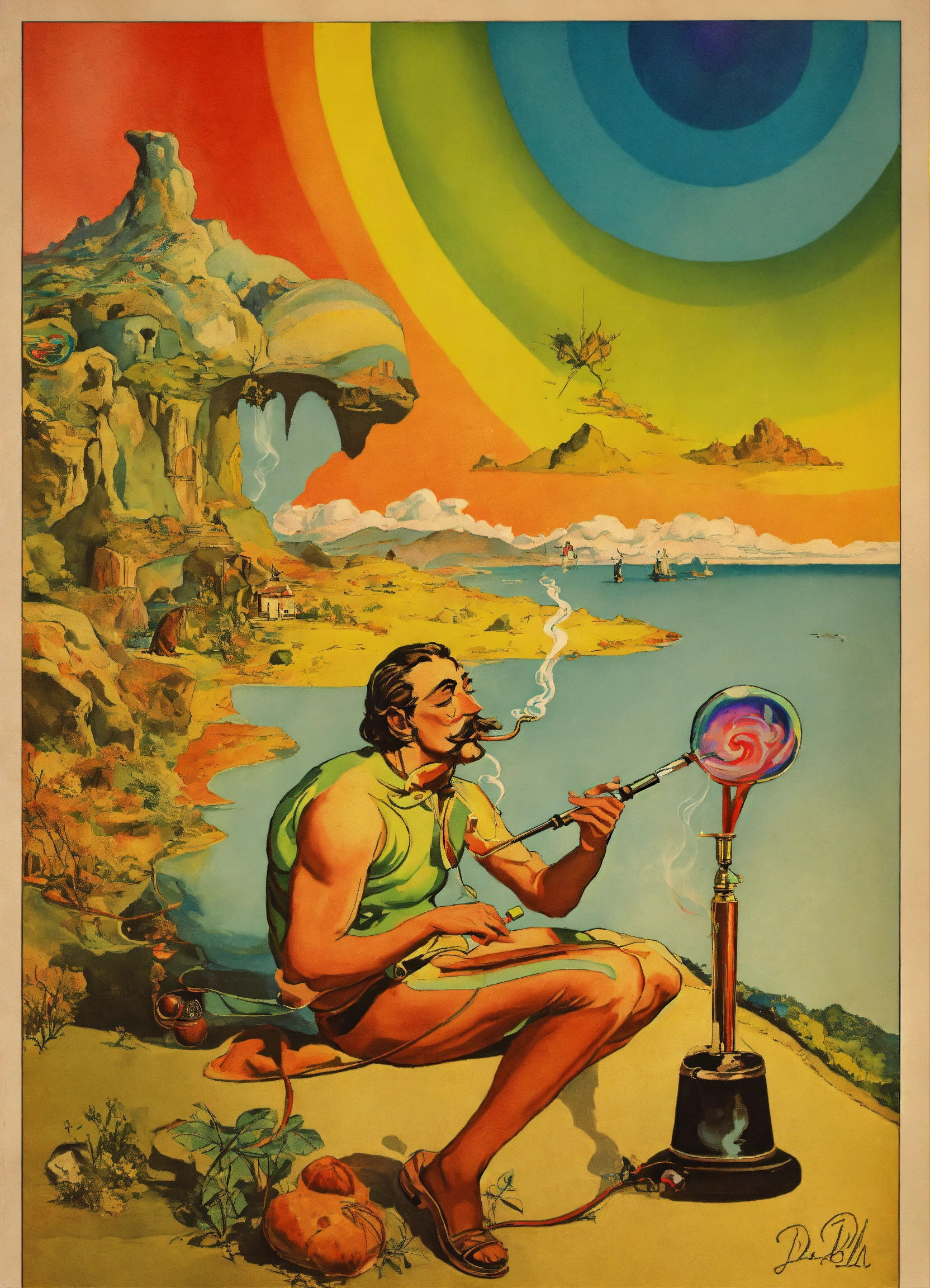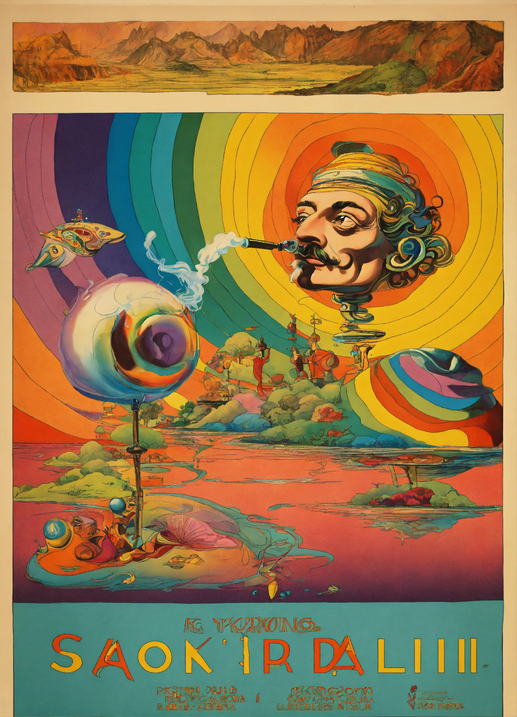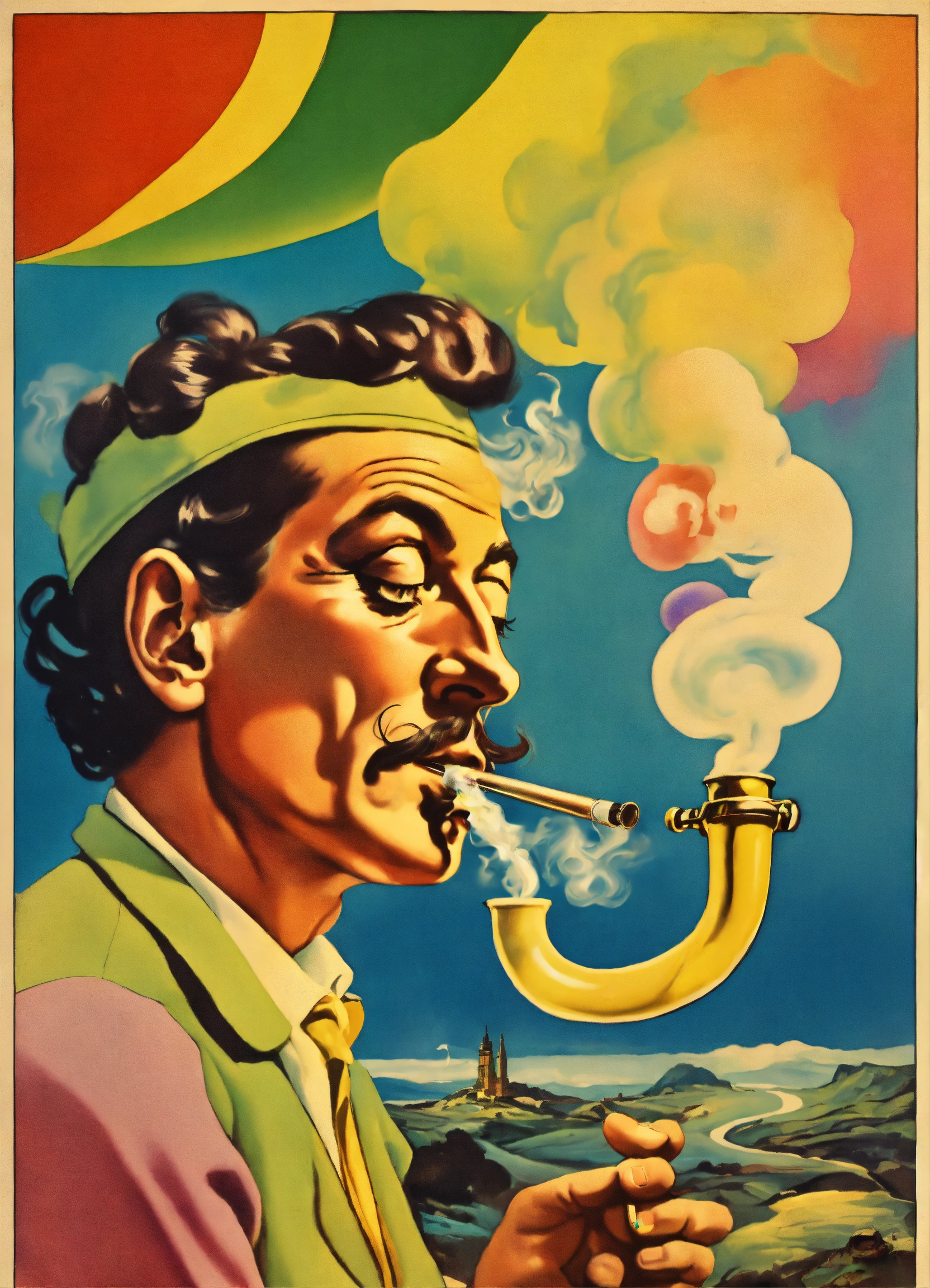 Retro poster cartoon smoking dmt pipe by salvador dali