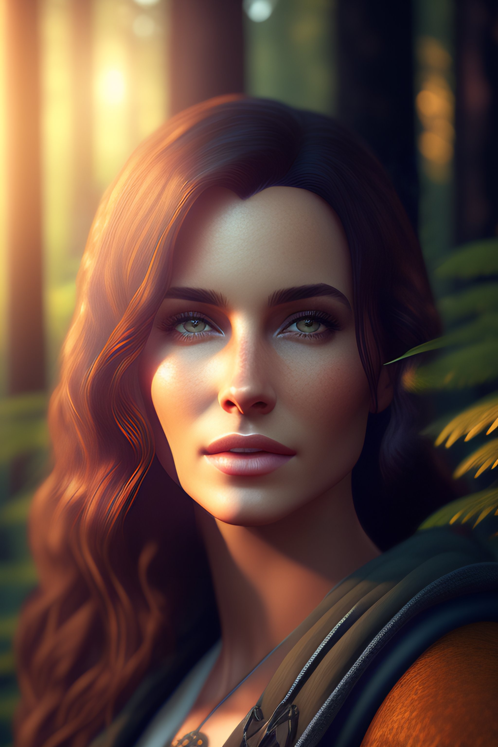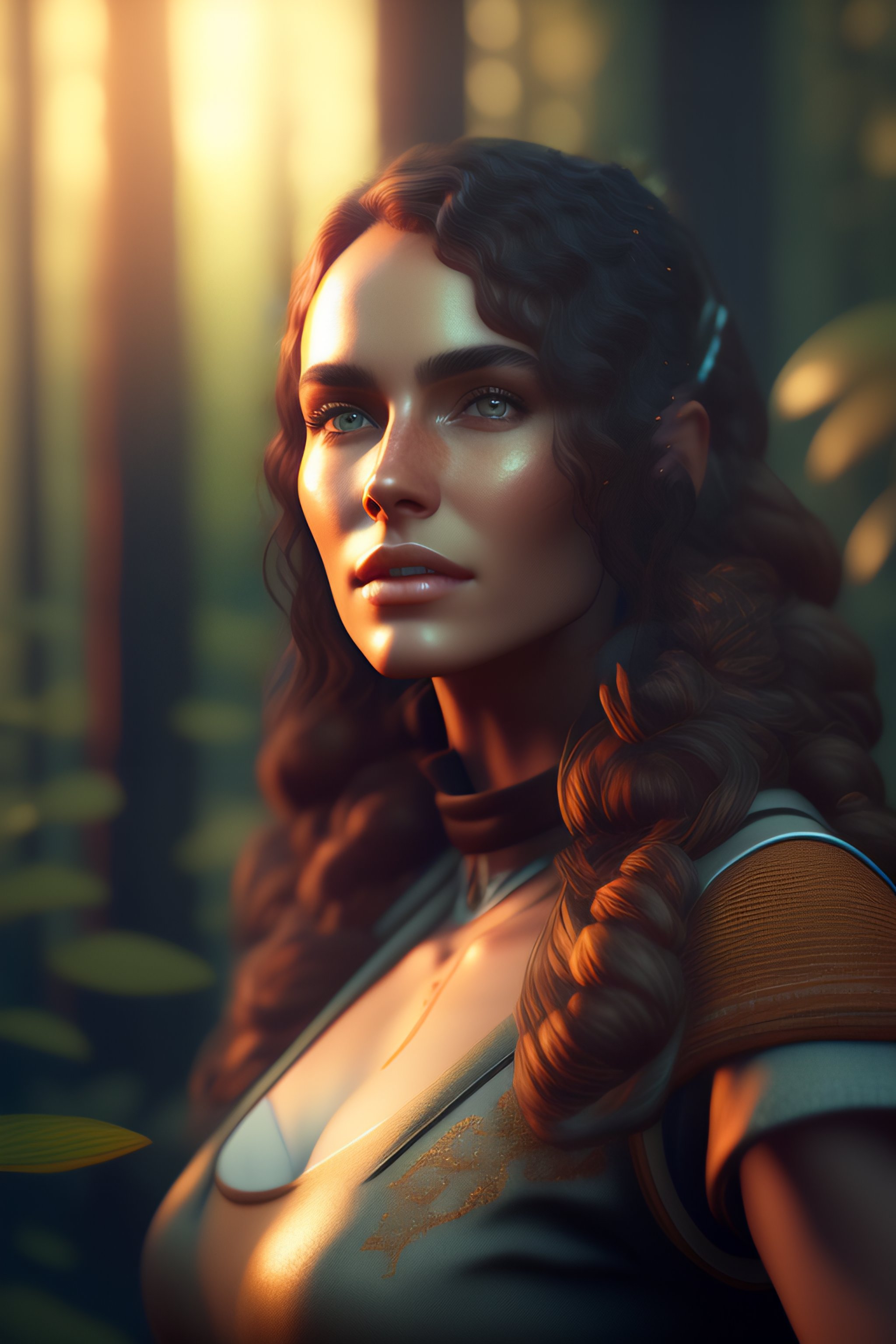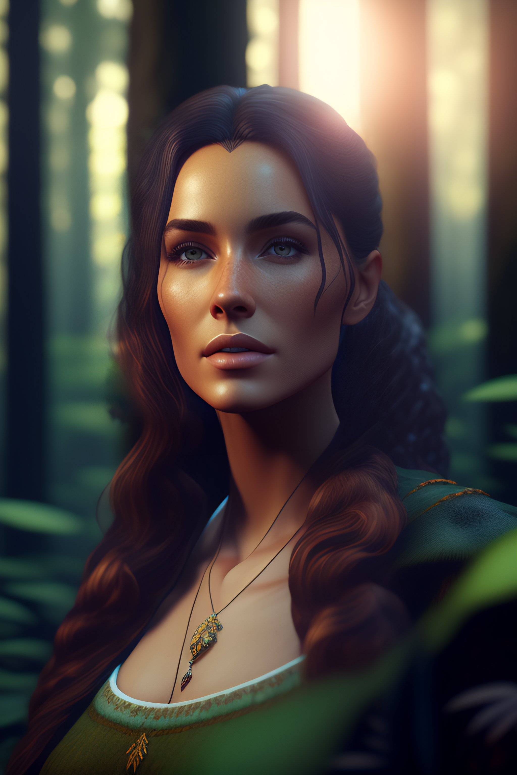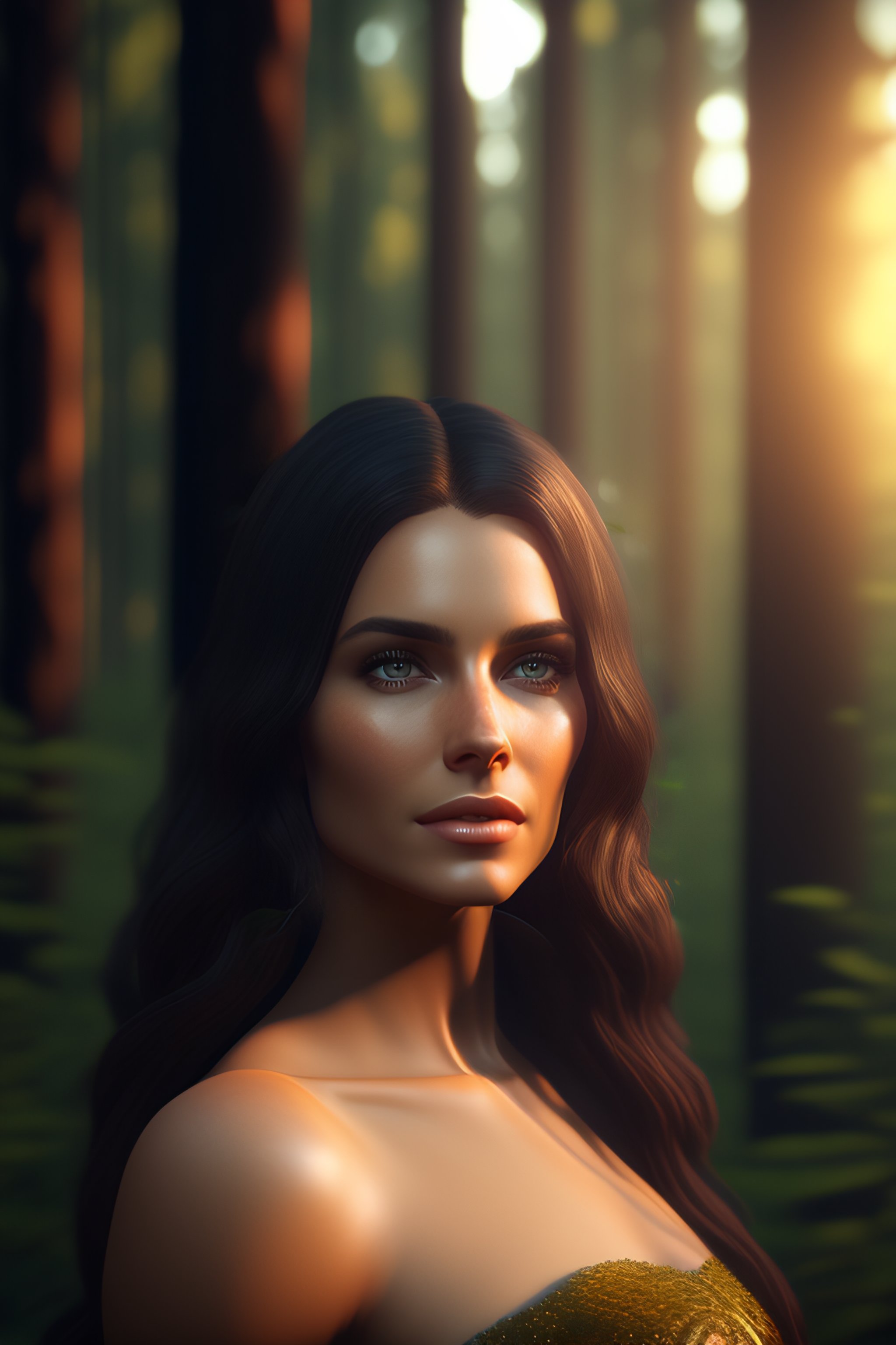 A beatifull woman un the forest, highly detailed, photorealistic, bright studio setting, studio lighting, crisp quality and light reflections, unreal engine 5 quality render