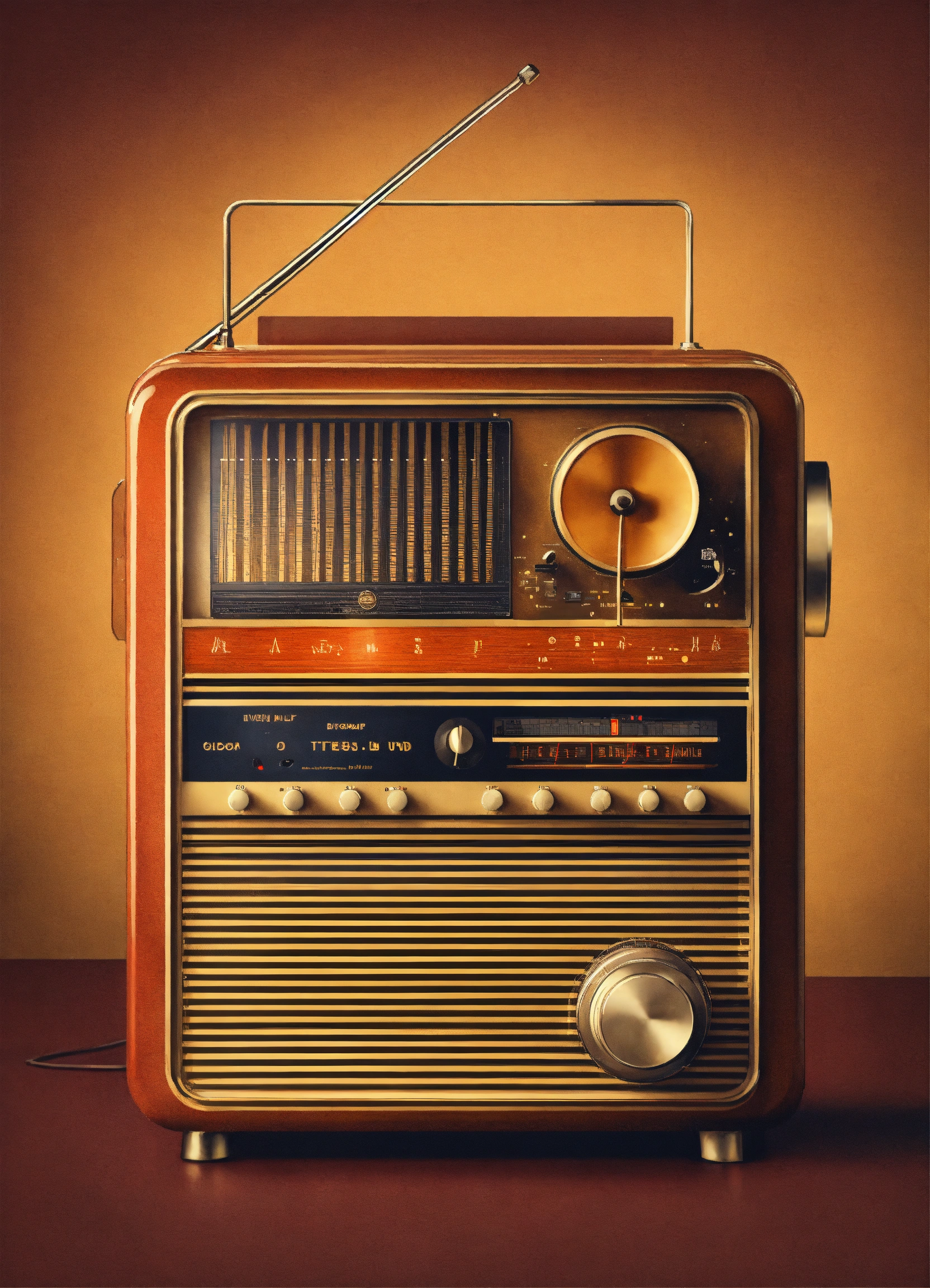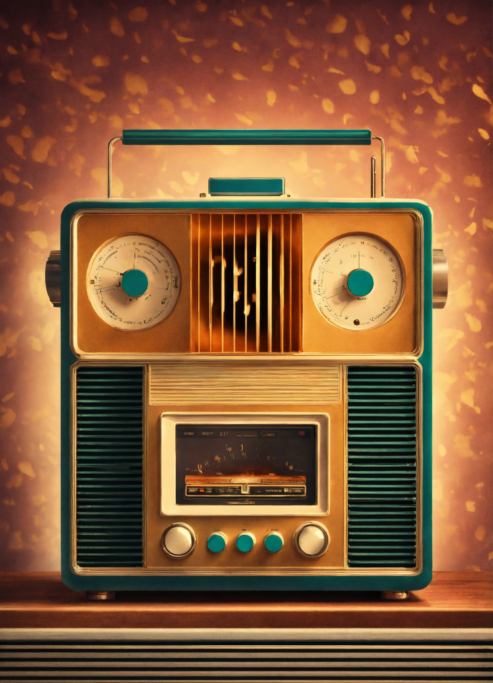 A retro-style radio emitting warm tunes, evoking memories of a bygone era nostalgic music vintage audio illustration.