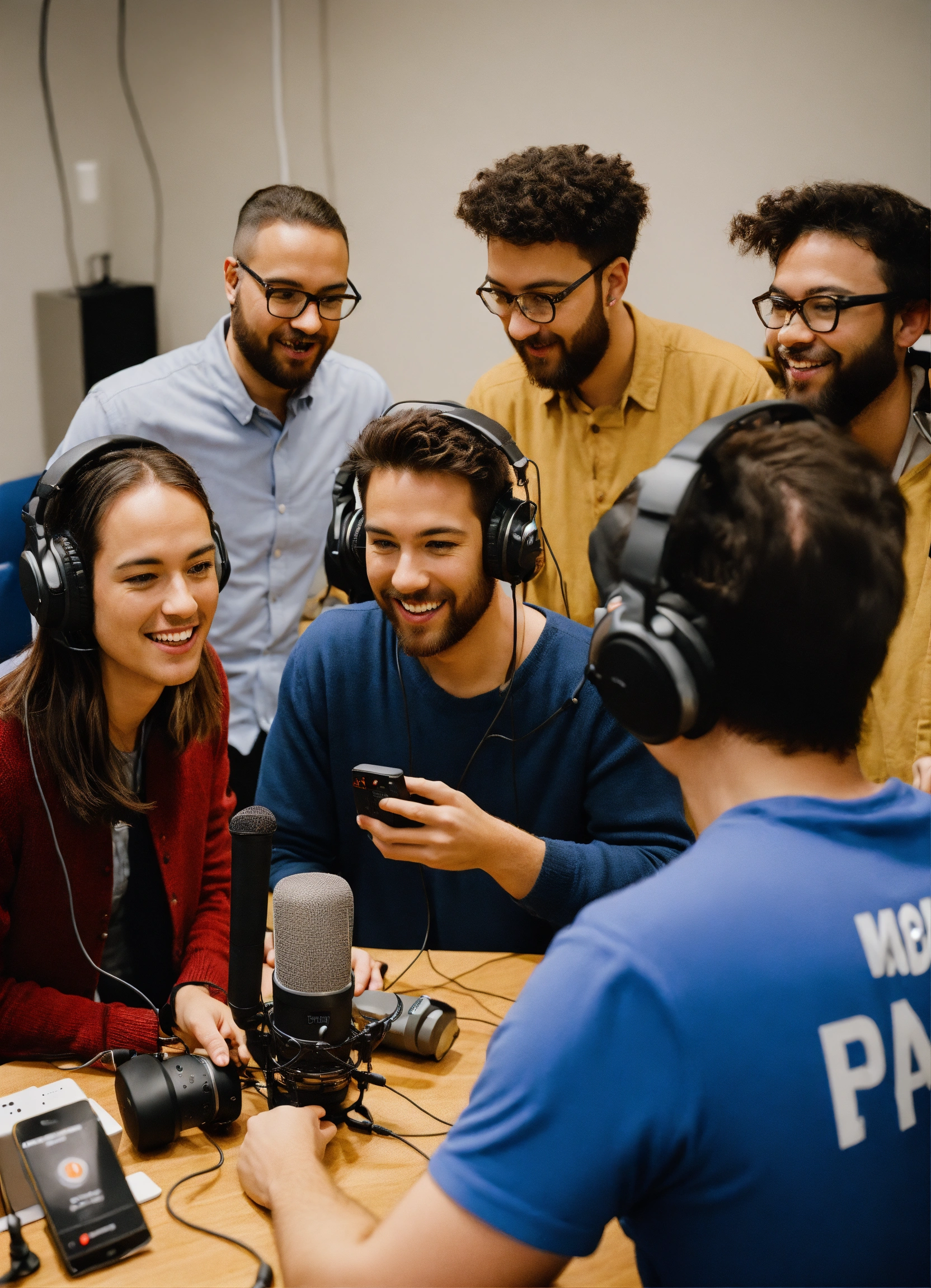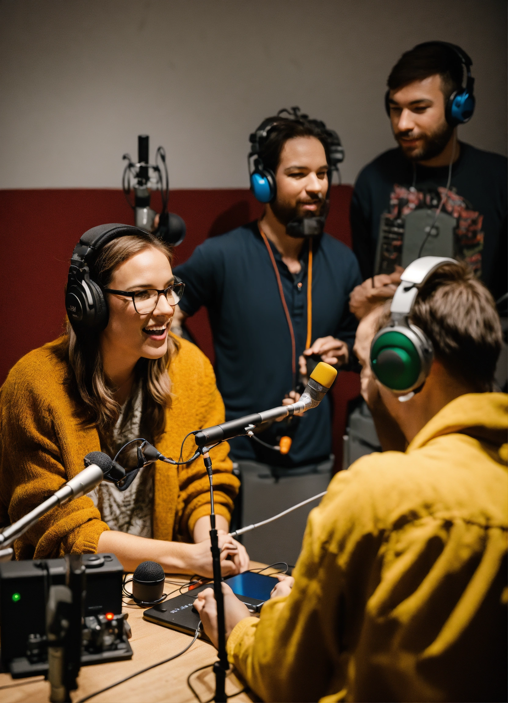 with radio and podcasting equipment