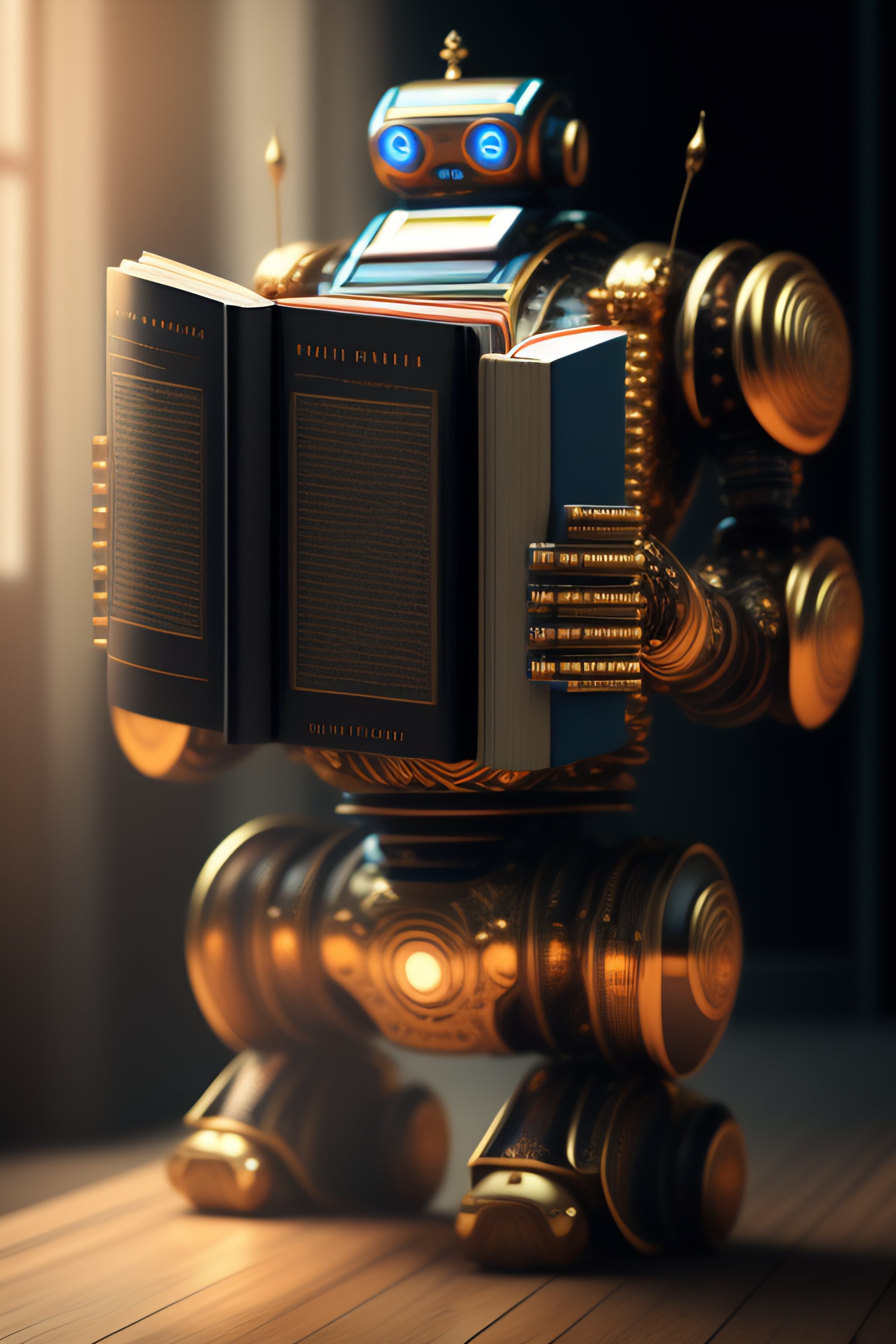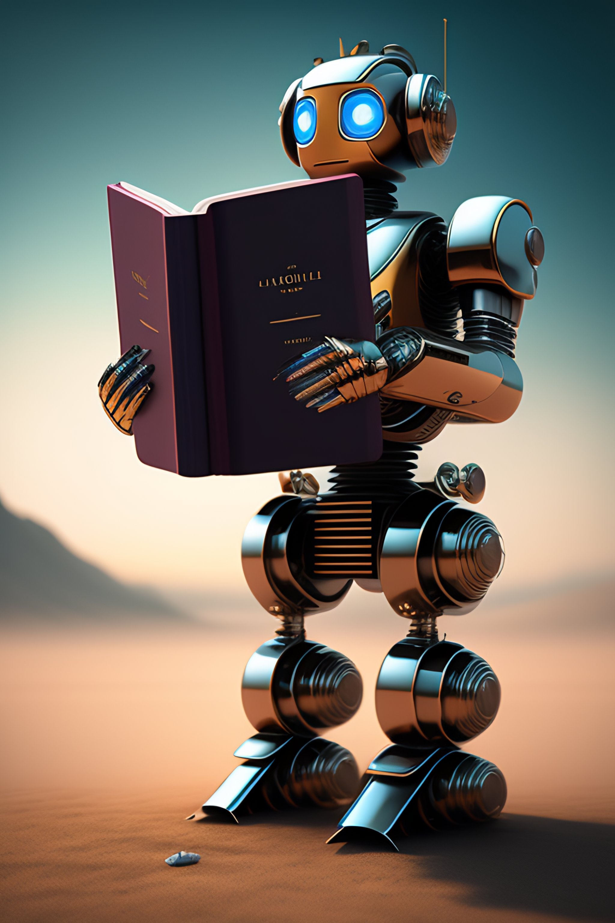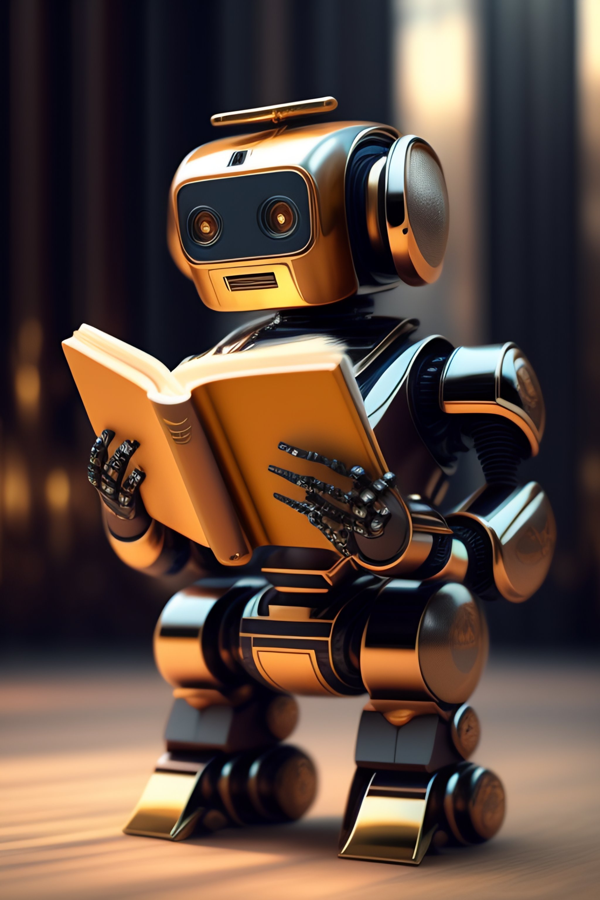 Robot reader holding a book