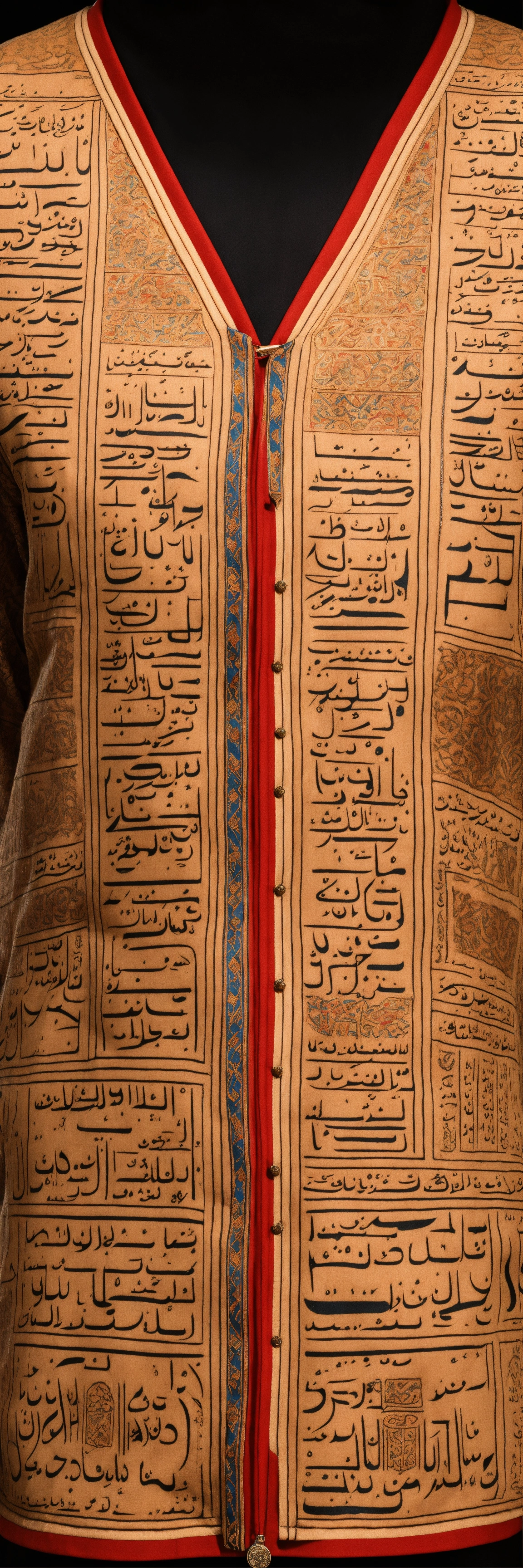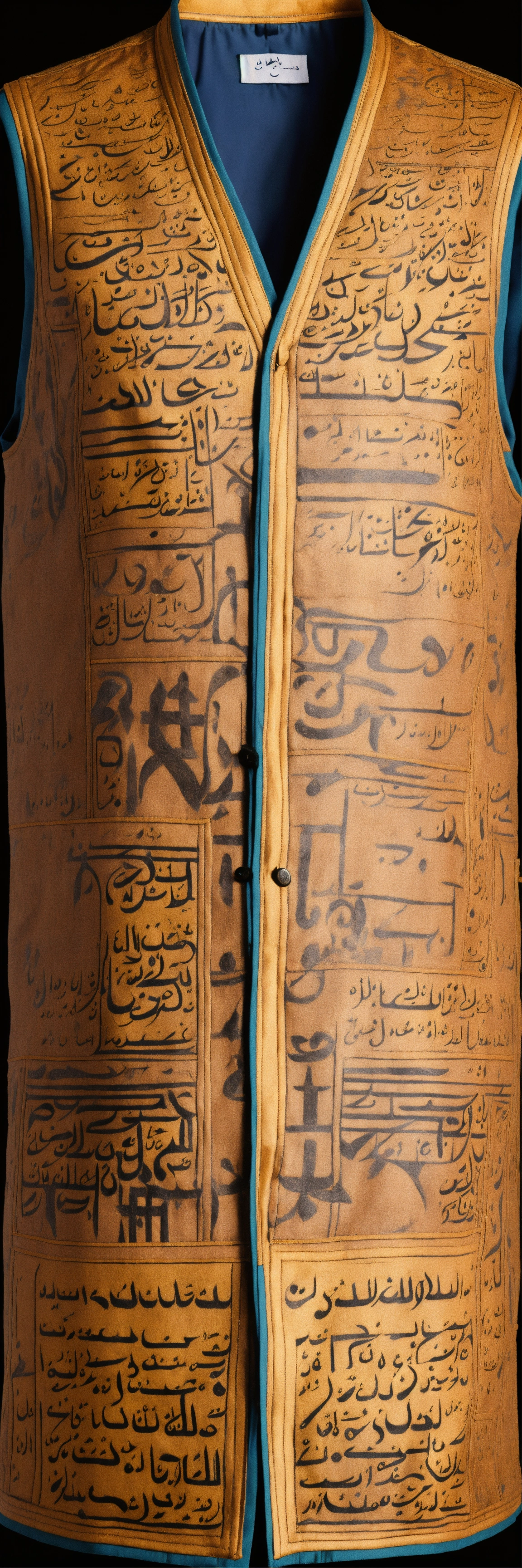 A special design for the tour guide a waistcoat with a pocket on it, with drawings of aramaic letters added in dadan and lihyan in the city of al-ula.