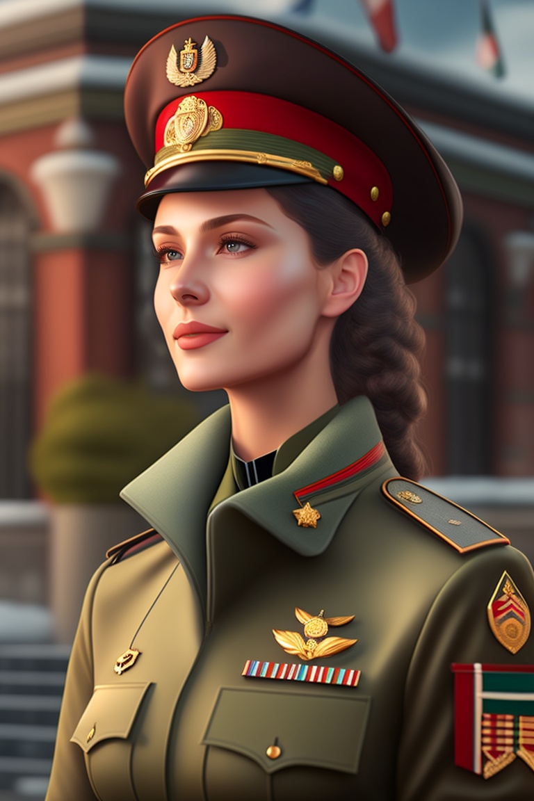 A woman wearing russian army uniform and have stethoscope around his neck standing in fromt of a afmc college, 8k resolution