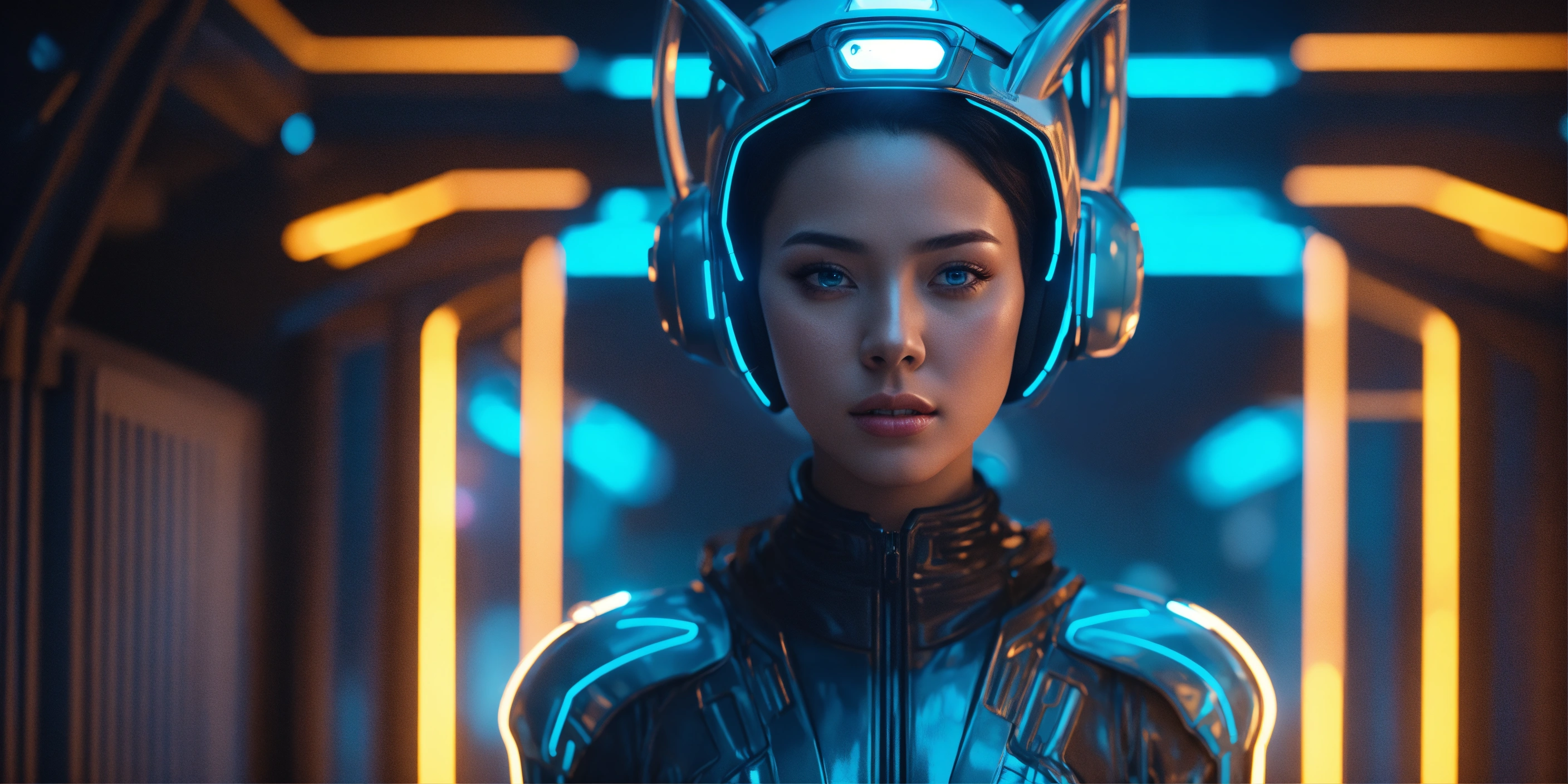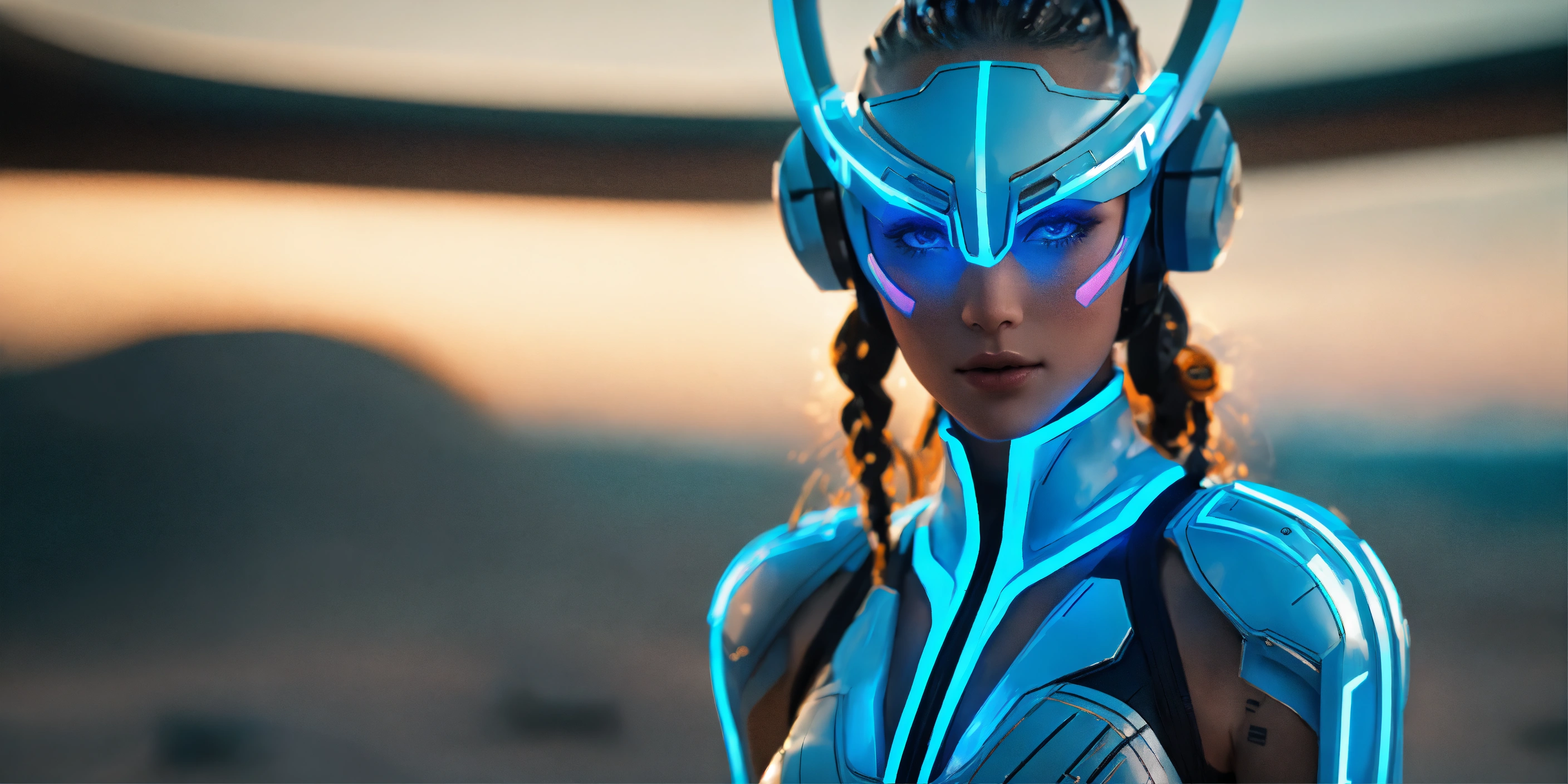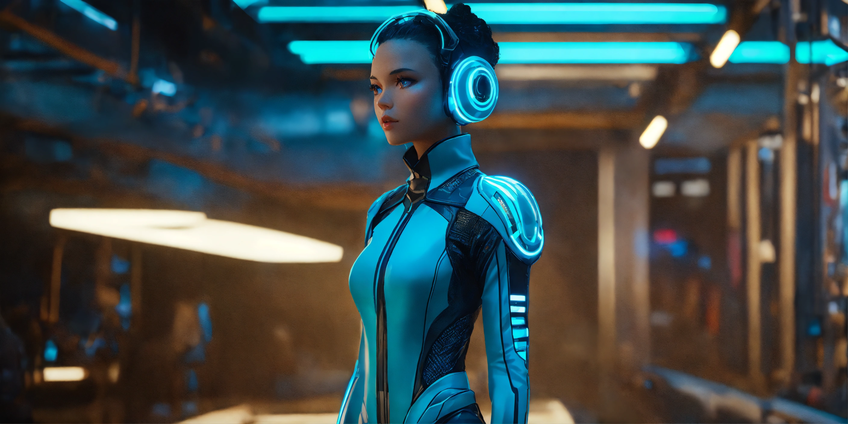 Full body of a beautiful light blue skin girl standing wearing detailed alien ear antennas with futuristic clothing, futuristic, tron, sci-fi, realistic, unreal engine, 8k