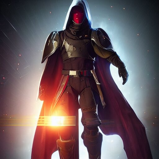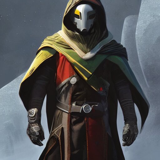 Destiny 2 concept armor for hunter male, hooded, cape, character portrait, realistic, cg art, artgerm, greg rutkowski