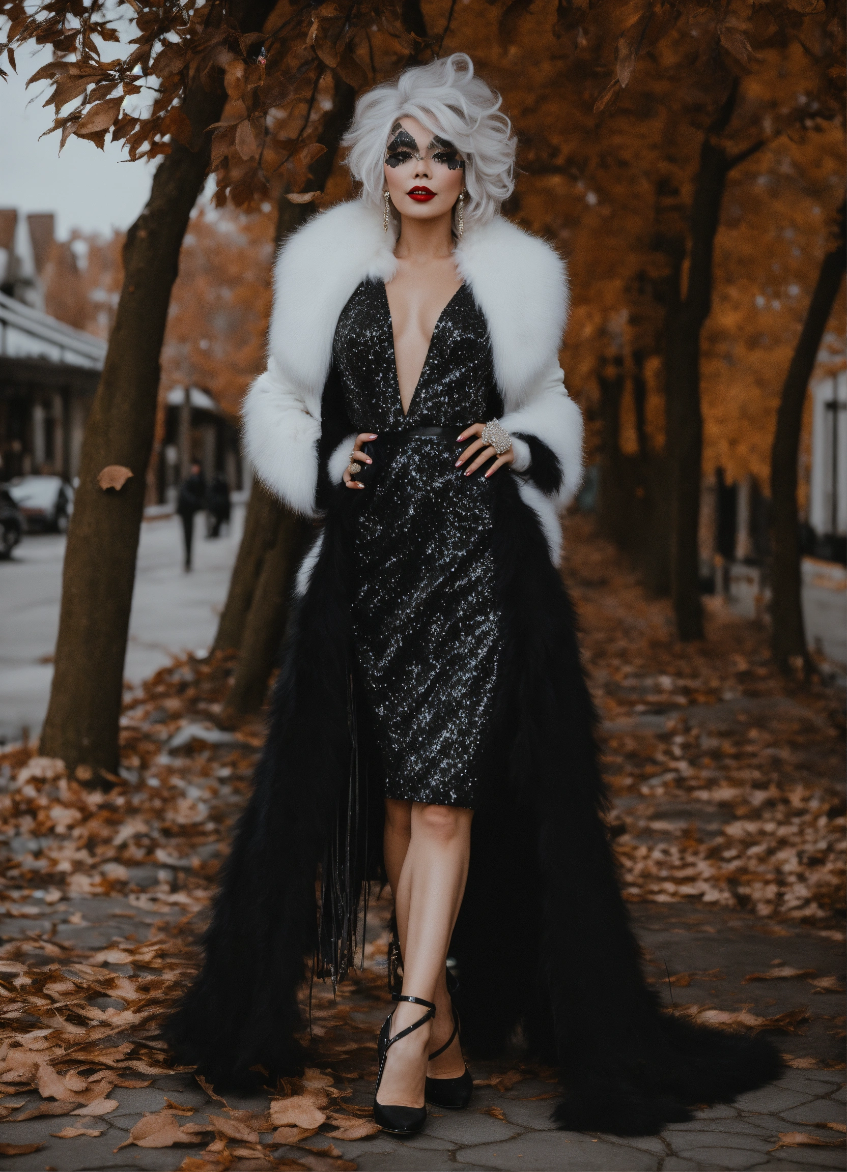 Dreamcatcher jiu glamorous sparkly cruella de vil inspired outfit with high heels