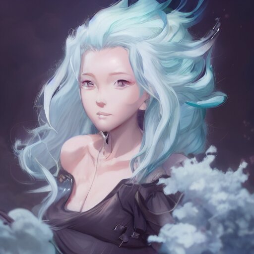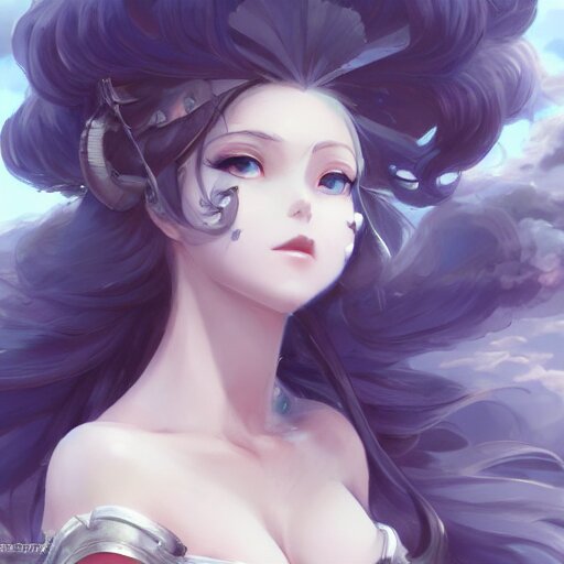 Character concept art of an anime stormy cloud goddess | | cute - fine - face, pretty face, realistic shaded perfect face, fine details by stanley artgerm lau, wlop, rossdraws, james jean, andrei riabovitchev, marc simonetti, and sakimichan, tranding on artstation