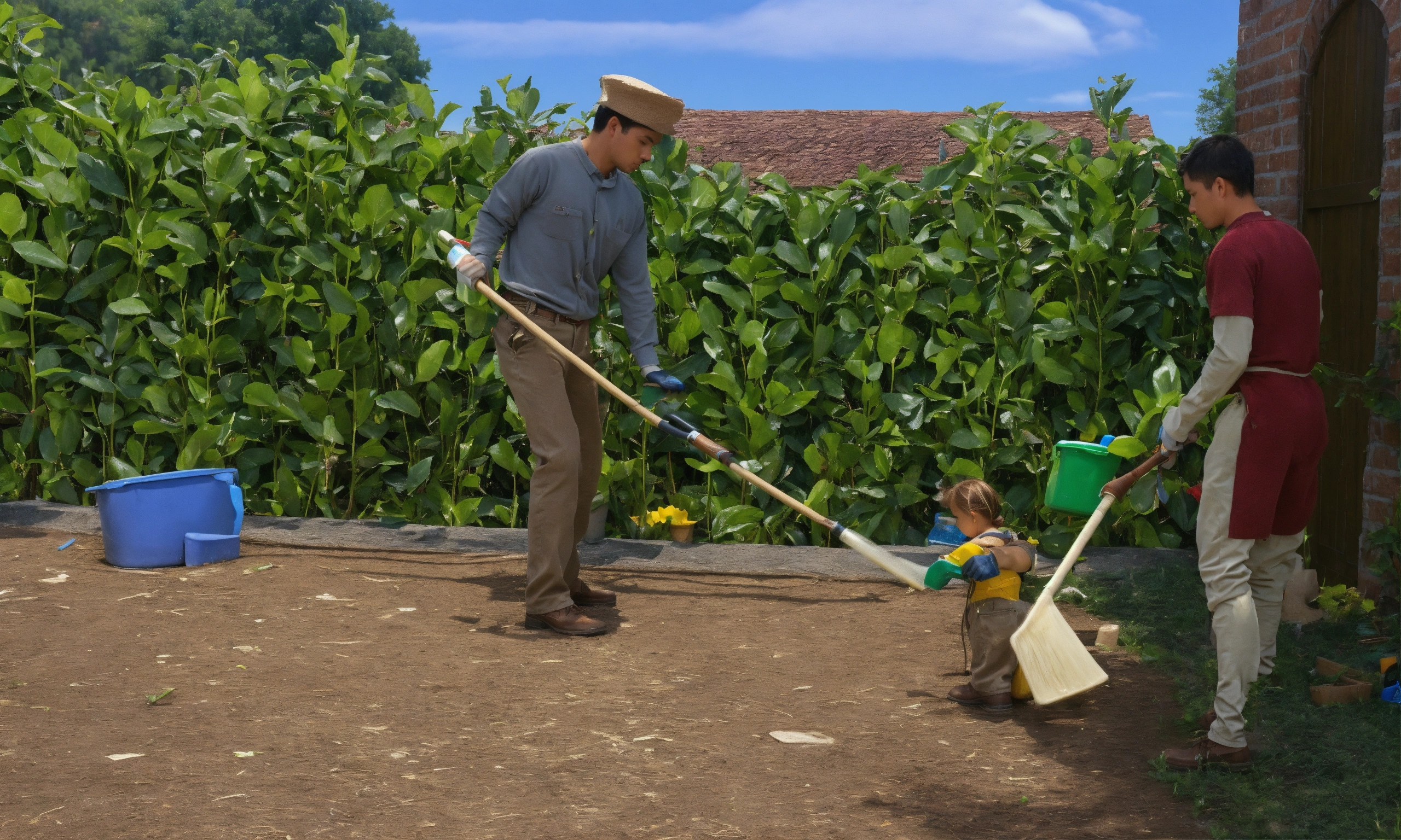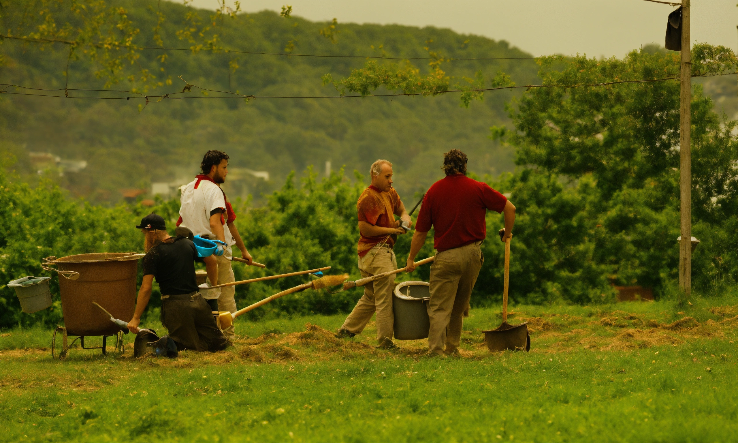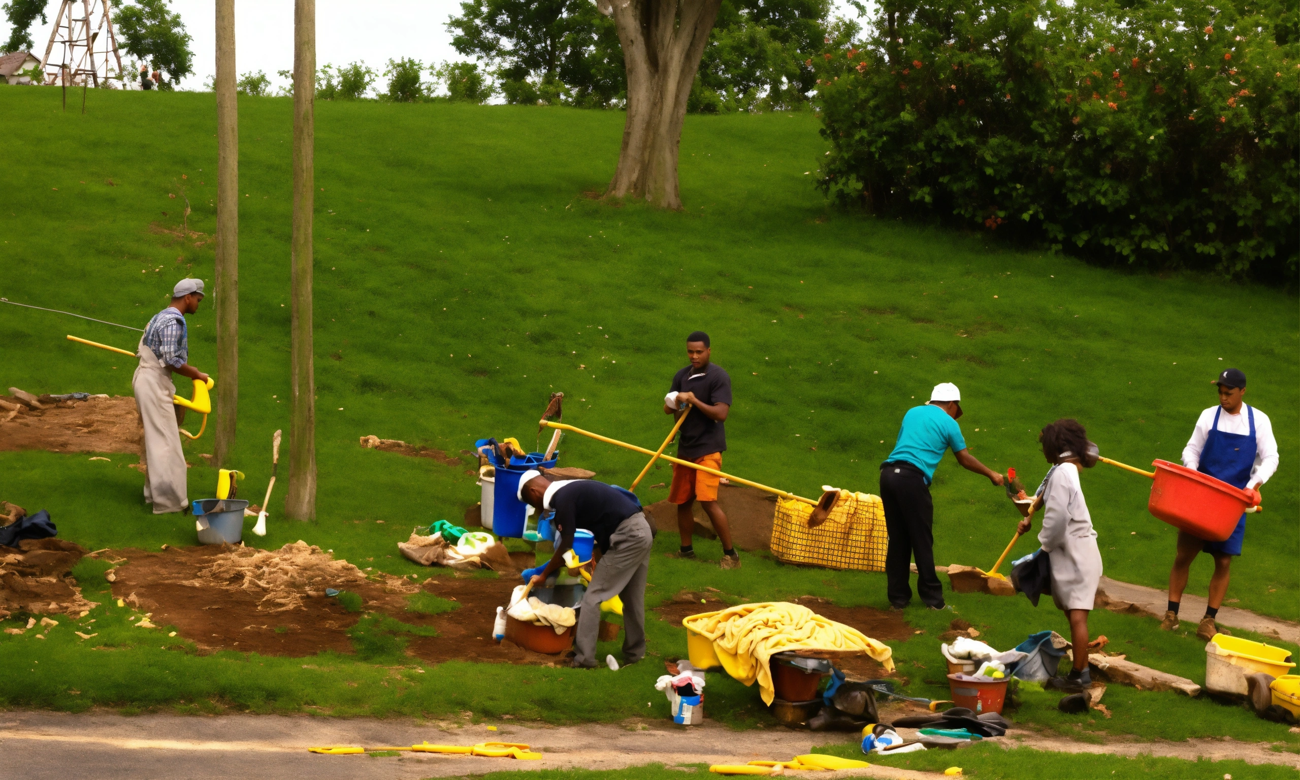 A lot of men doing women's chores