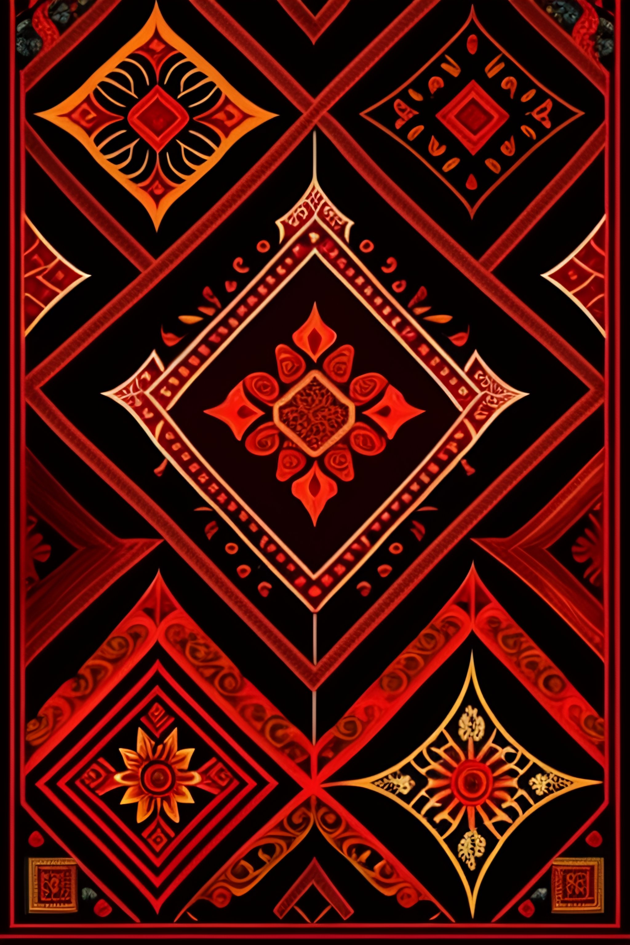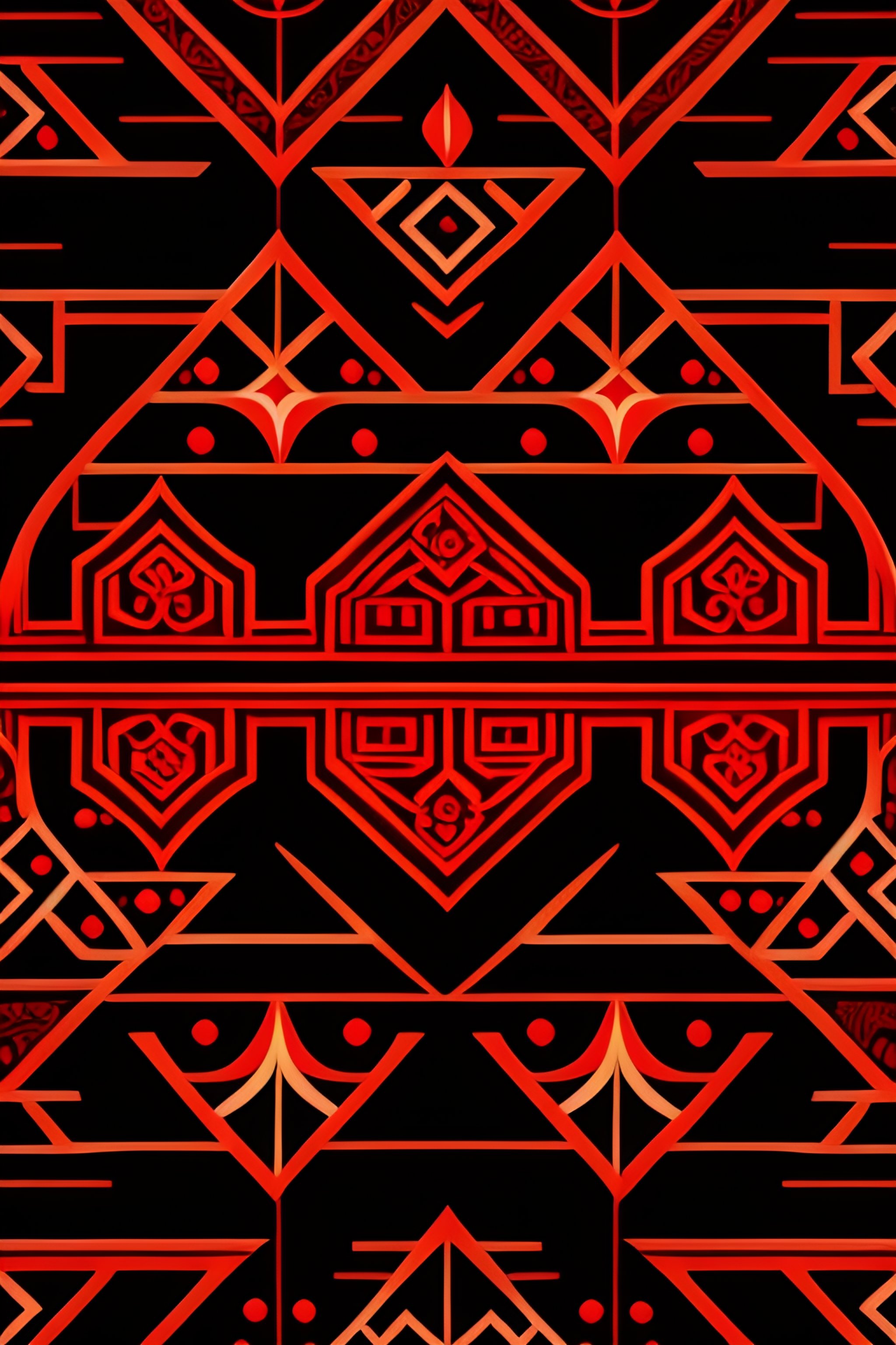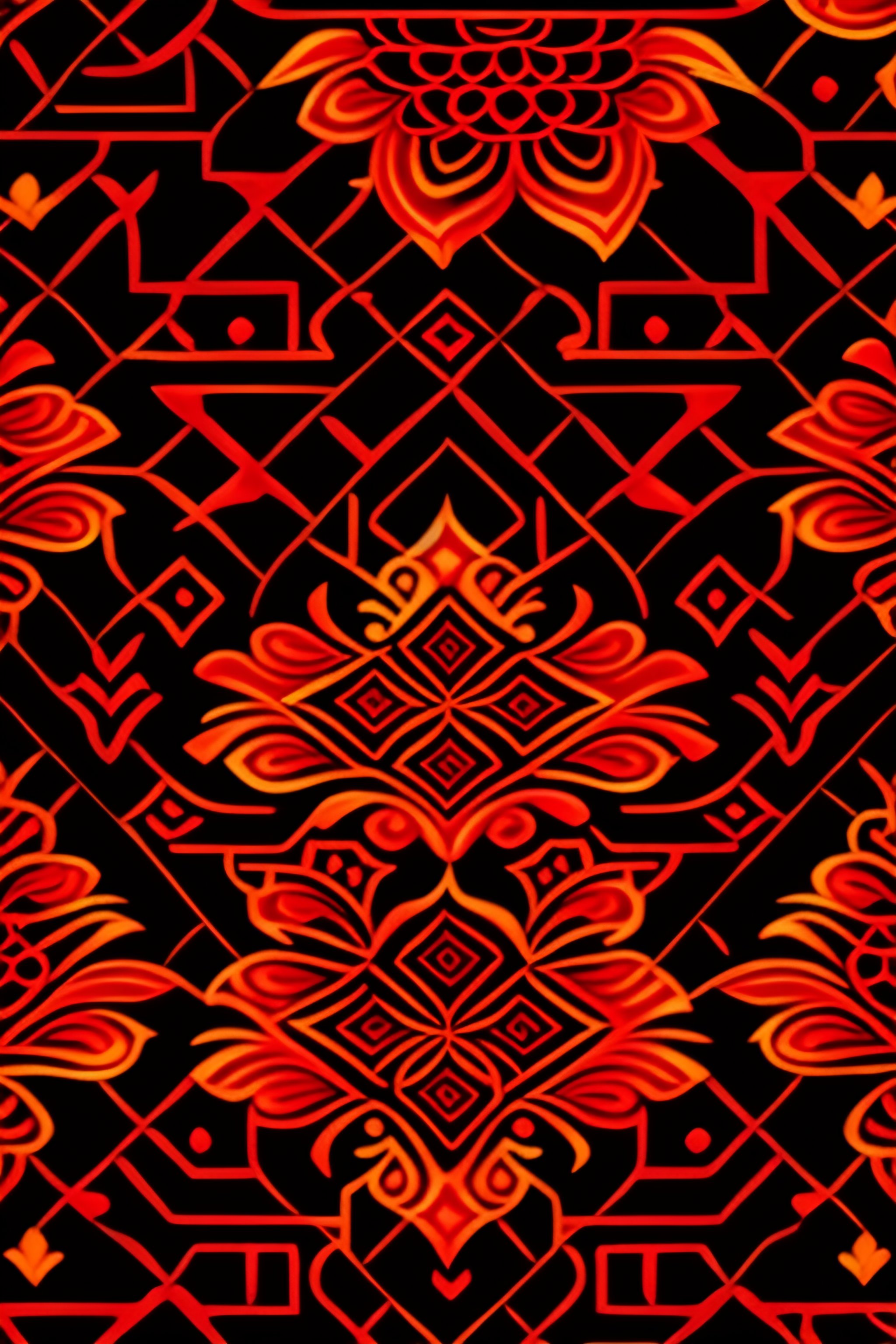 Abstract symmetrical pattern of indonesian batik, wayang kulit motif, batik pattern, red and black, highly detailed, 4k