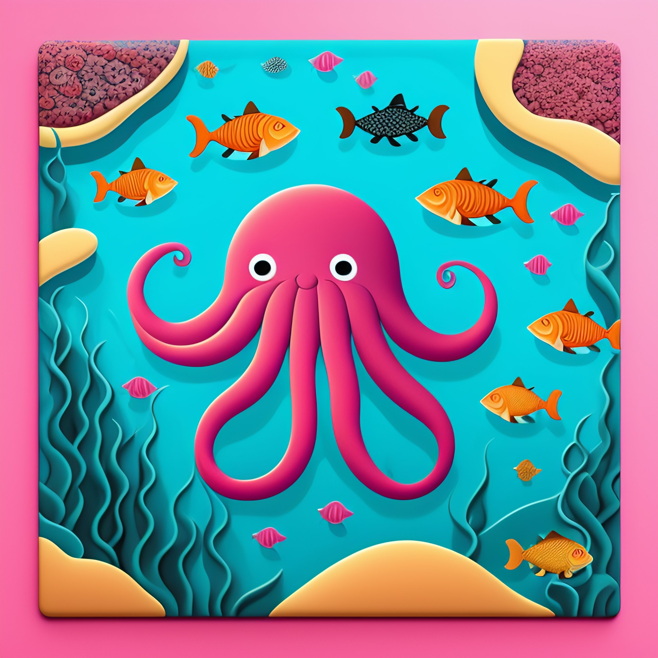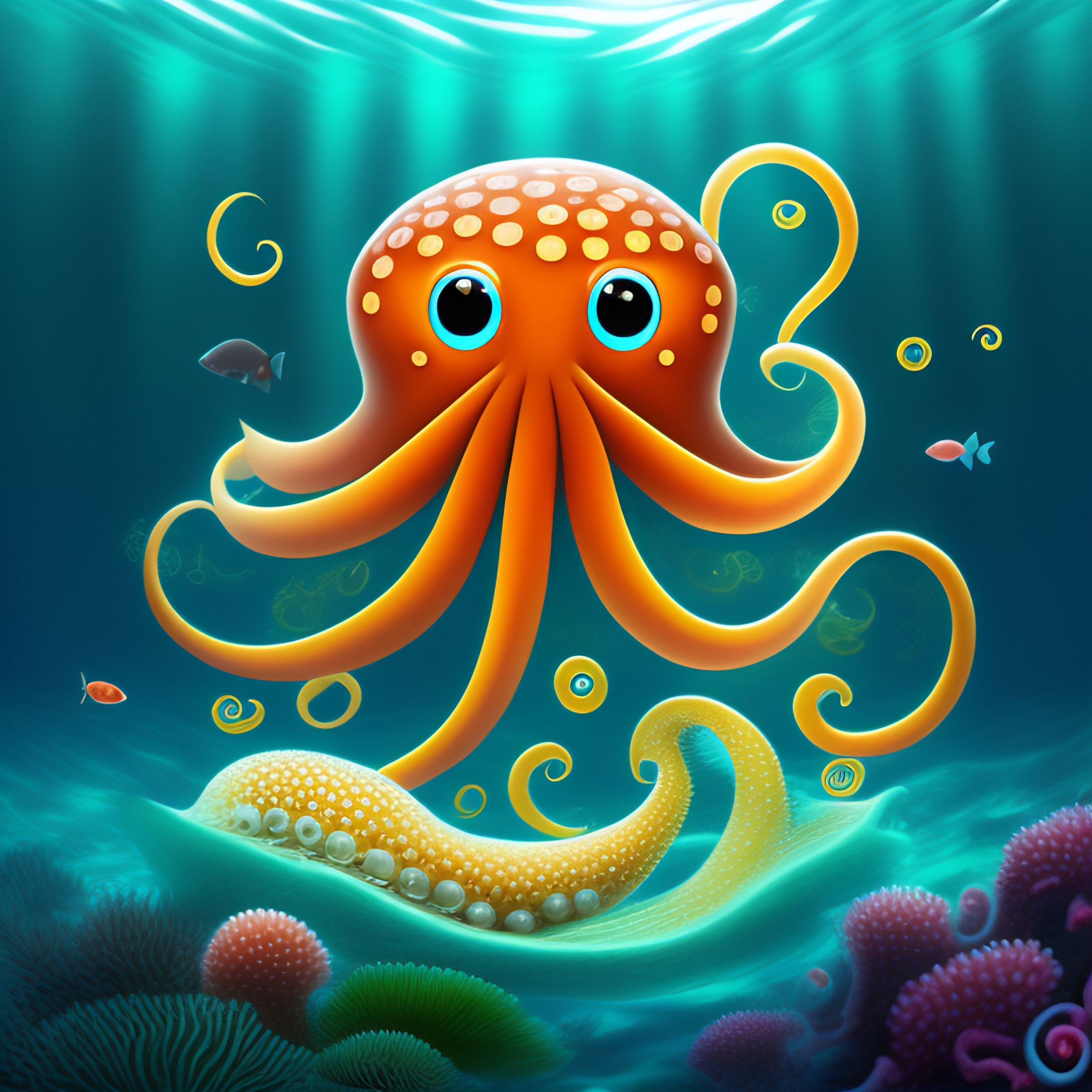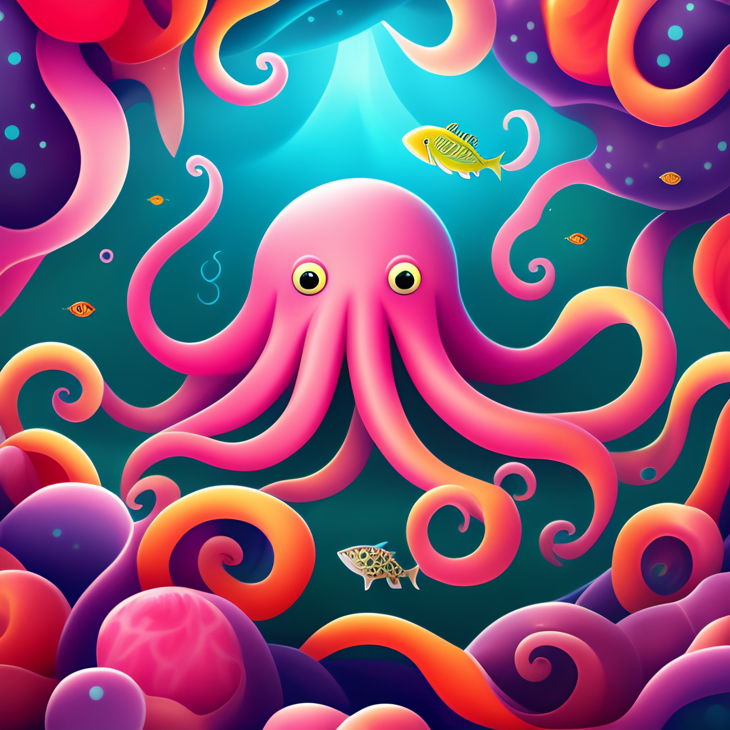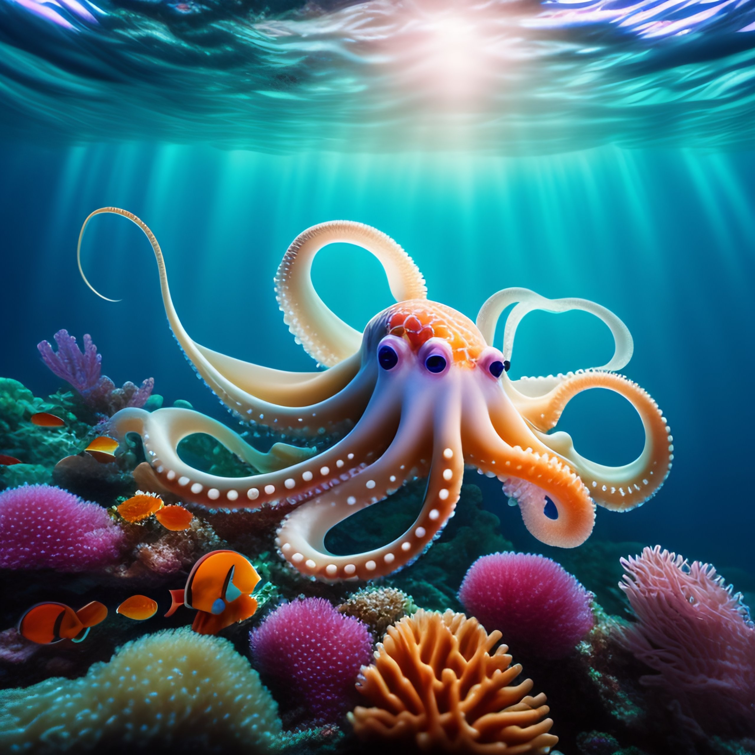 Octopus under the sea surrounded by fish
