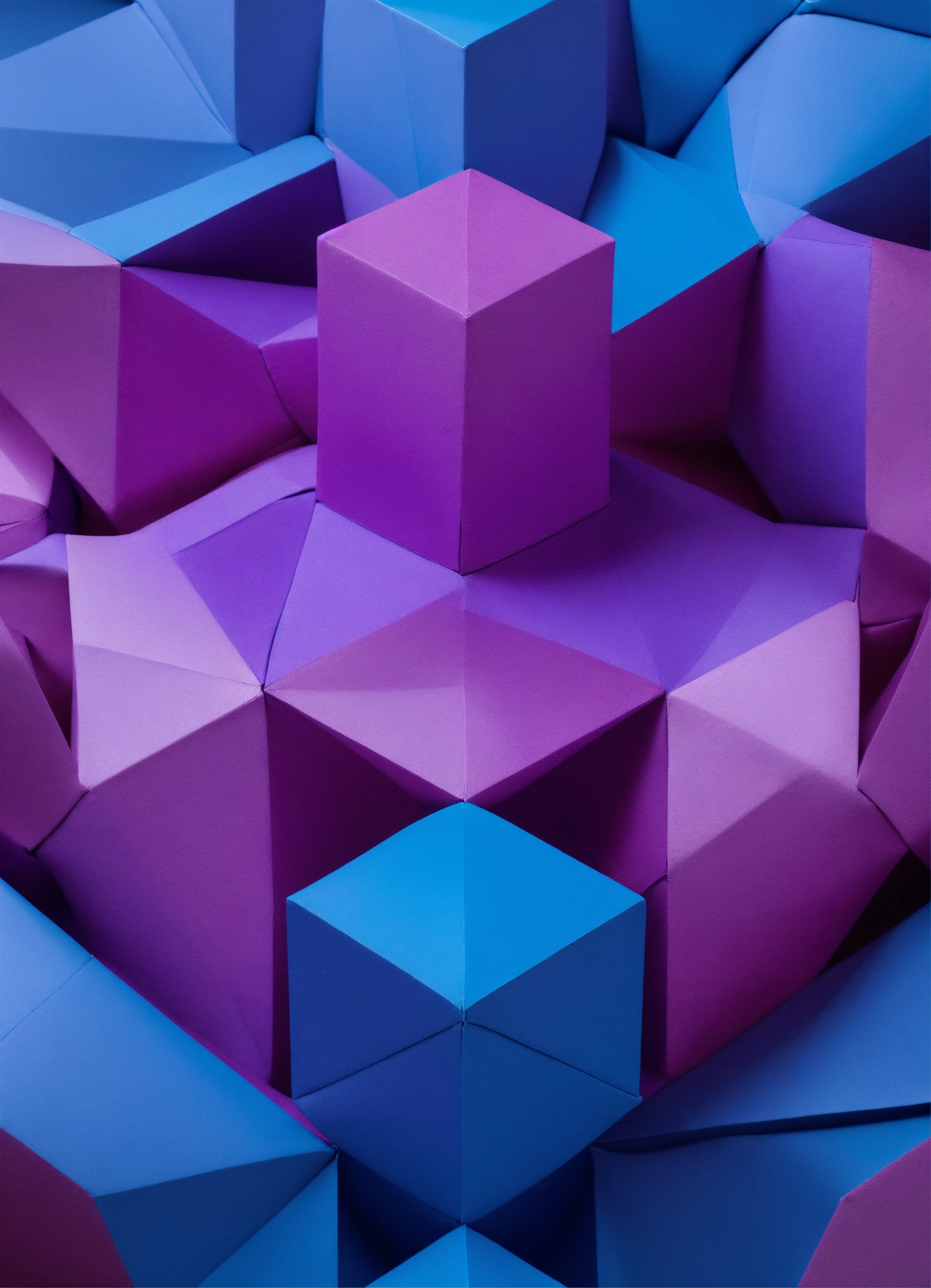 Purple and blue 3d abstract geometric pattern center figure origami 3d