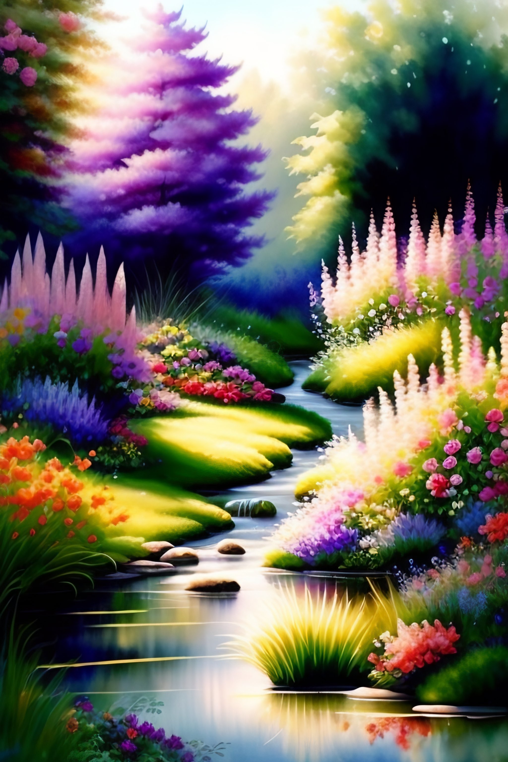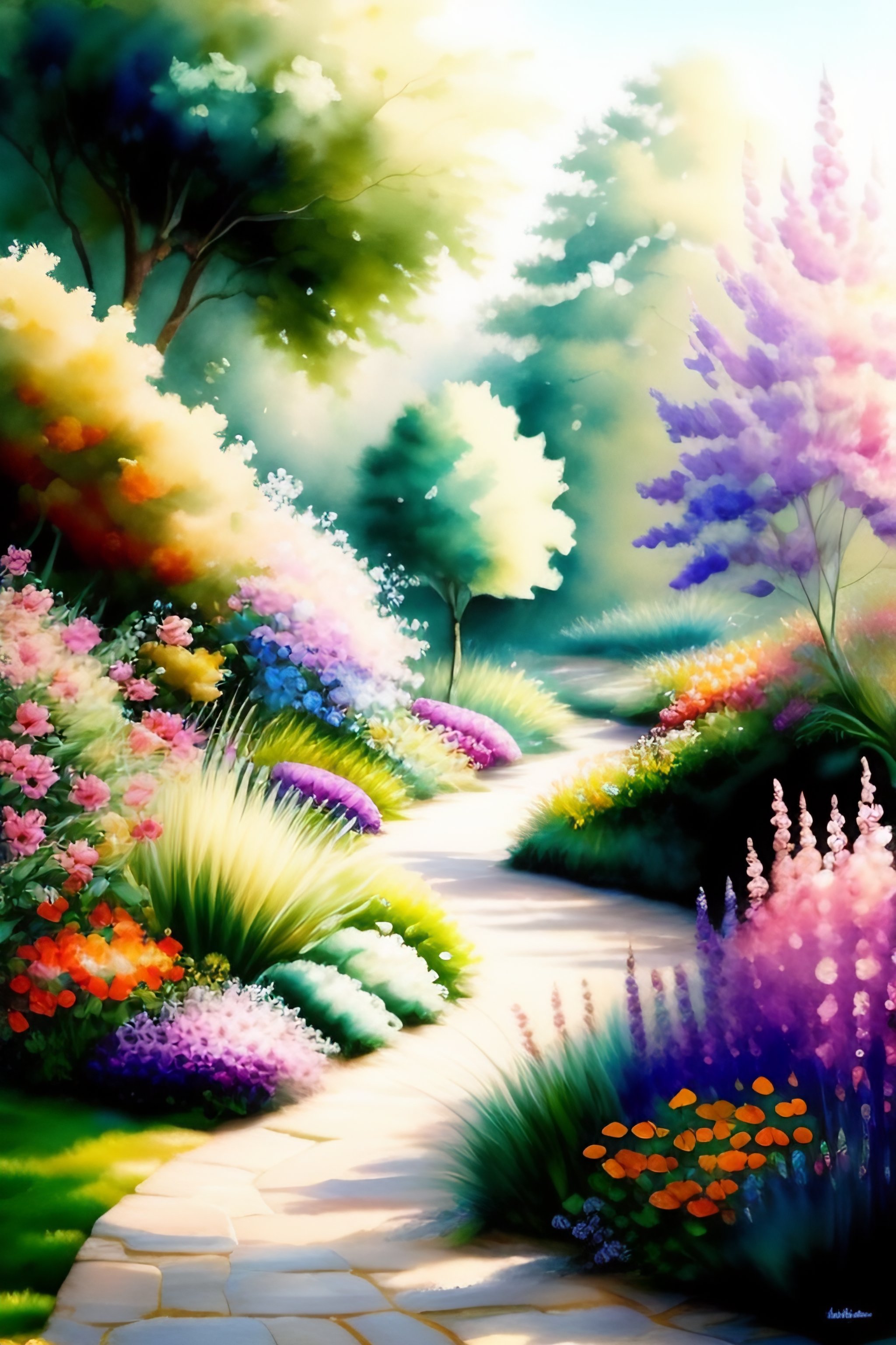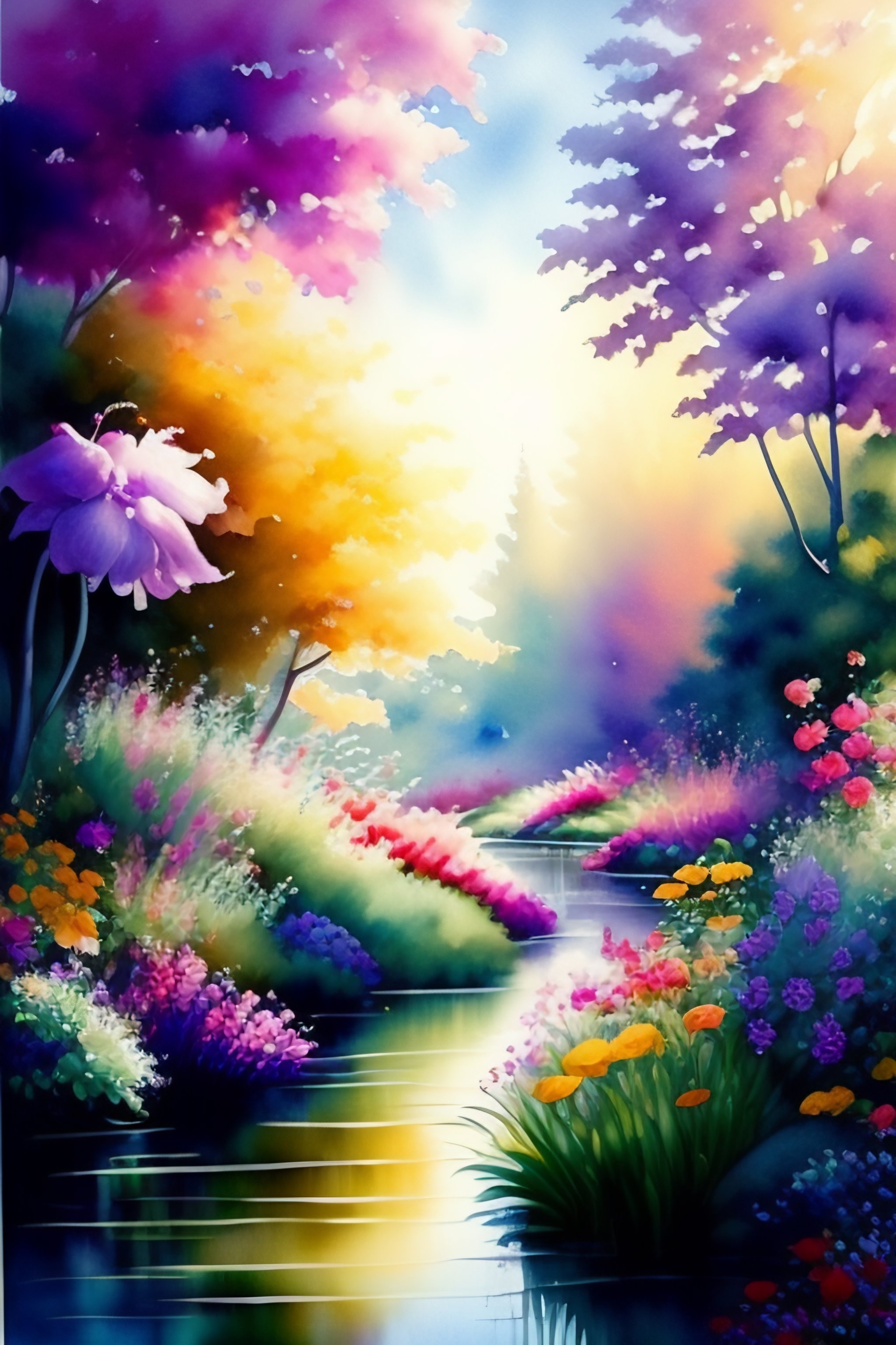 Paint a vibrant watercolor scene featuring a beautiful flower garden in bloom. choose your favorite flowers and let the colors of the petals and leaves dance on the page as you layer on the watercolor washes. imagine the soft breeze rustling the leaves and the warm sunlight shining down on the scene. use loose, fluid brushstrokes to capture the movement and energy of the garden, and let your creativity shine as you bring this flowery oasis to life on the wall as a work of art