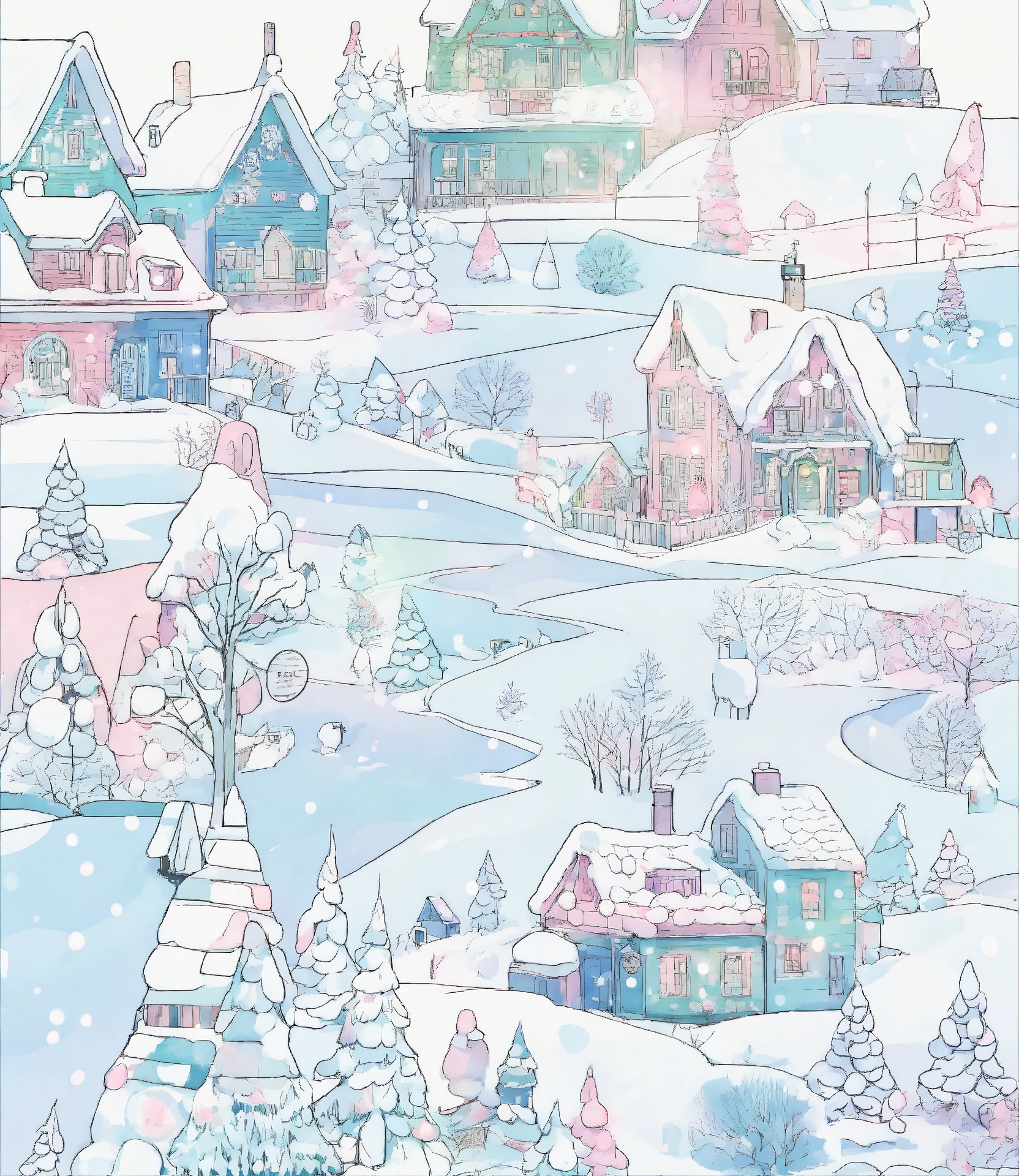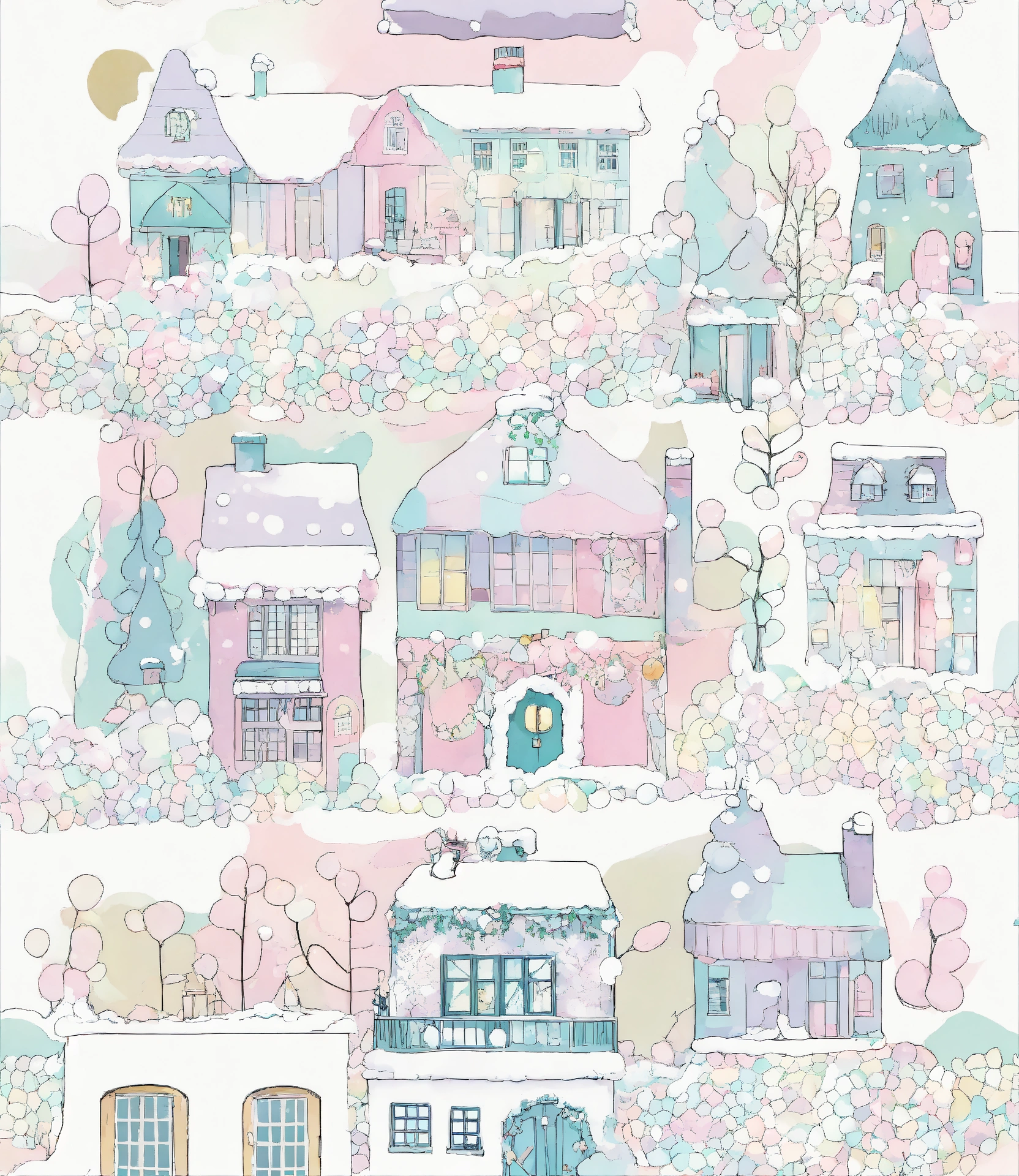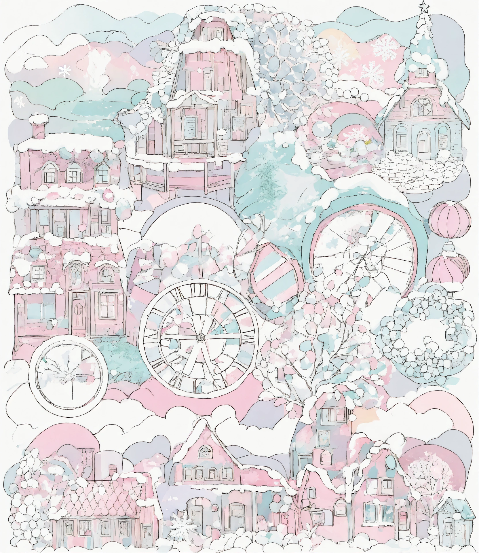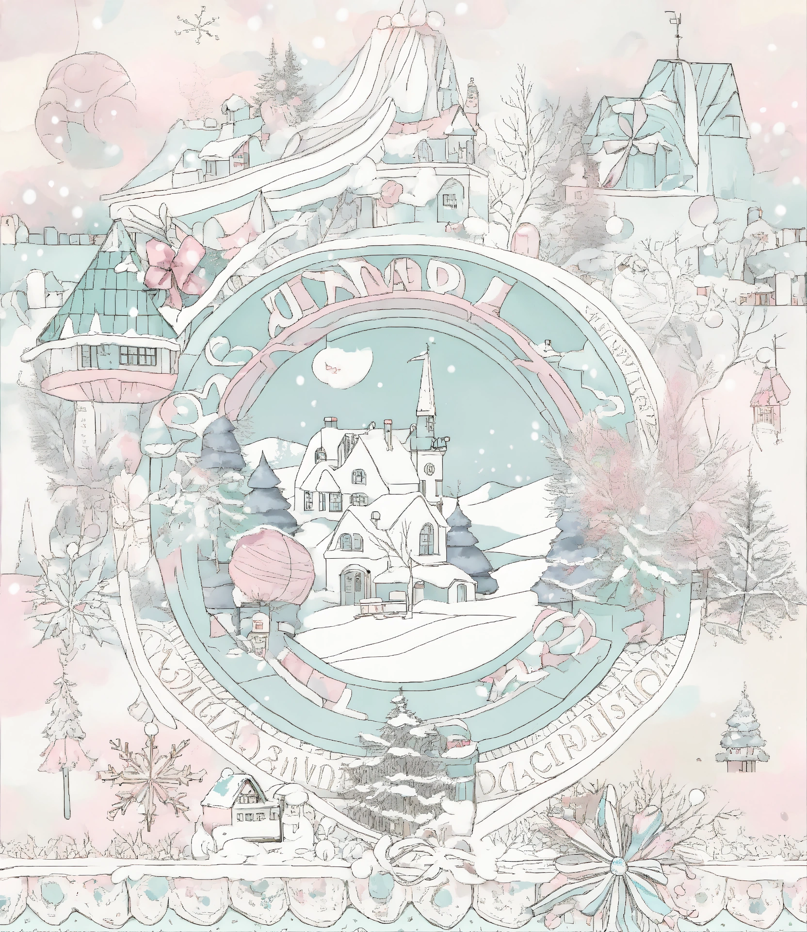 Shabby chic dreamy mist pastel colors junk colloage whimsical north pole at snowy christmas wintertime