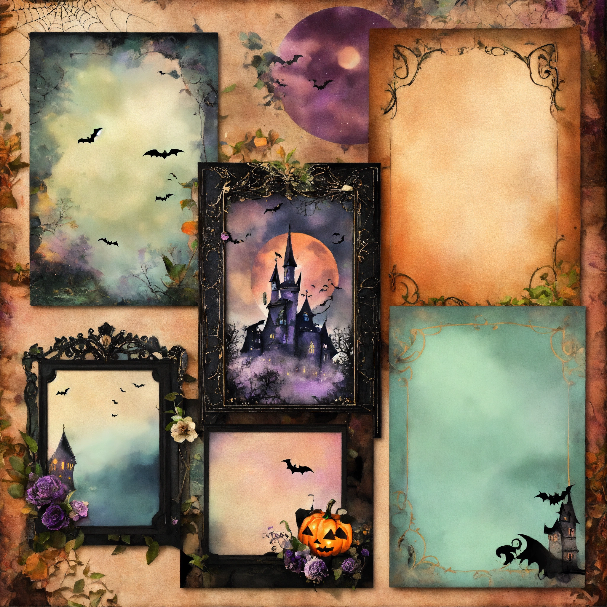 Shabby chic dreamy mist pastel junk journals magical halloween goth houses castles junk journal layout pages halloween junk journal kit printable halloween journal cards halloween junkjournal kit digital swirling magical fairytale abstract art style