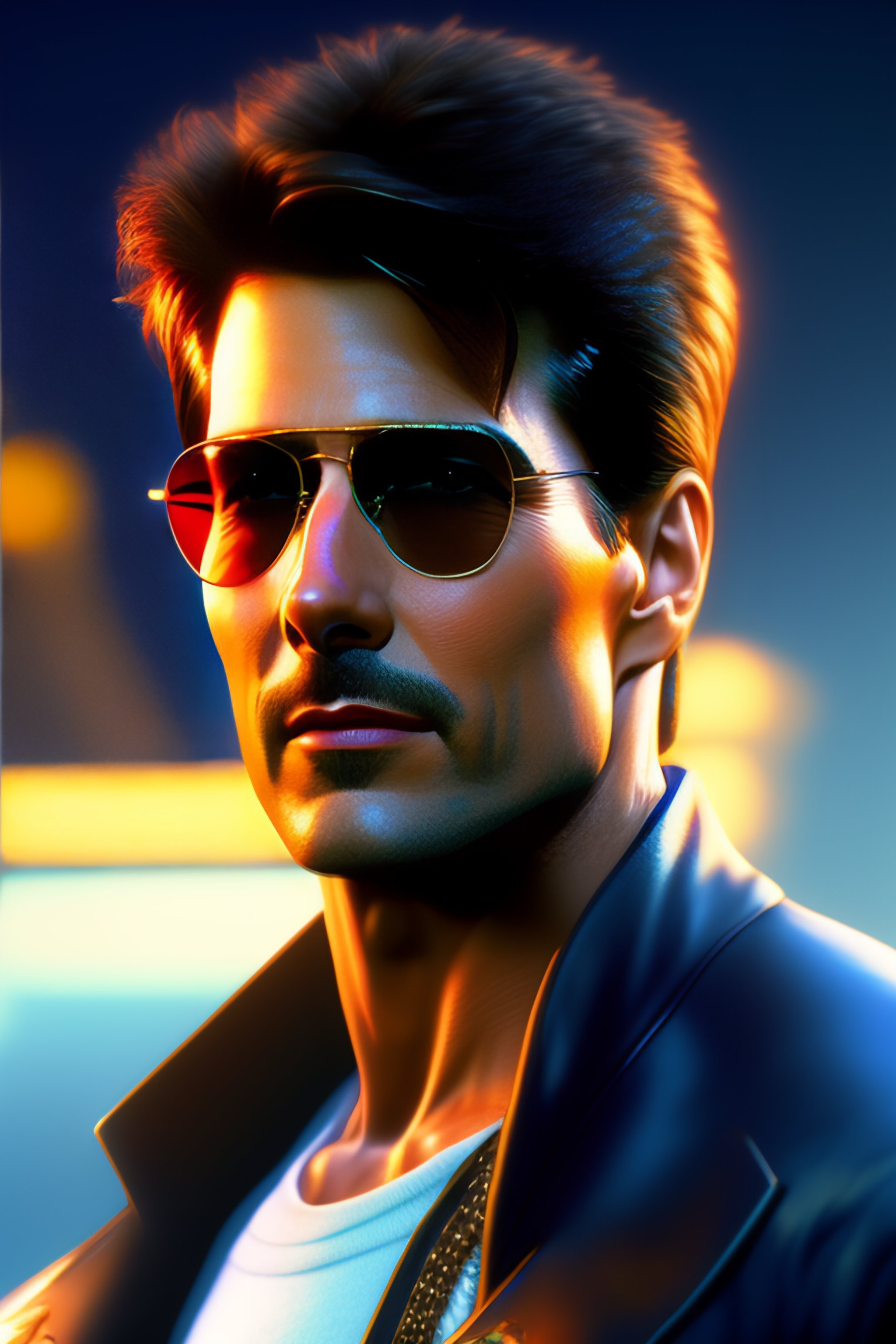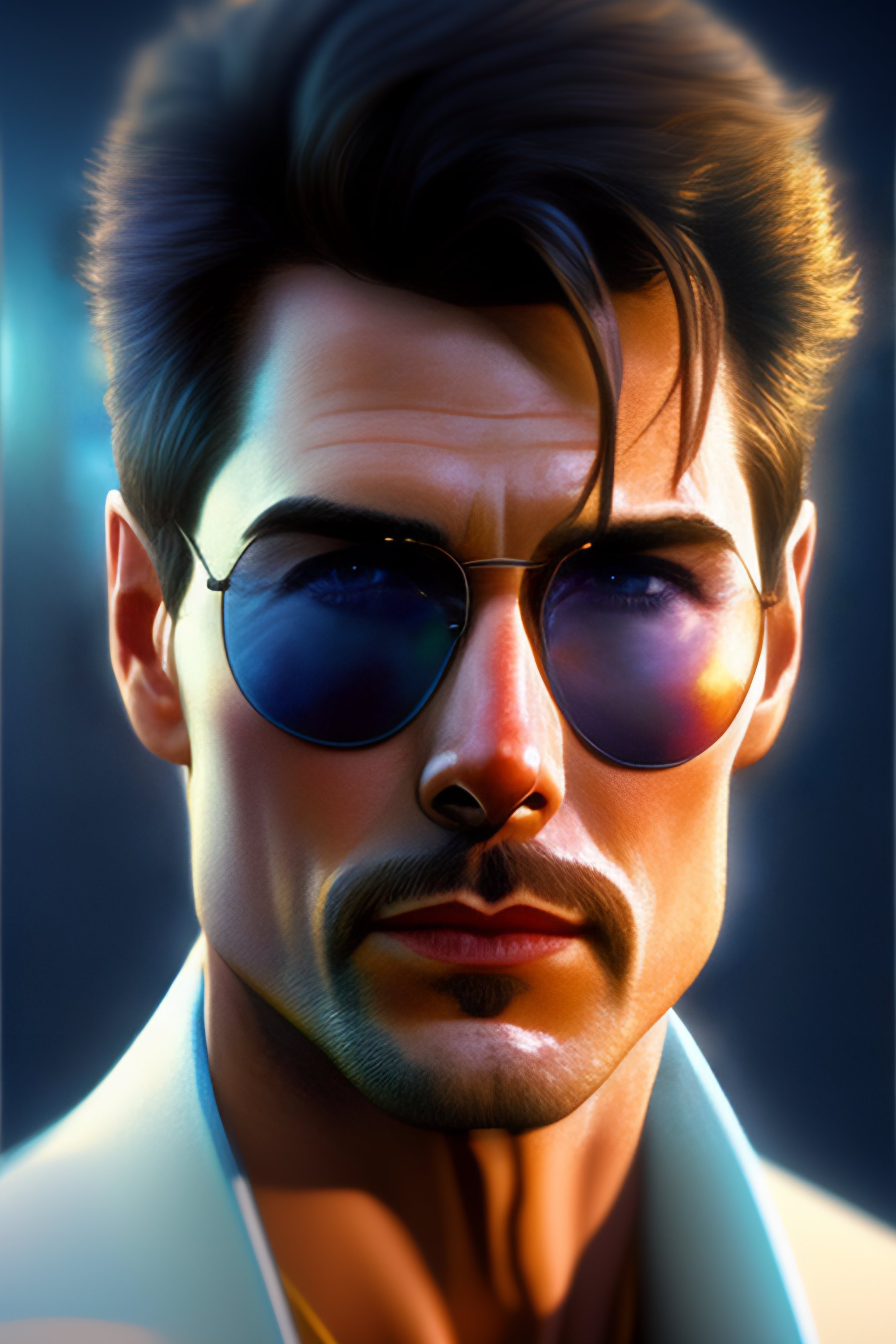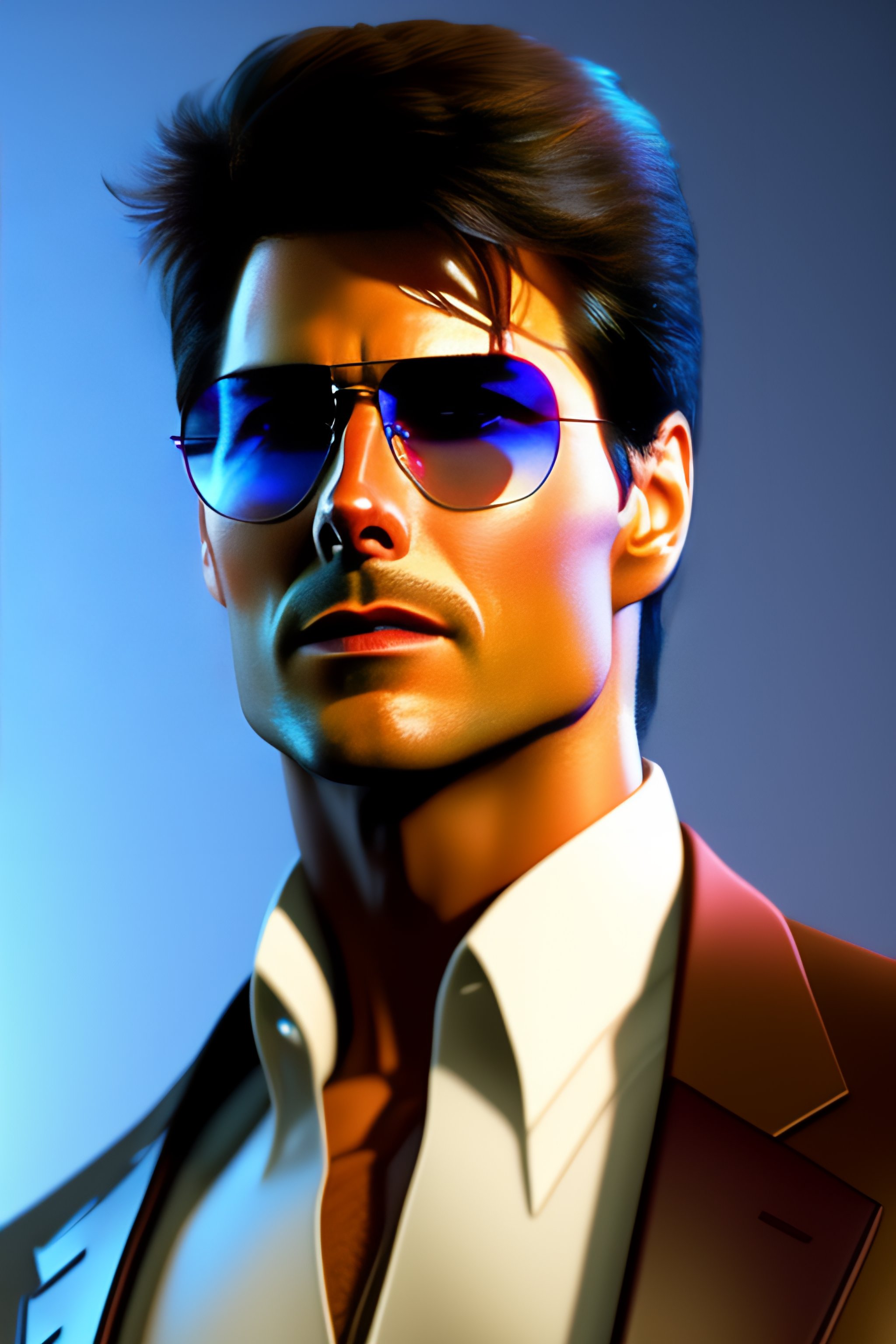 Tom cruise cosplaying as gendo ikari, wearing circle sunglasses, key lighting, soft blue lights, foggy, by steve hanks, by lisa yuskavage, by serov valentin, by tarkovsky, 8 k render, detailed, cute cartoon style, very cute adorable face