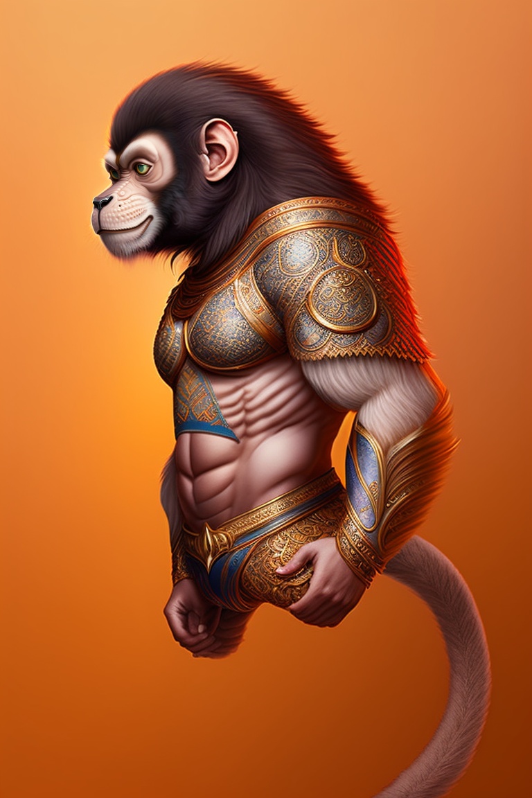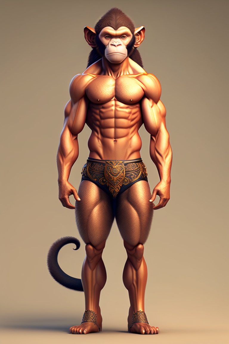 Half human hanlf monkey, with a tail, anthropomorph, beautiful, detailed symmetrical full body portrait, intricate complexity, in the style of dragon ball anime