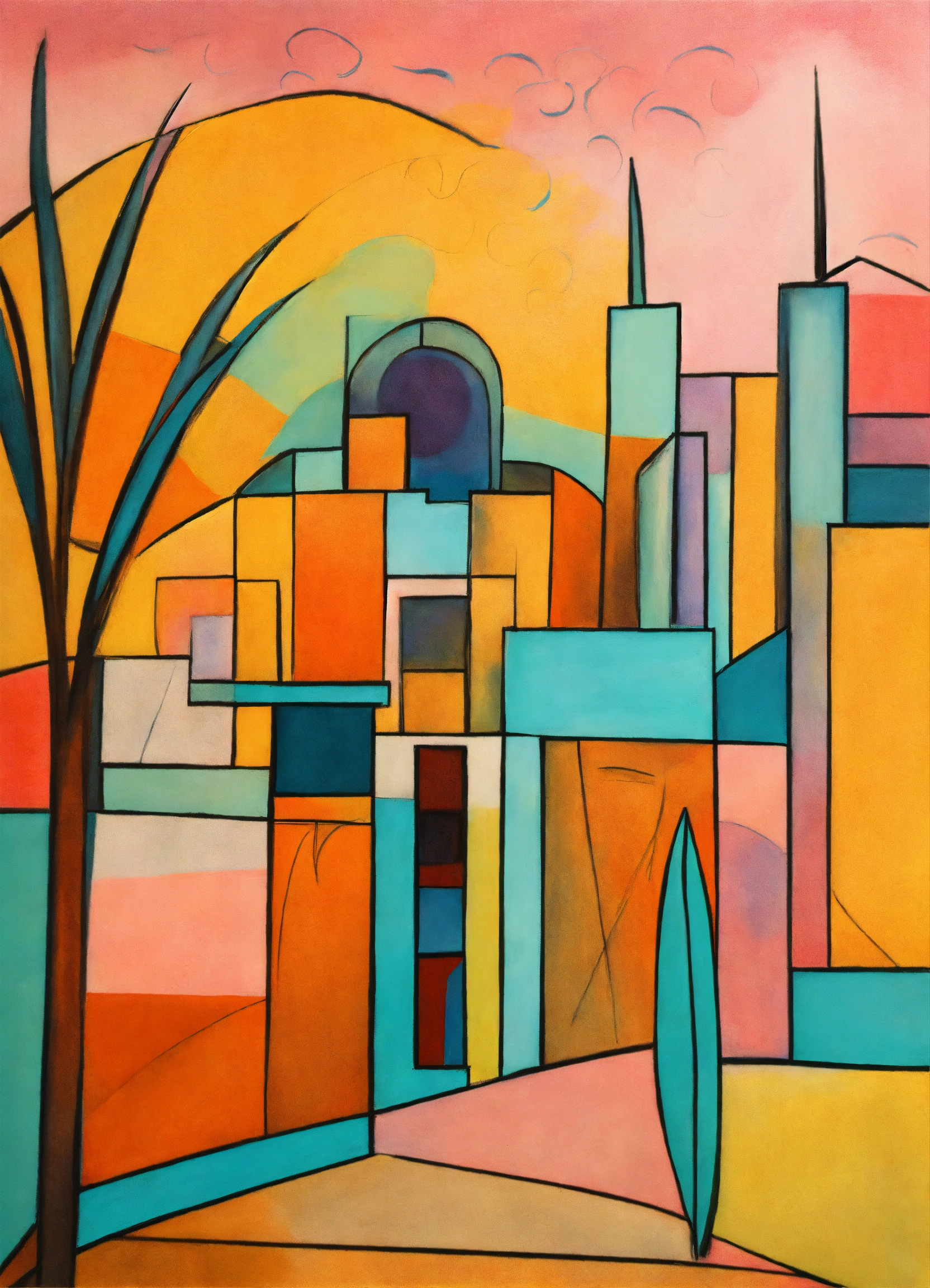 Art drawing abstract scene art style inspired by pablo picasso