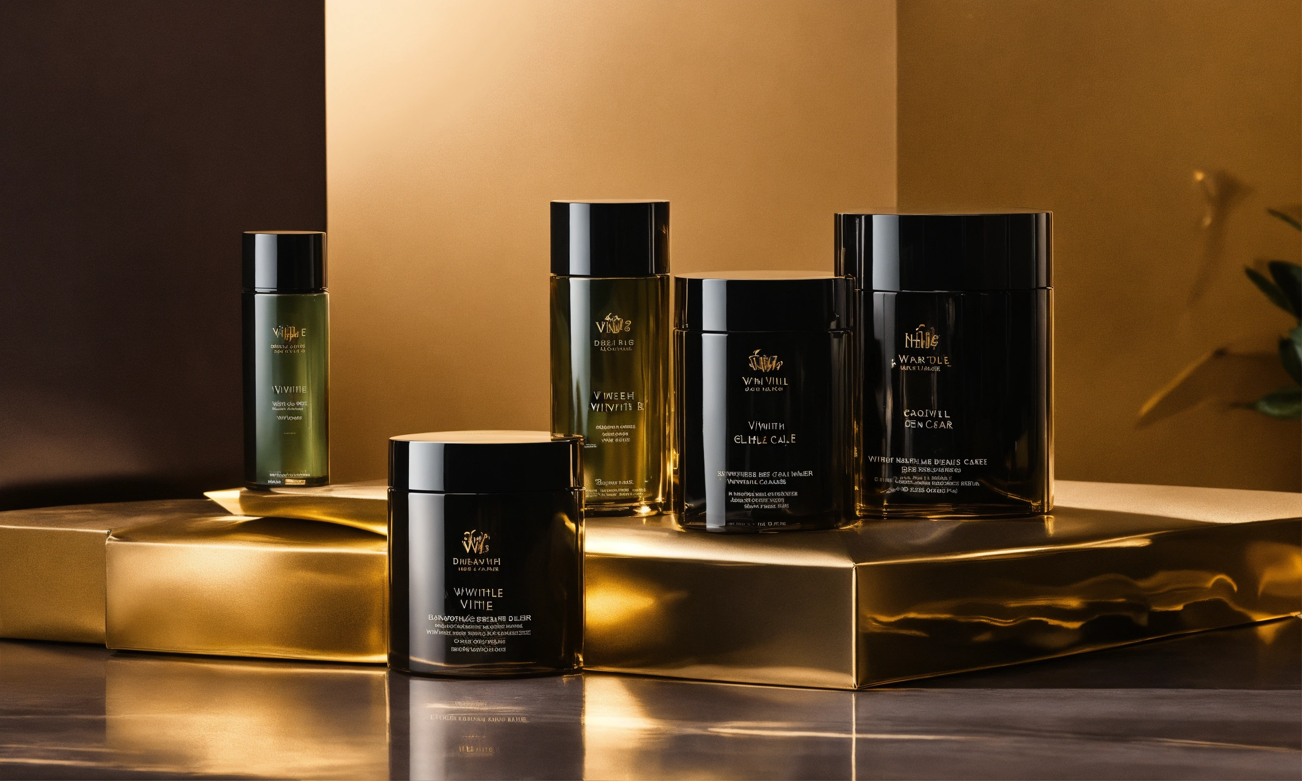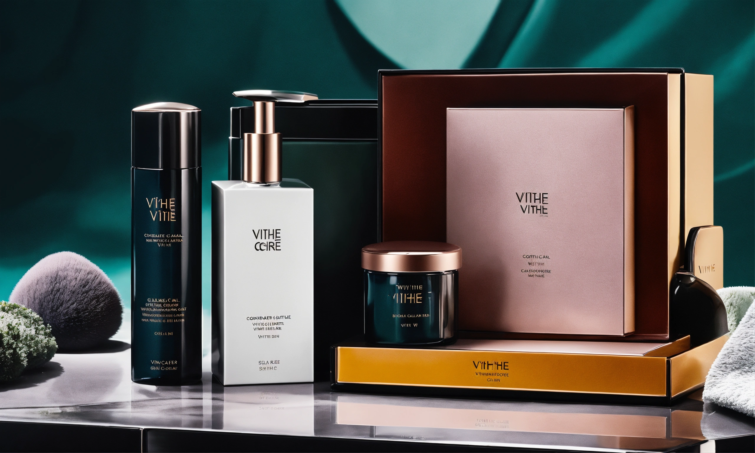 A three contemporary beautiful glossy withe cosmetic care for men with a vithe deluxe packaging box presented in a soft withe environment