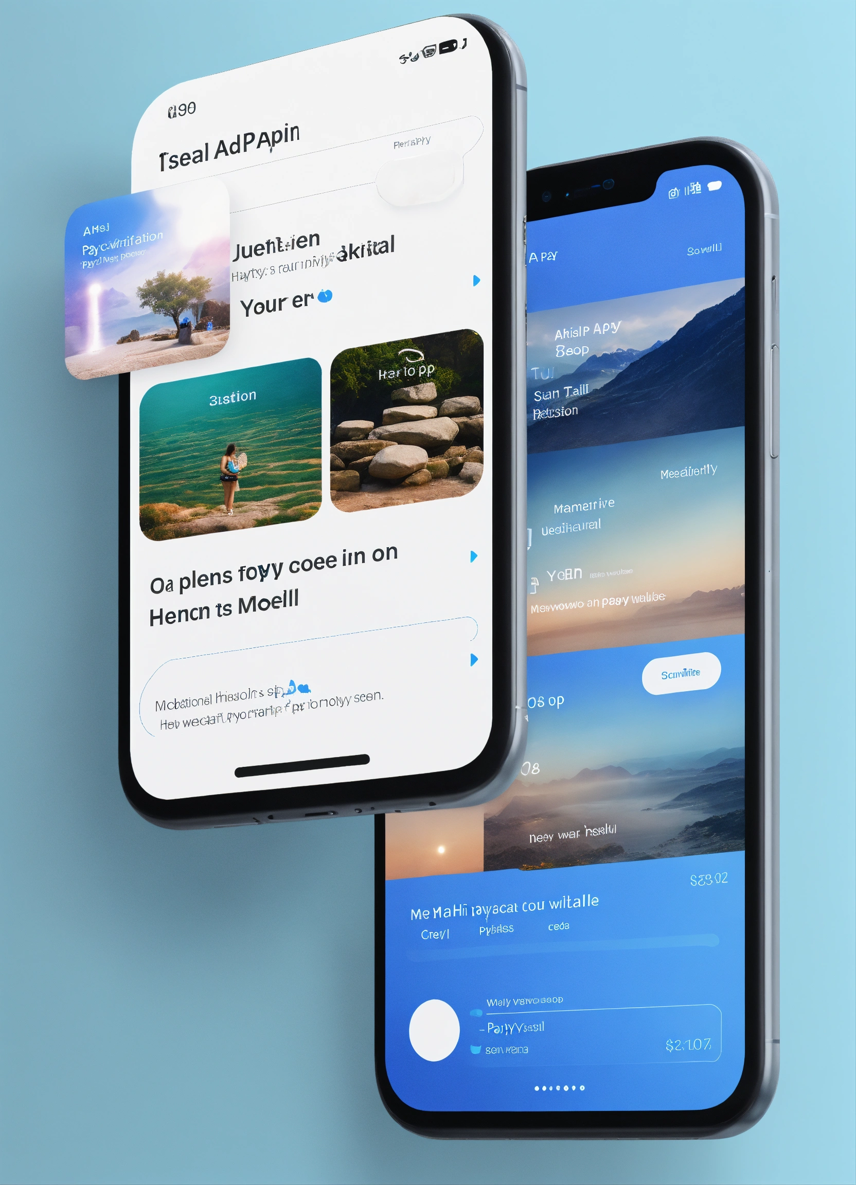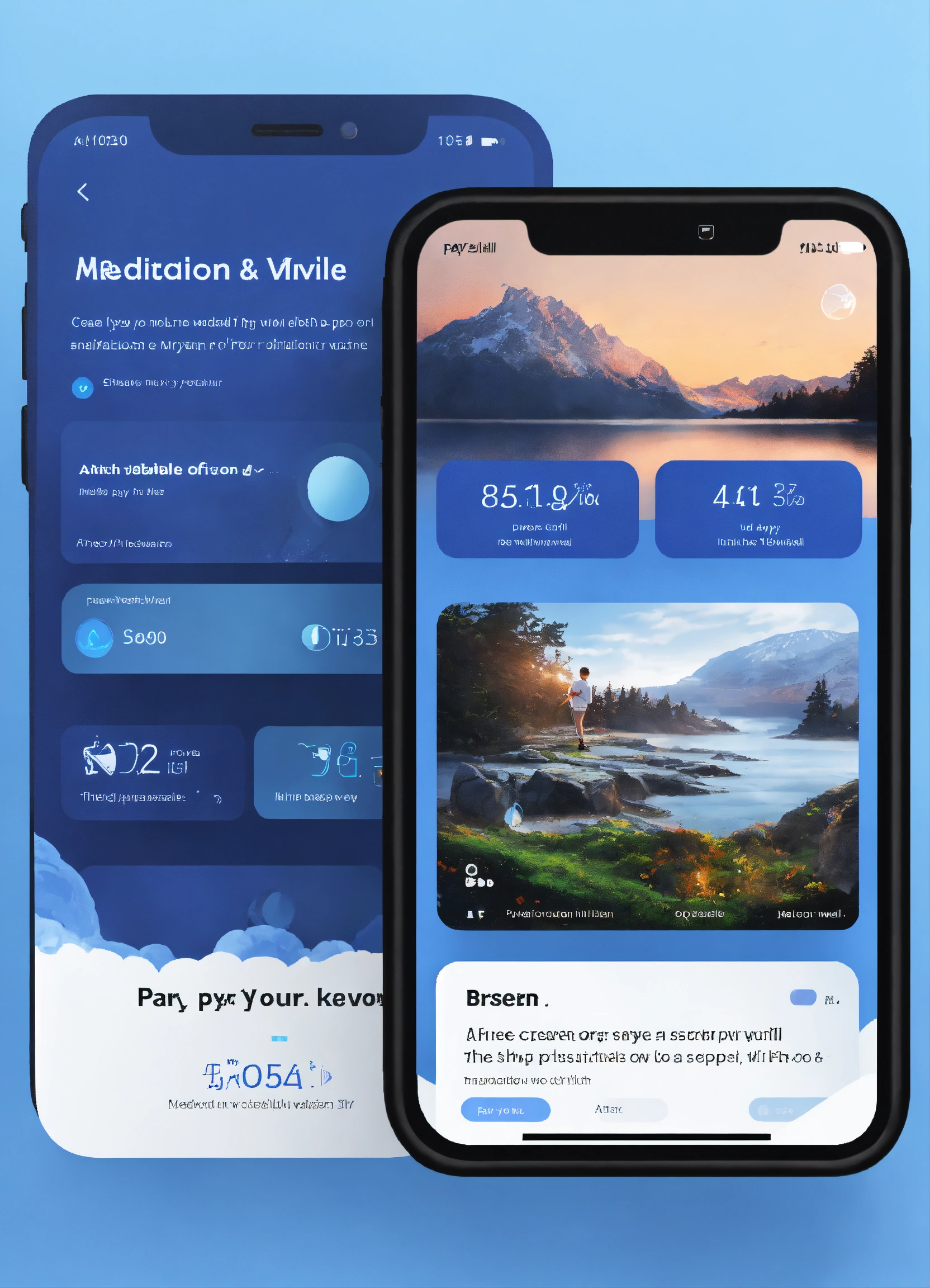 Create a paywall for my mobile app, meditation app, blue paywall, realistic, ios, mobile app ui design, futuristic, highly detailed, sharp, featured on dribbble