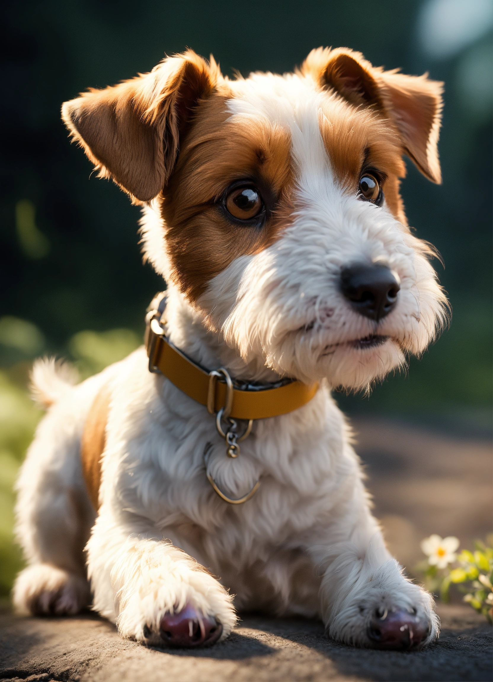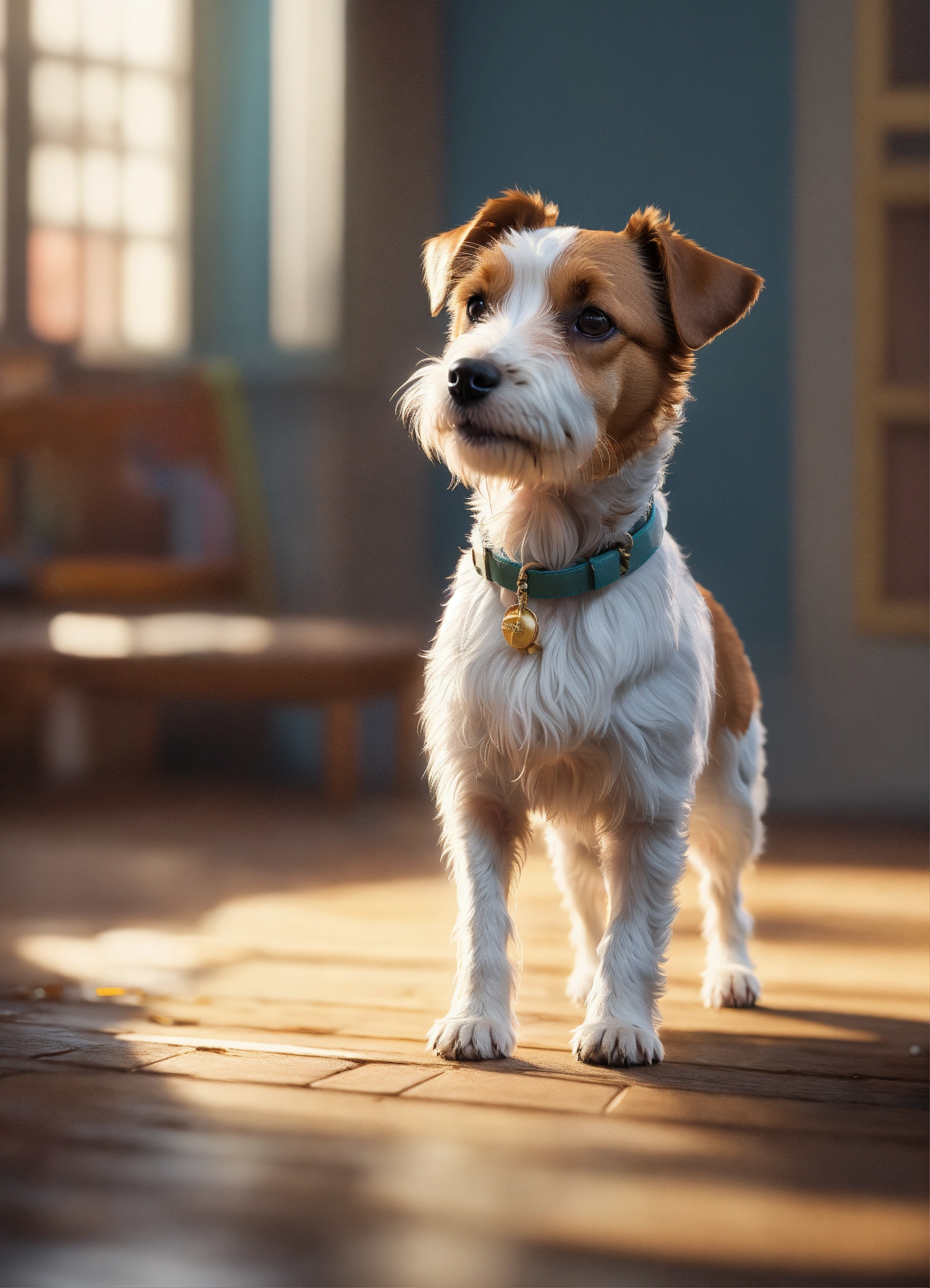 Craft a full body image of a small parson russell terrier dog, capturing its adorable features and the main character's presence. use a pixar-style illustration to make the scene heartwarming., ultra hd, realistic, vivid colors, highly detailed, uhd drawing, pen and ink, perfect composition, beautiful detailed intricate insanely detailed octane render trending on artstation, 8k artistic photography, photorealistic concept art, soft natural volumetric cinematic perfect light. white background.