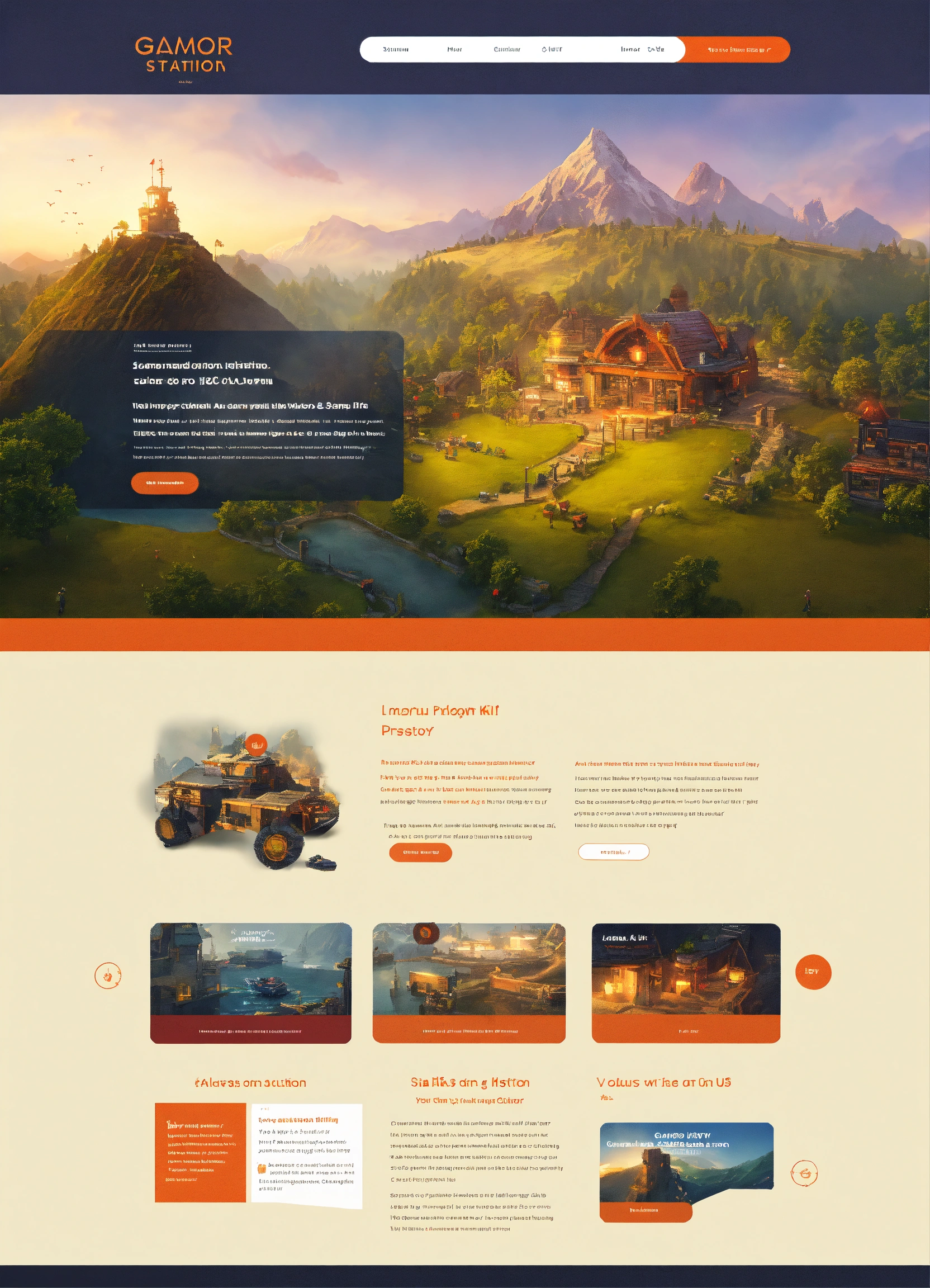 Design a landing page for 'gamor station, ' specializing in 3d assets, unity game kits, and tutorials. create a header with the logo, a captivating headline, and navigation links. include an attention-grabbing hero banner, key features with icons, testimonials, featured products, 'about us' section, clear ctas, contact info, newsletter signup, and a footer with links. ensure mobile responsiveness, align with brand identity, and maintain a user-friendly design