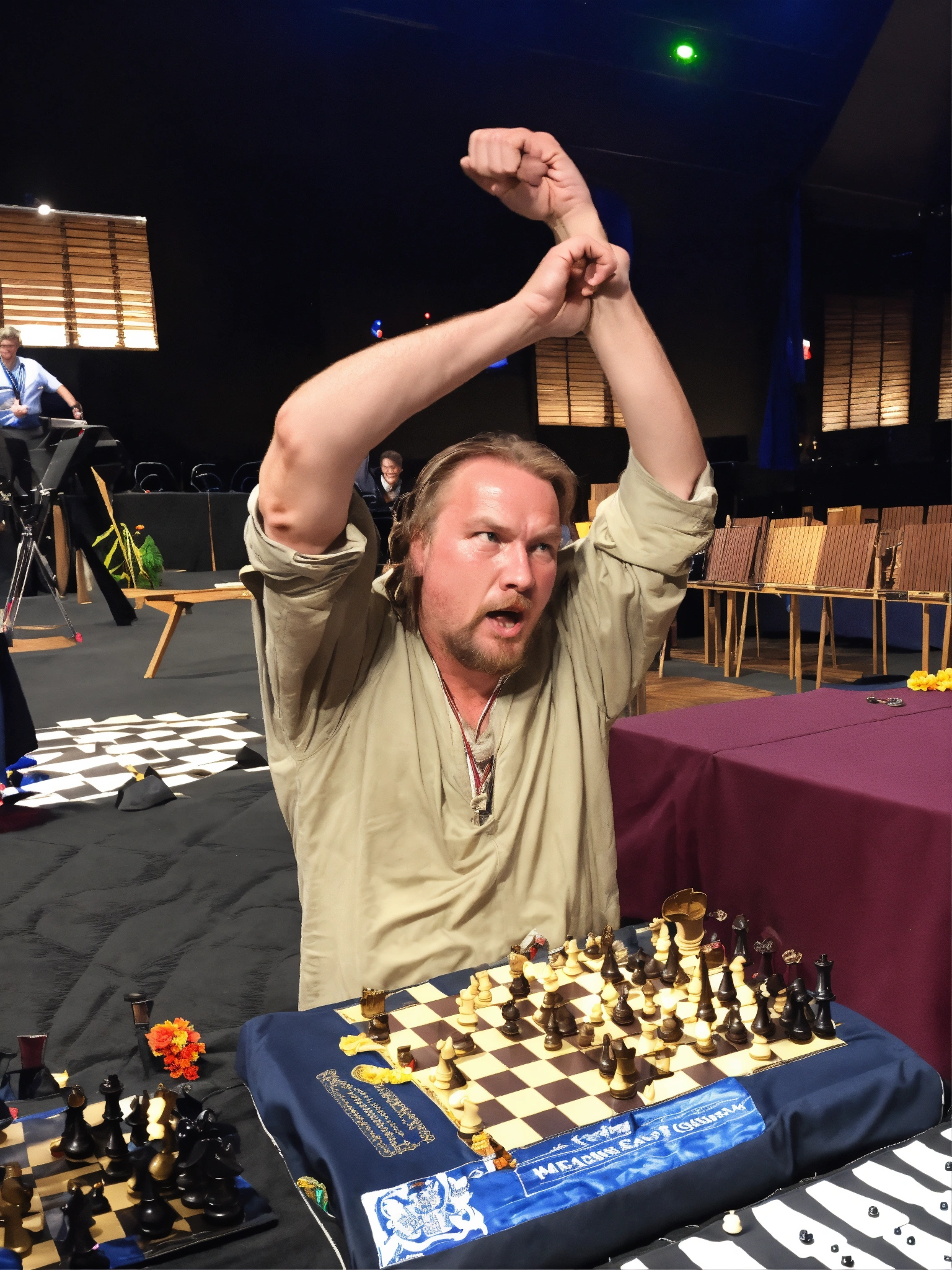 Carl magnusson defeats weeping opponent in a medieval chess tournament