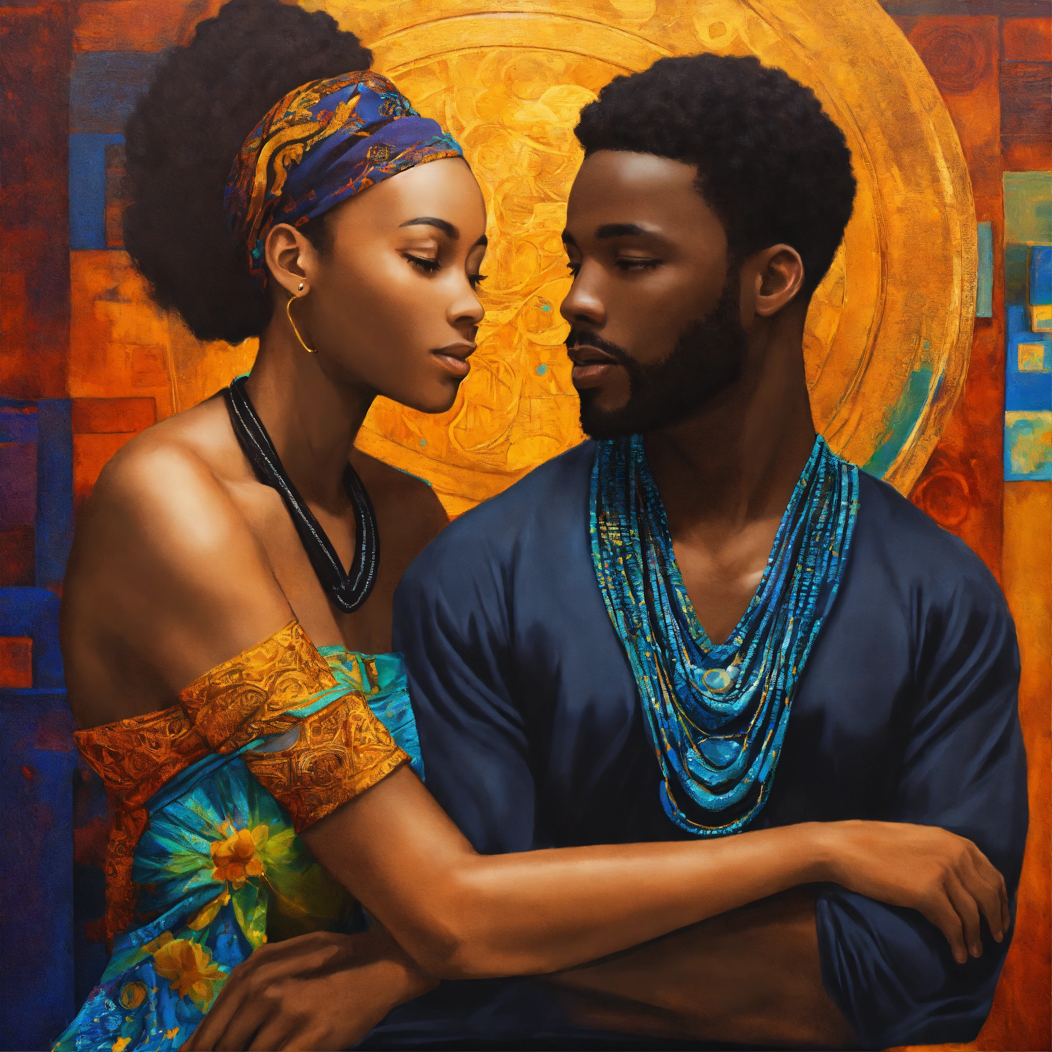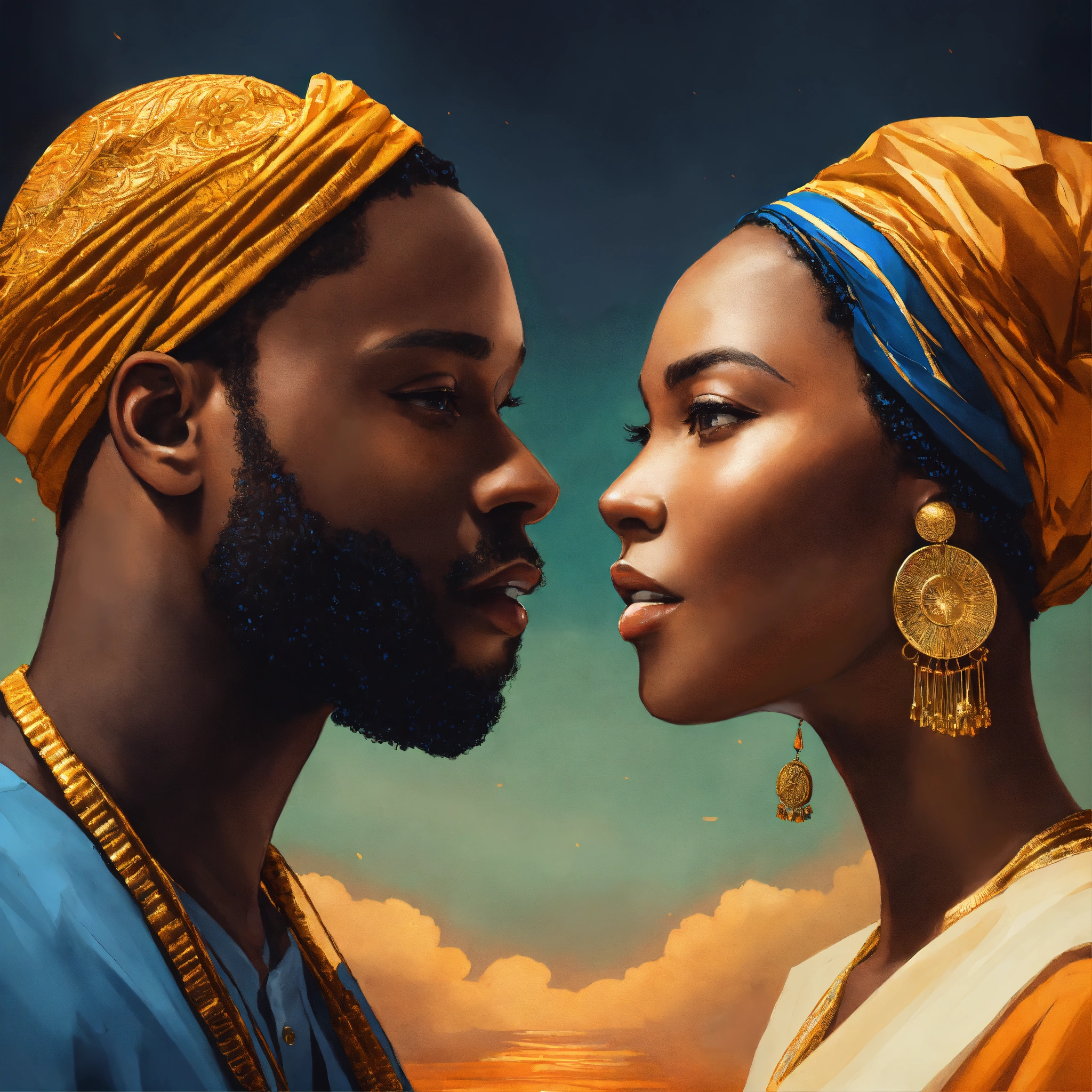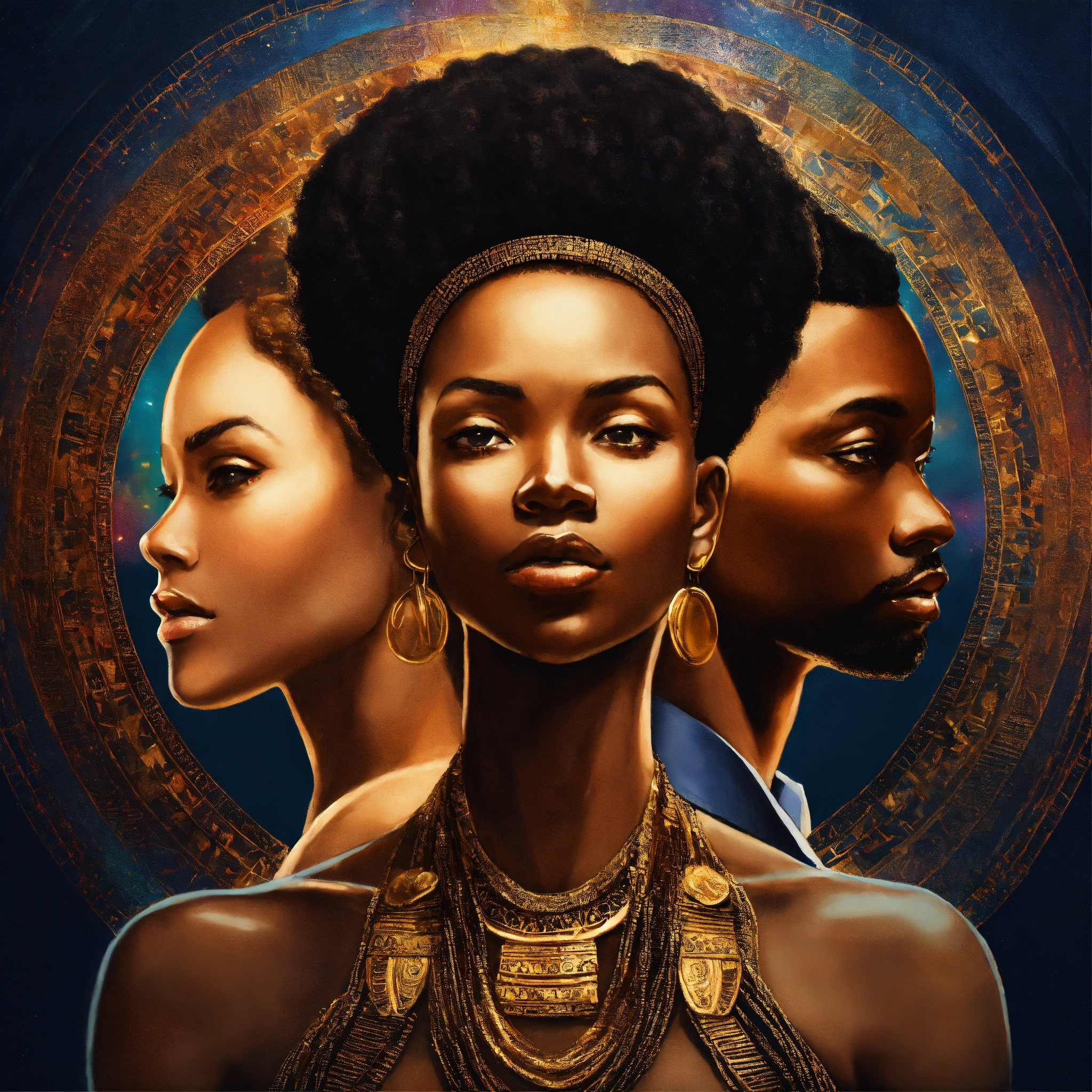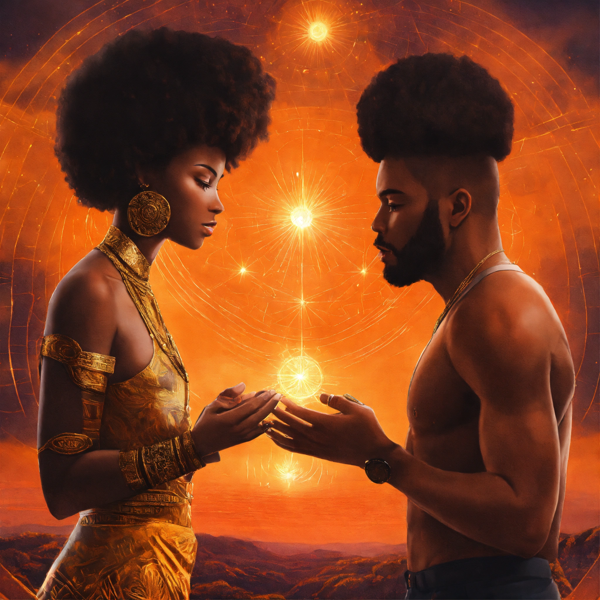 Spiritual art image of black man and woman representing soft skills such as negotiation