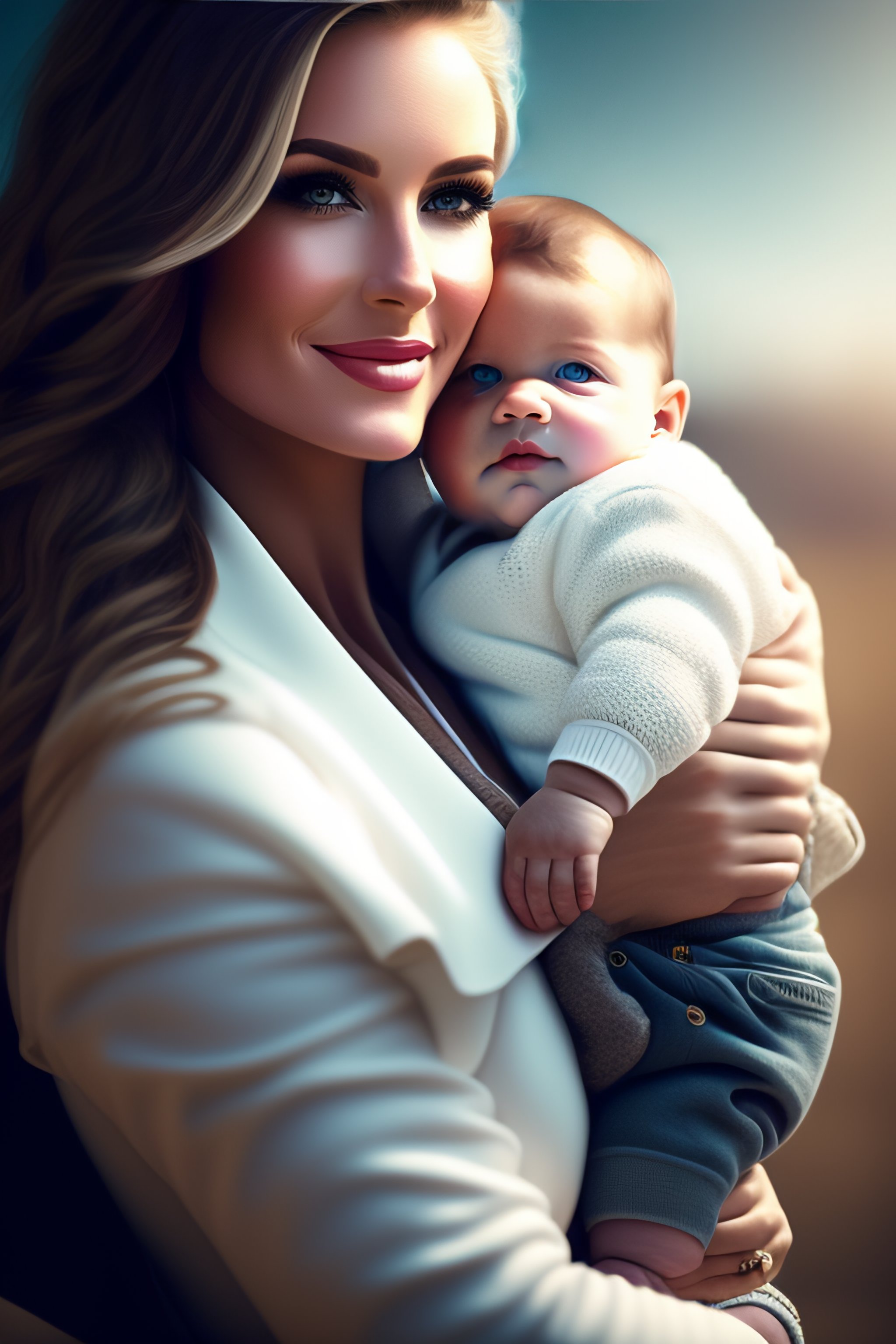 White mummy with her baby boy in arms