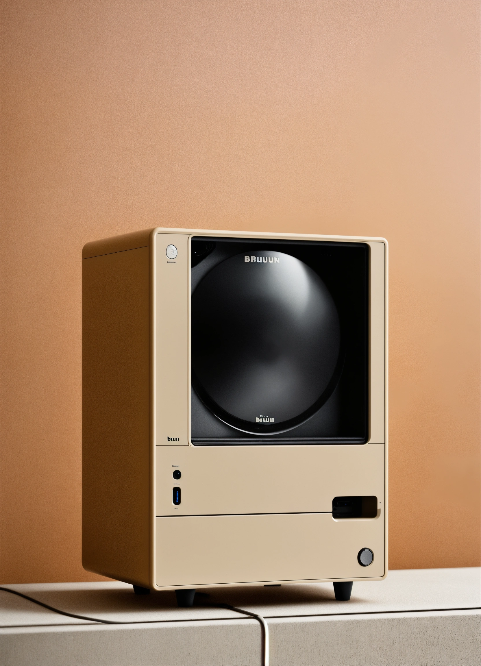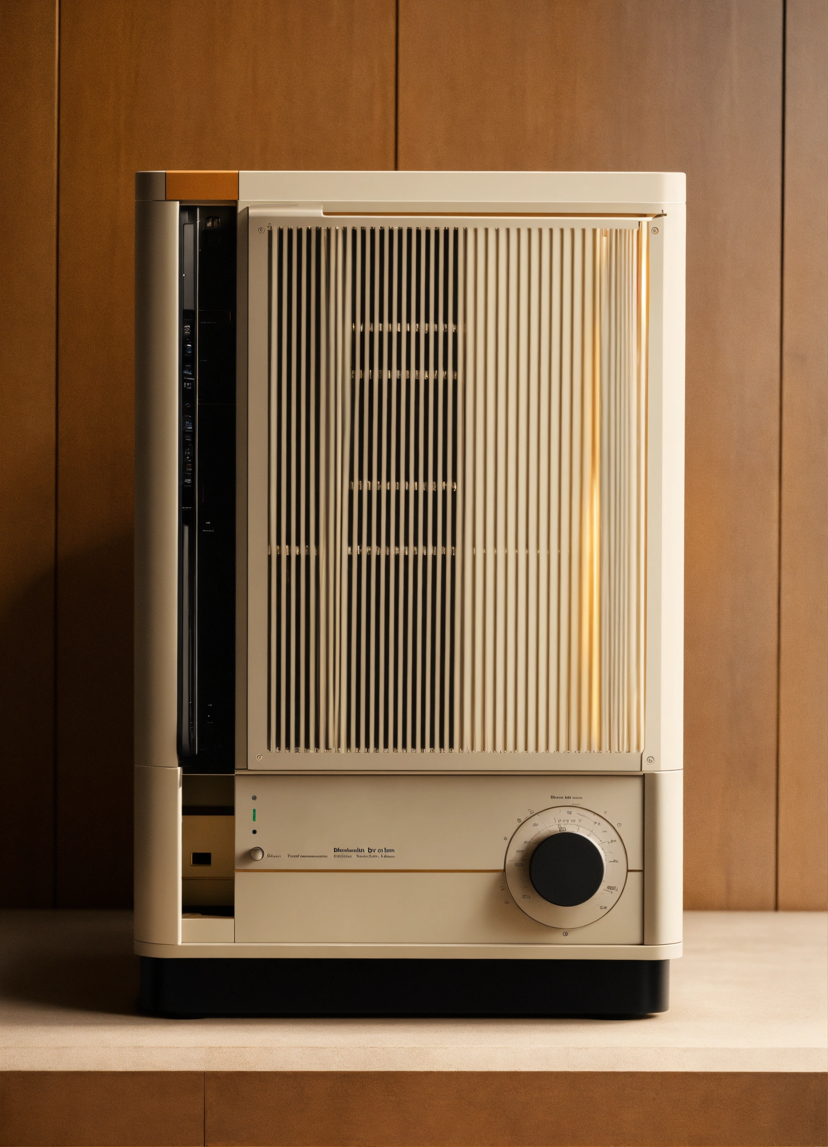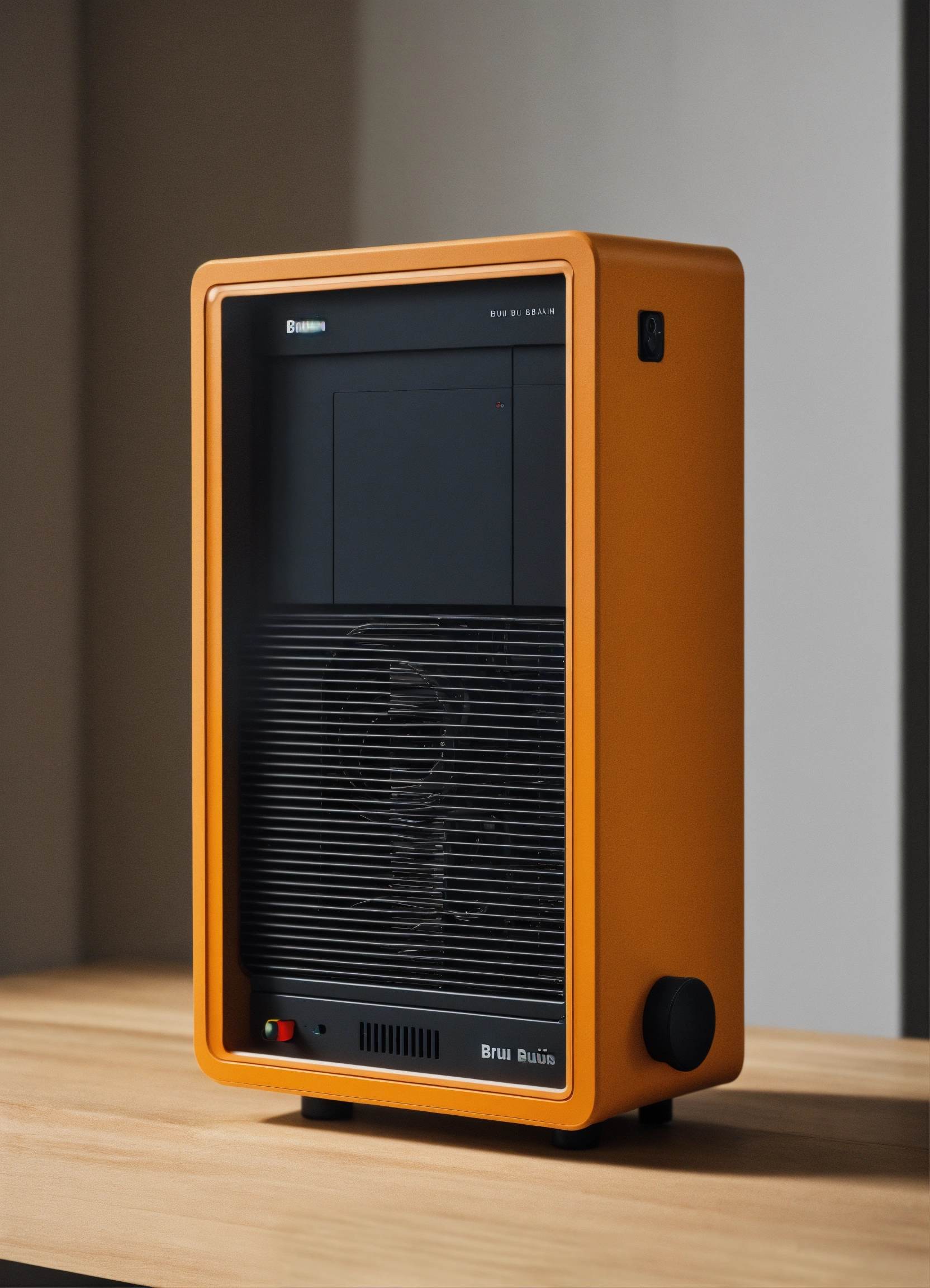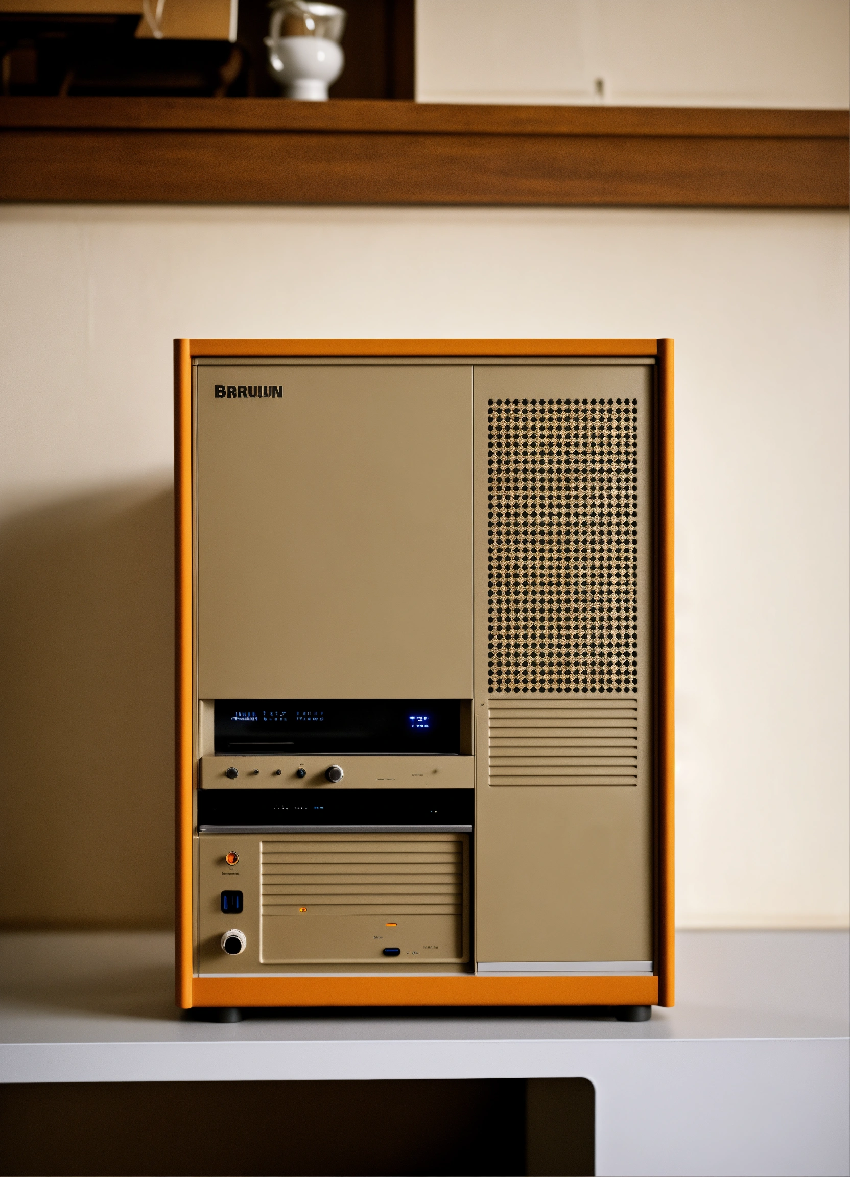 A stunning minimal pc case designed by dieter rams, braun. product ad retro. industrial design inspiration, warm retro natural lighting