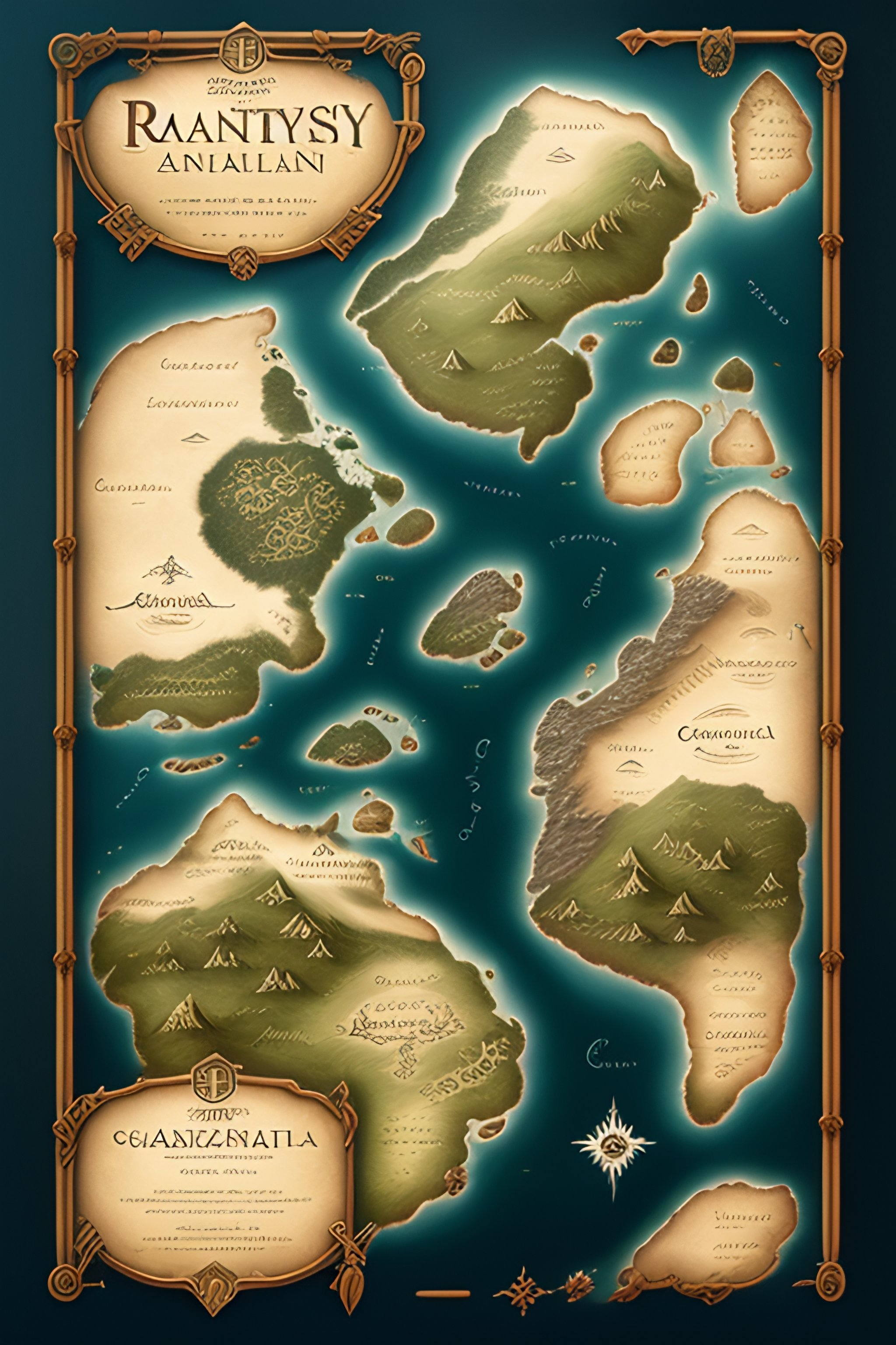 Fantasy continent map in old medieval style