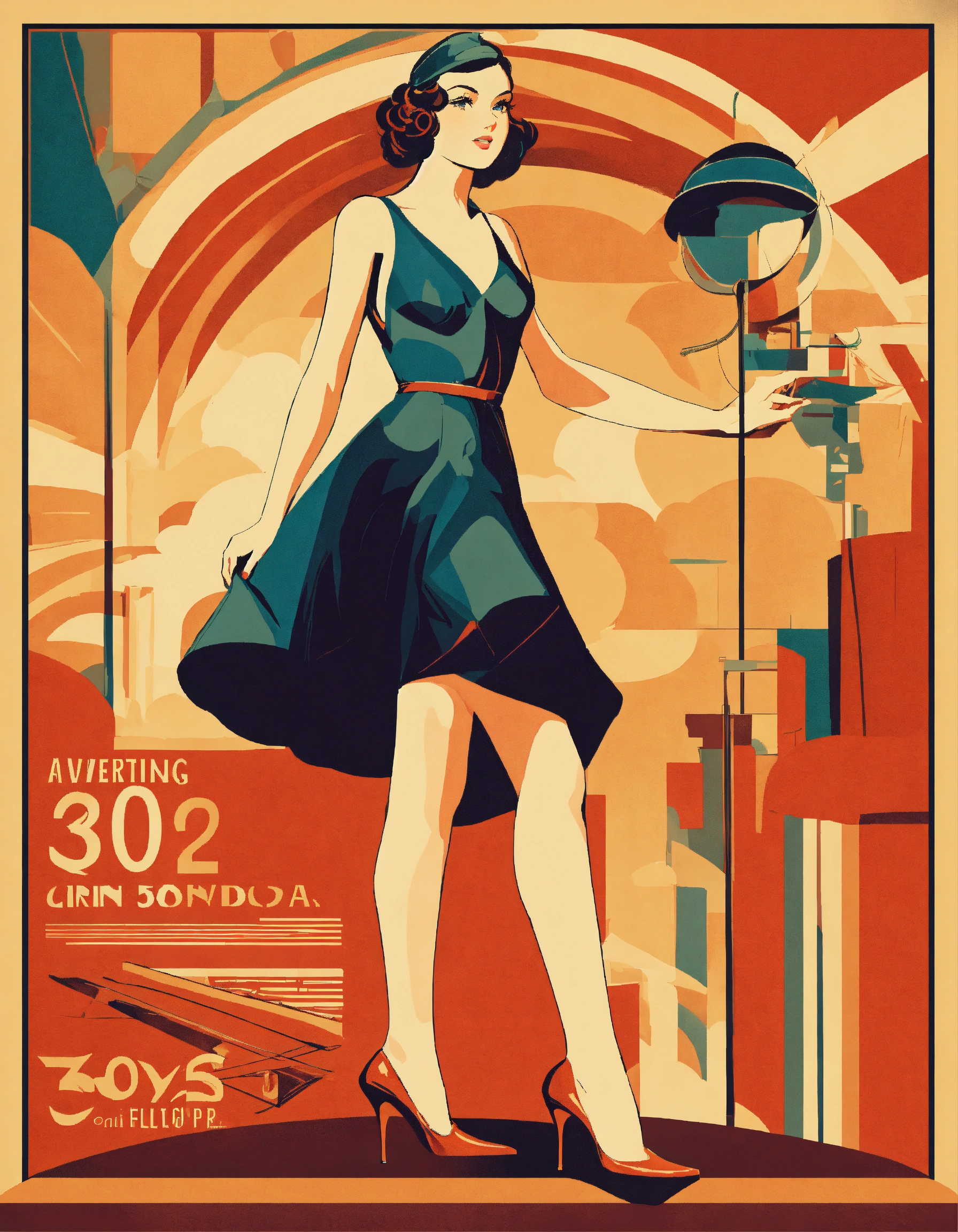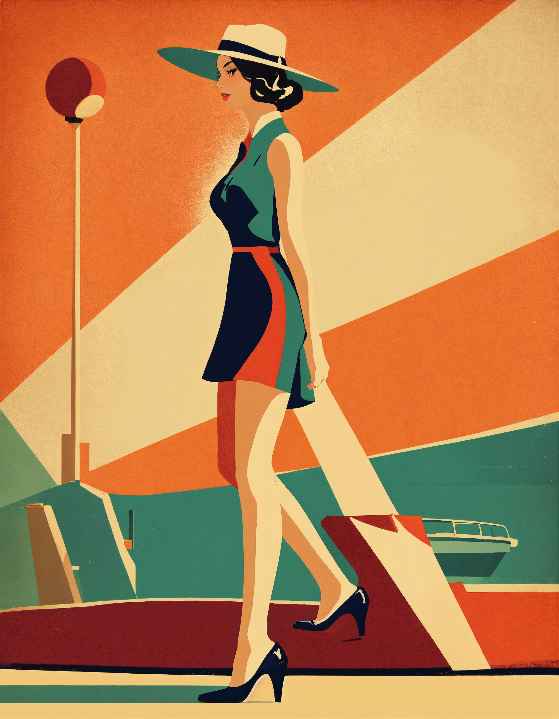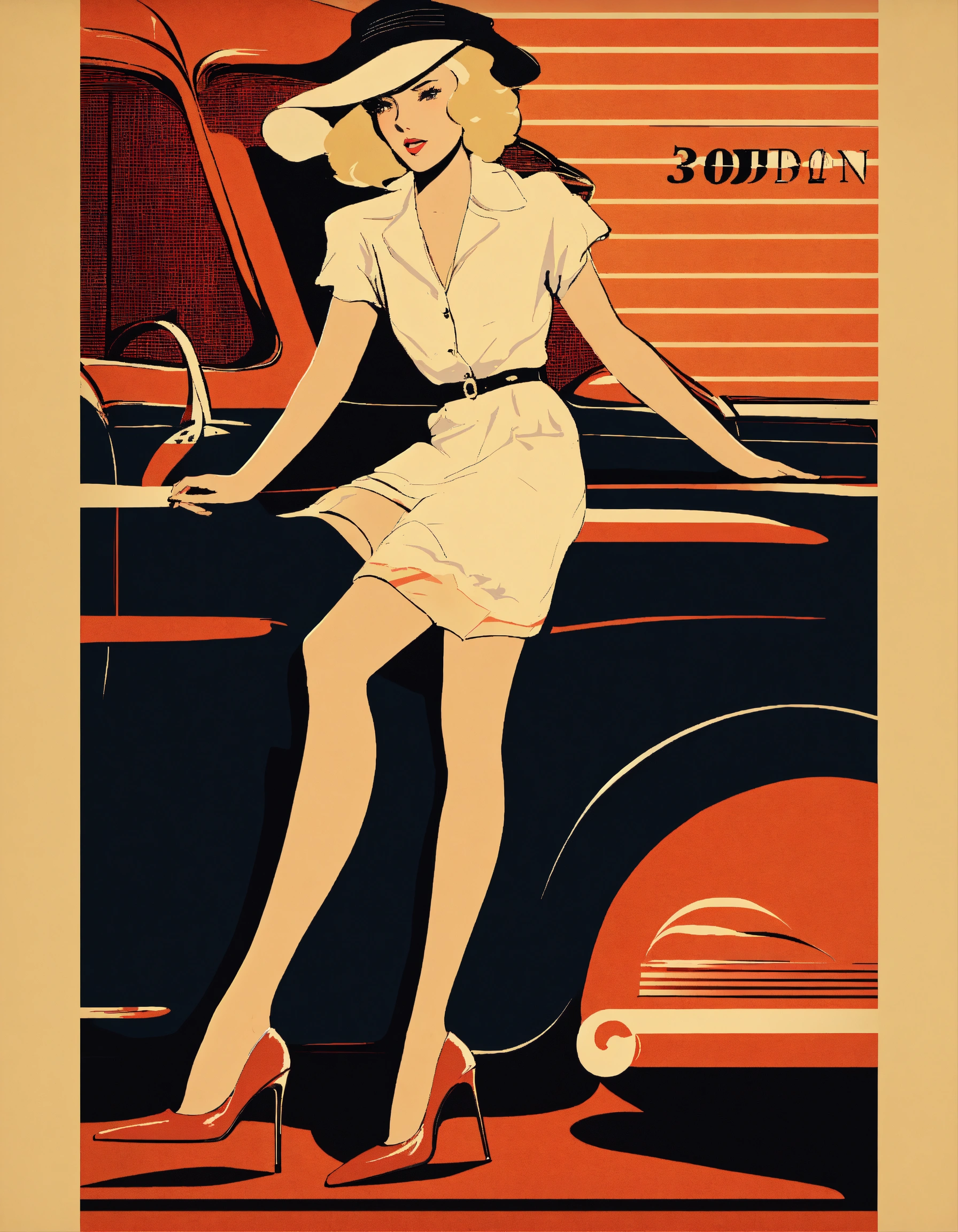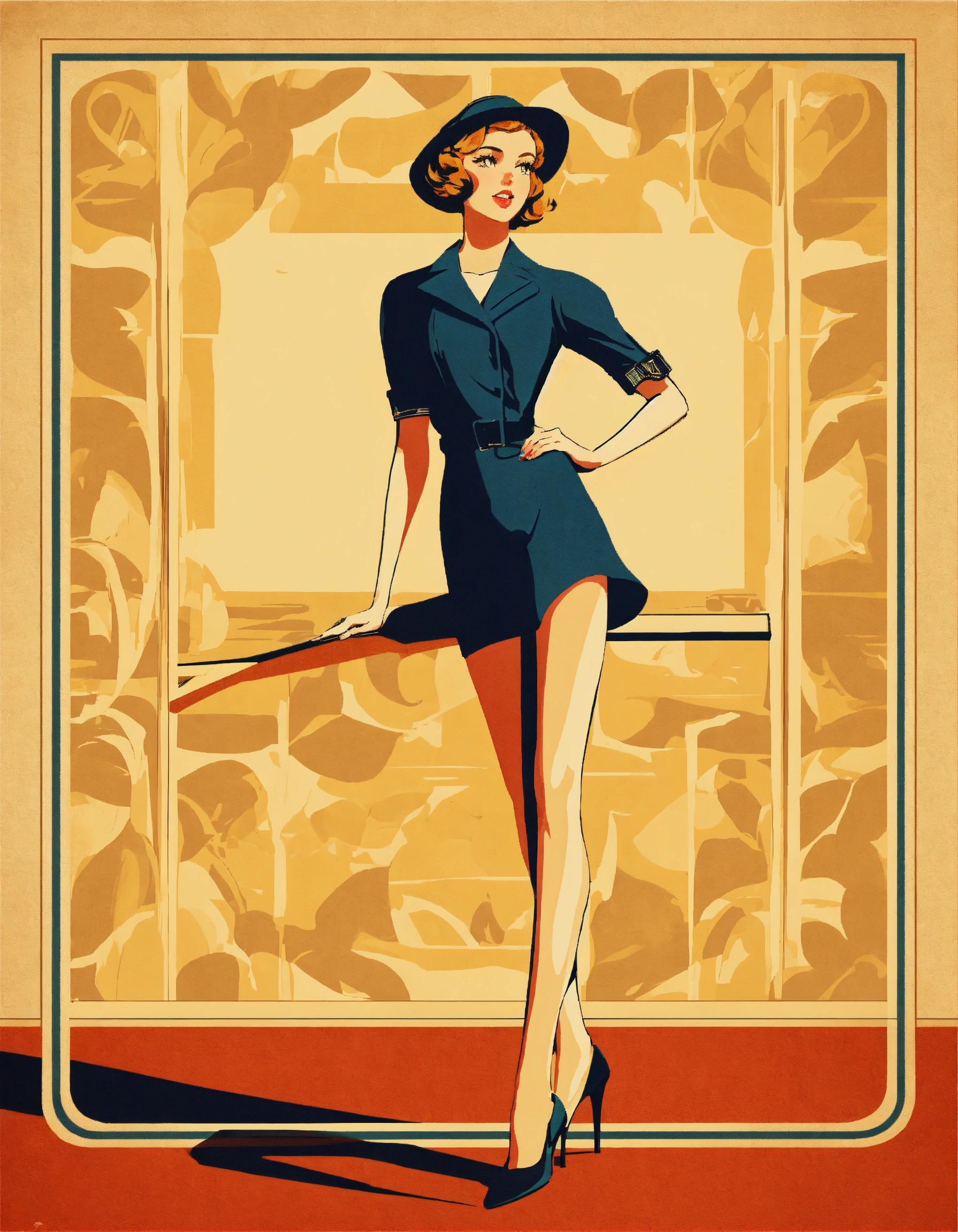 Retro poster with a girl in the style of the 30s, advertising. graphics minimalism рin-up beautiful legs