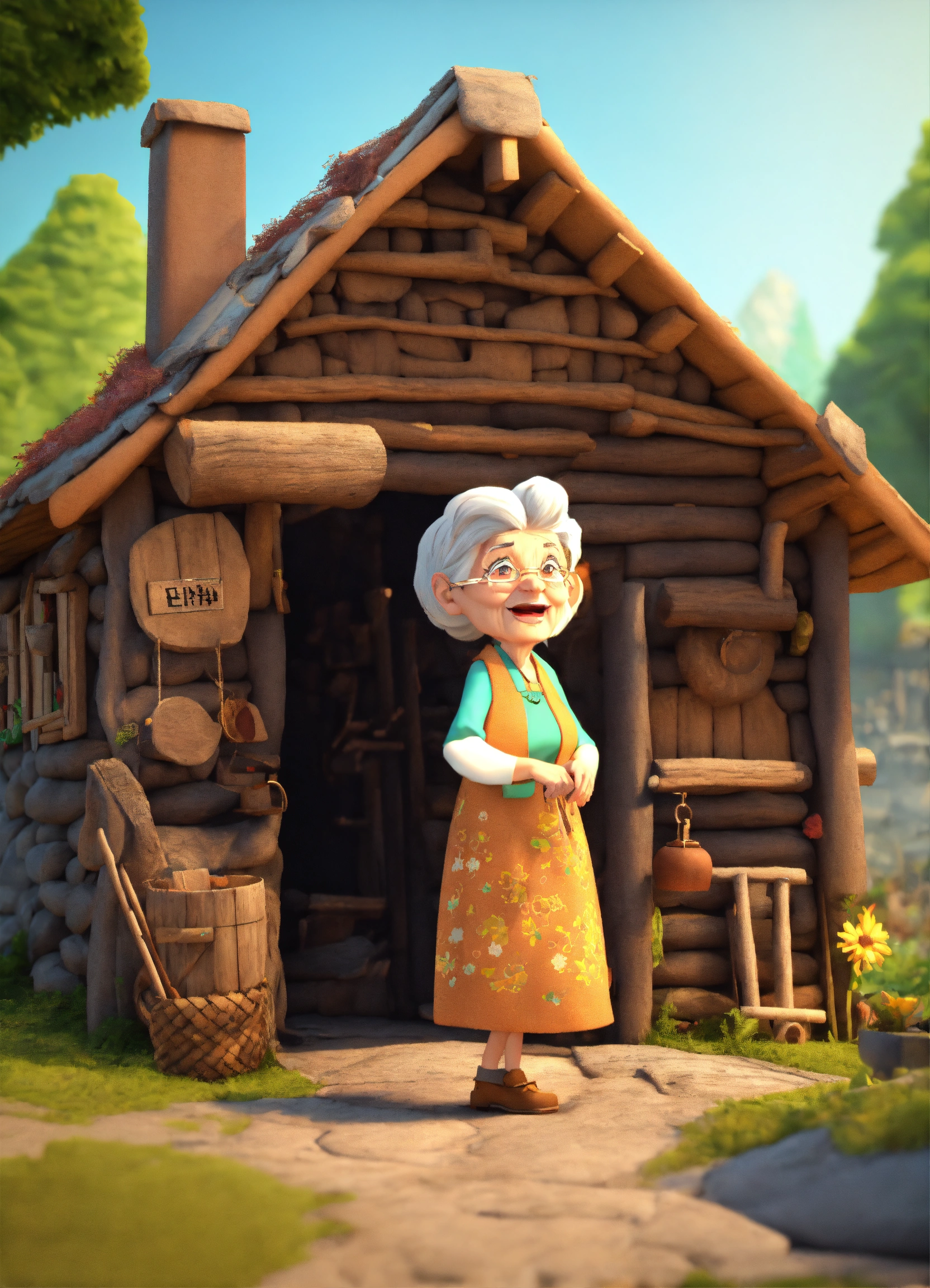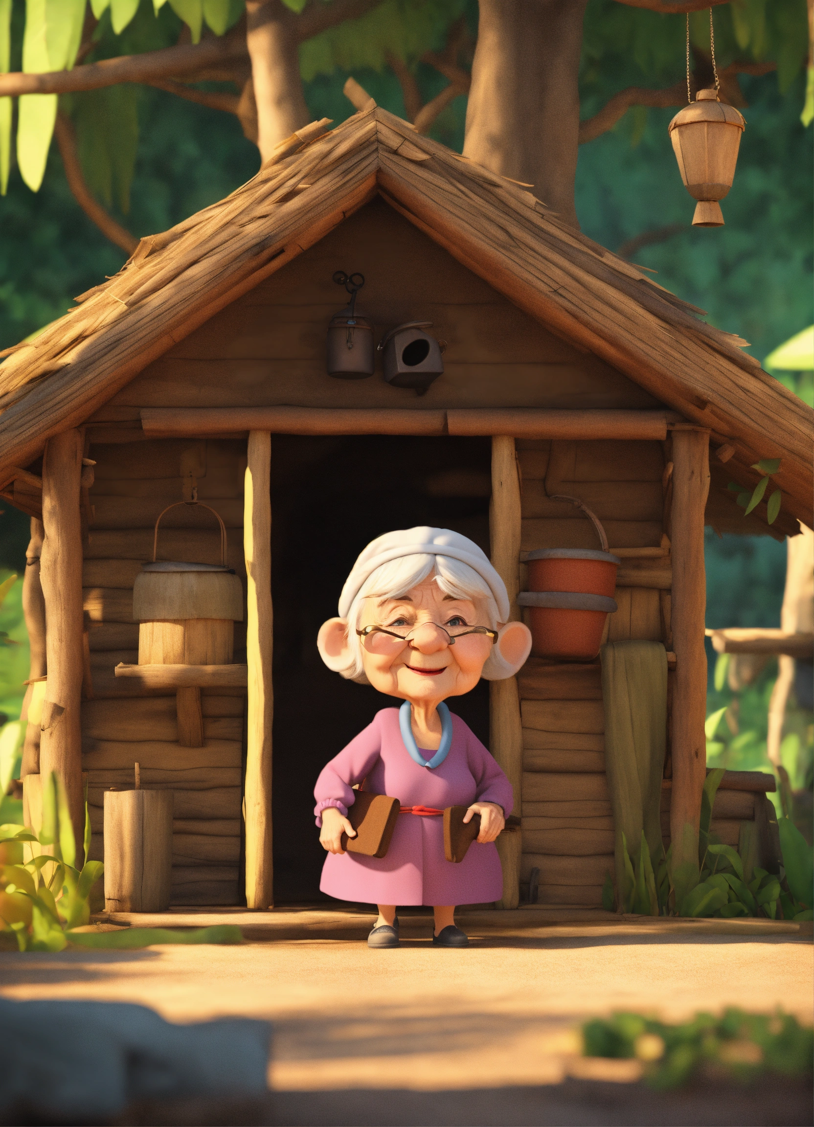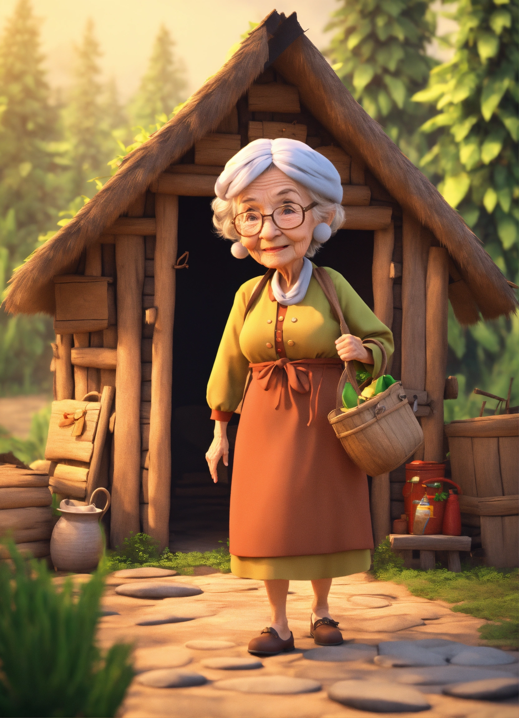 old lady came out of huts