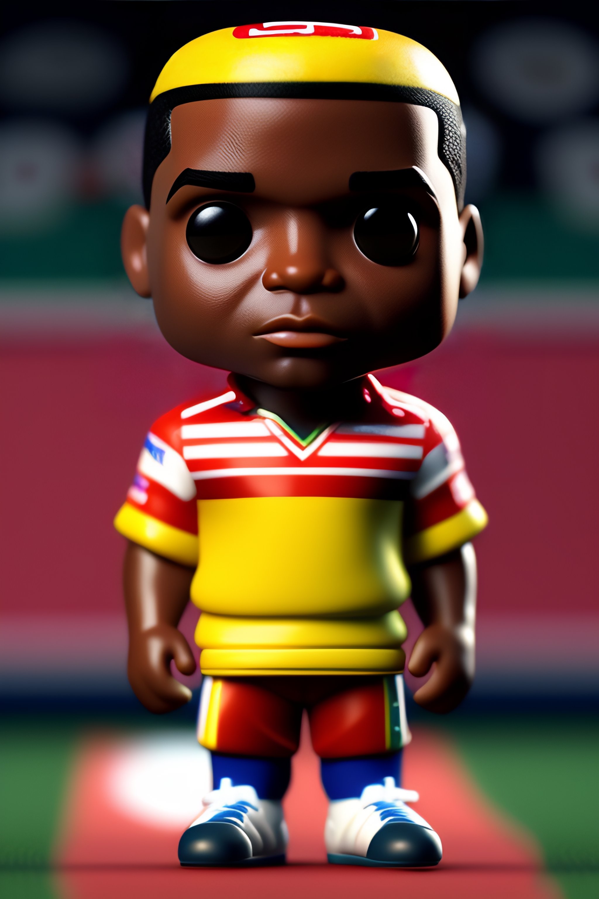 3d render of funko pop jefferson farfán wearing a peruvian shirt