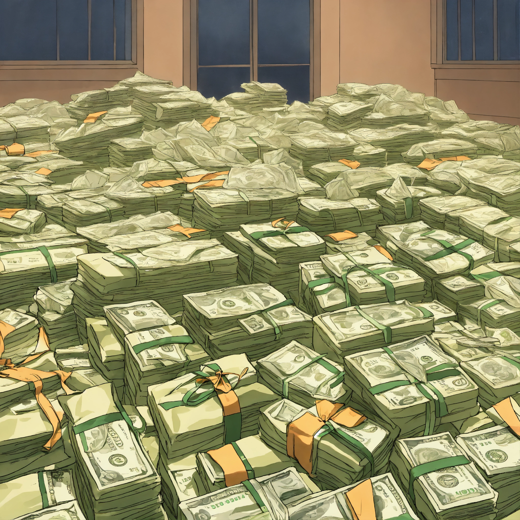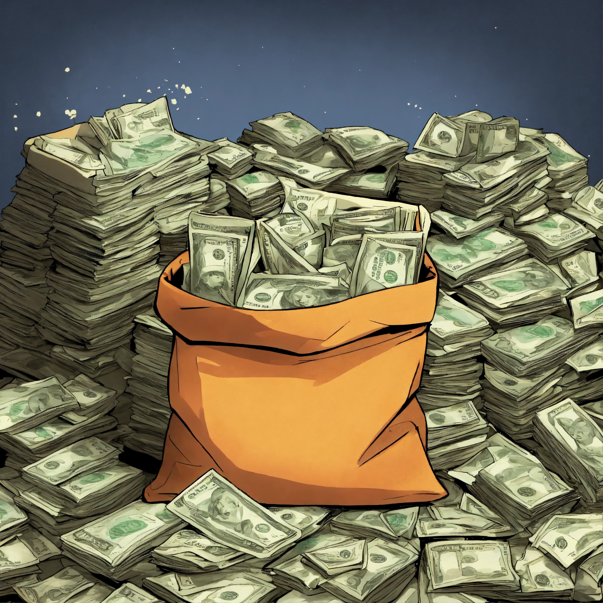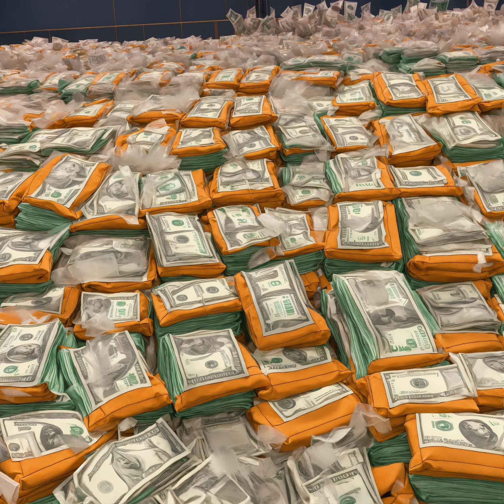 A copious amount of plastic zippy bags full of white powder and a copious amount of dollar bills, 8k, cartoonish