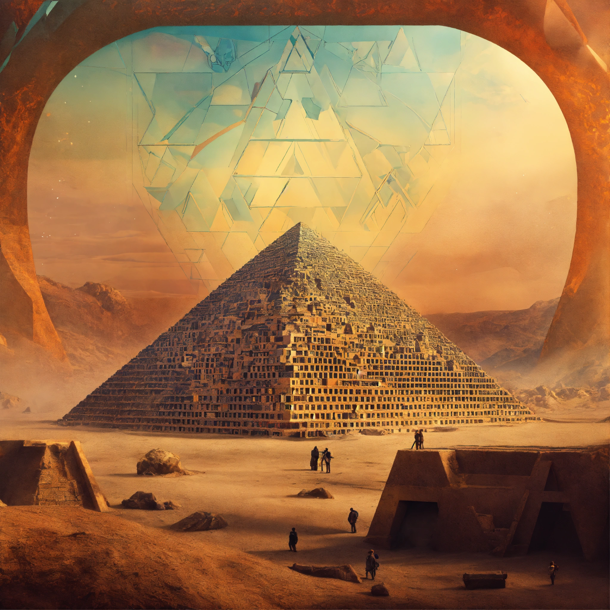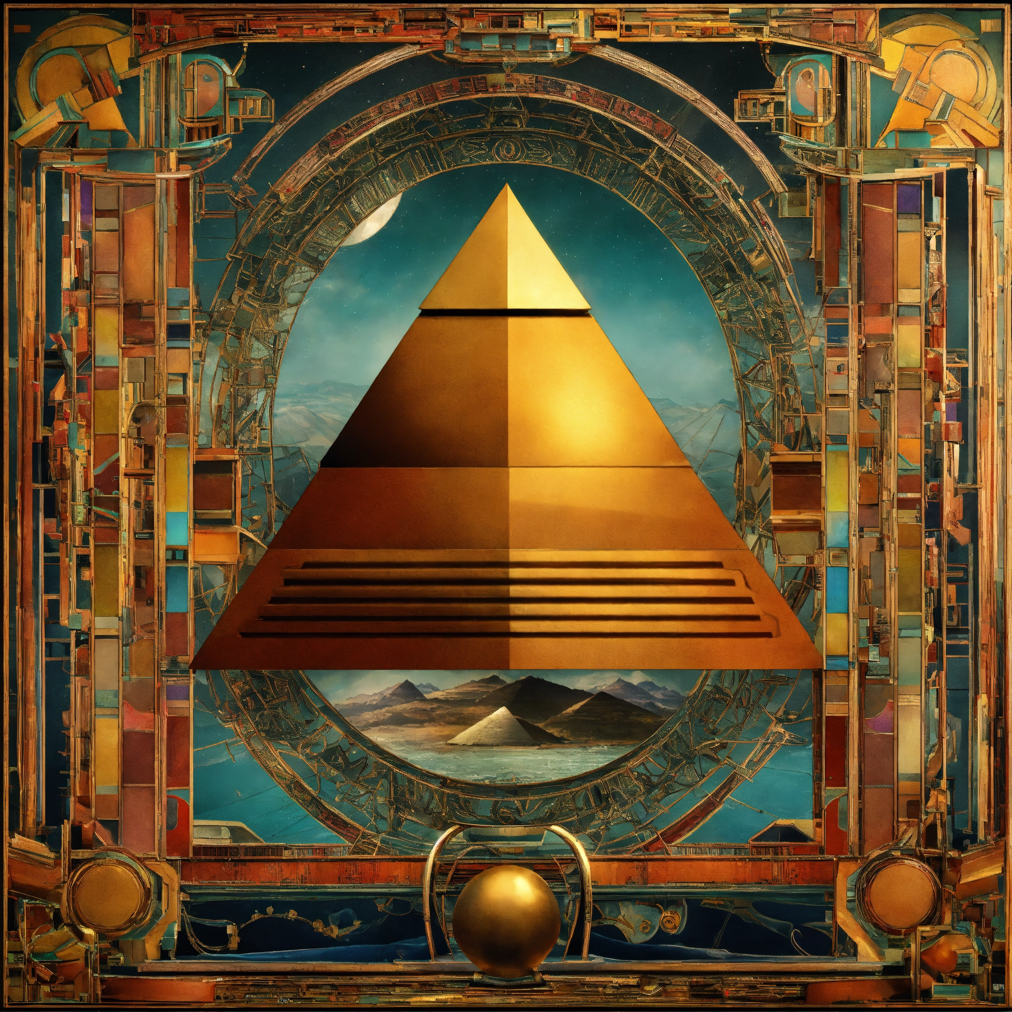 Album artwork, 3d, full hd, abstract, logo, figures, steel, dualism, forms, art nouveau, bauhaus, pyramids, alien, 4d, mayans