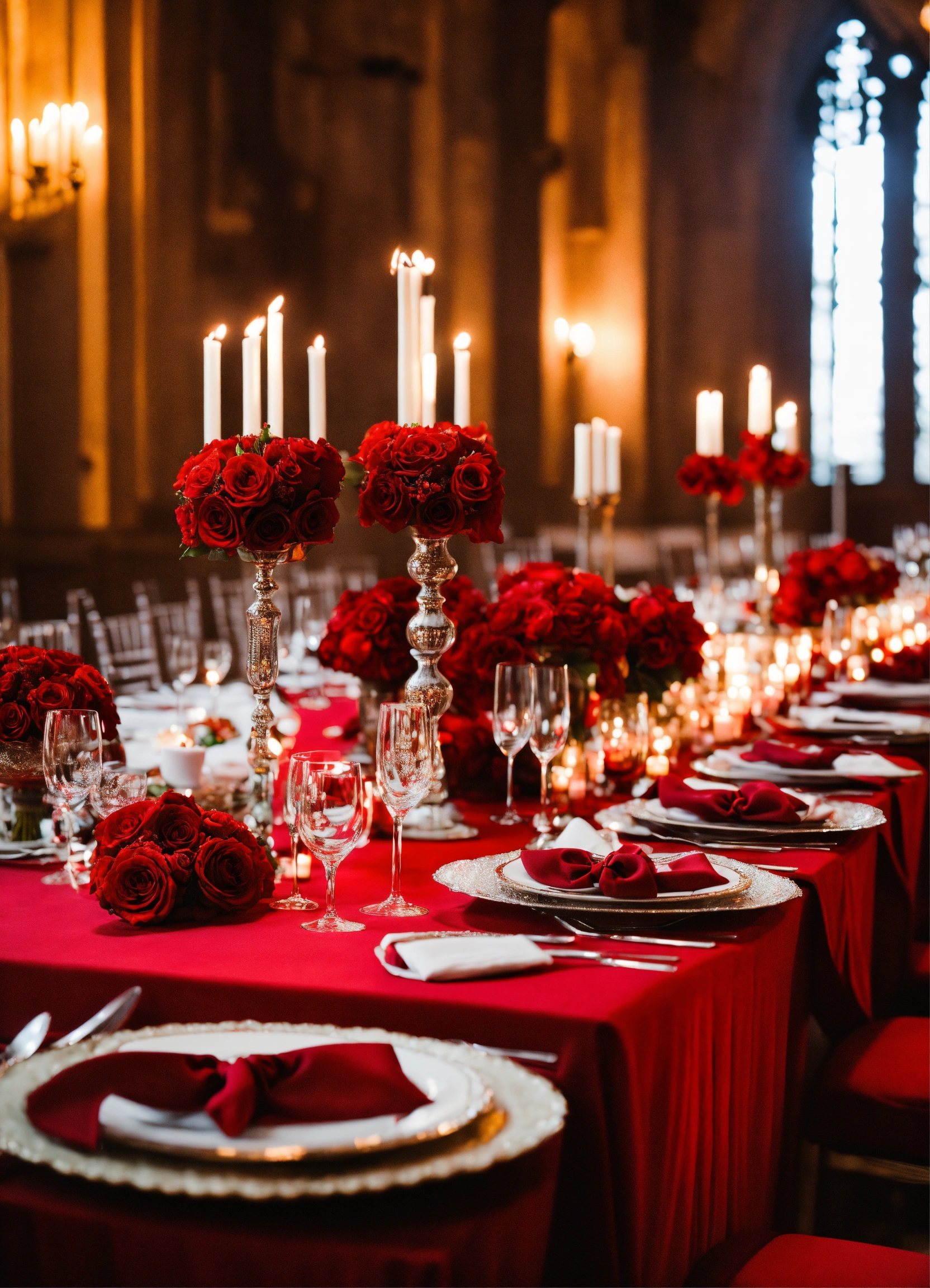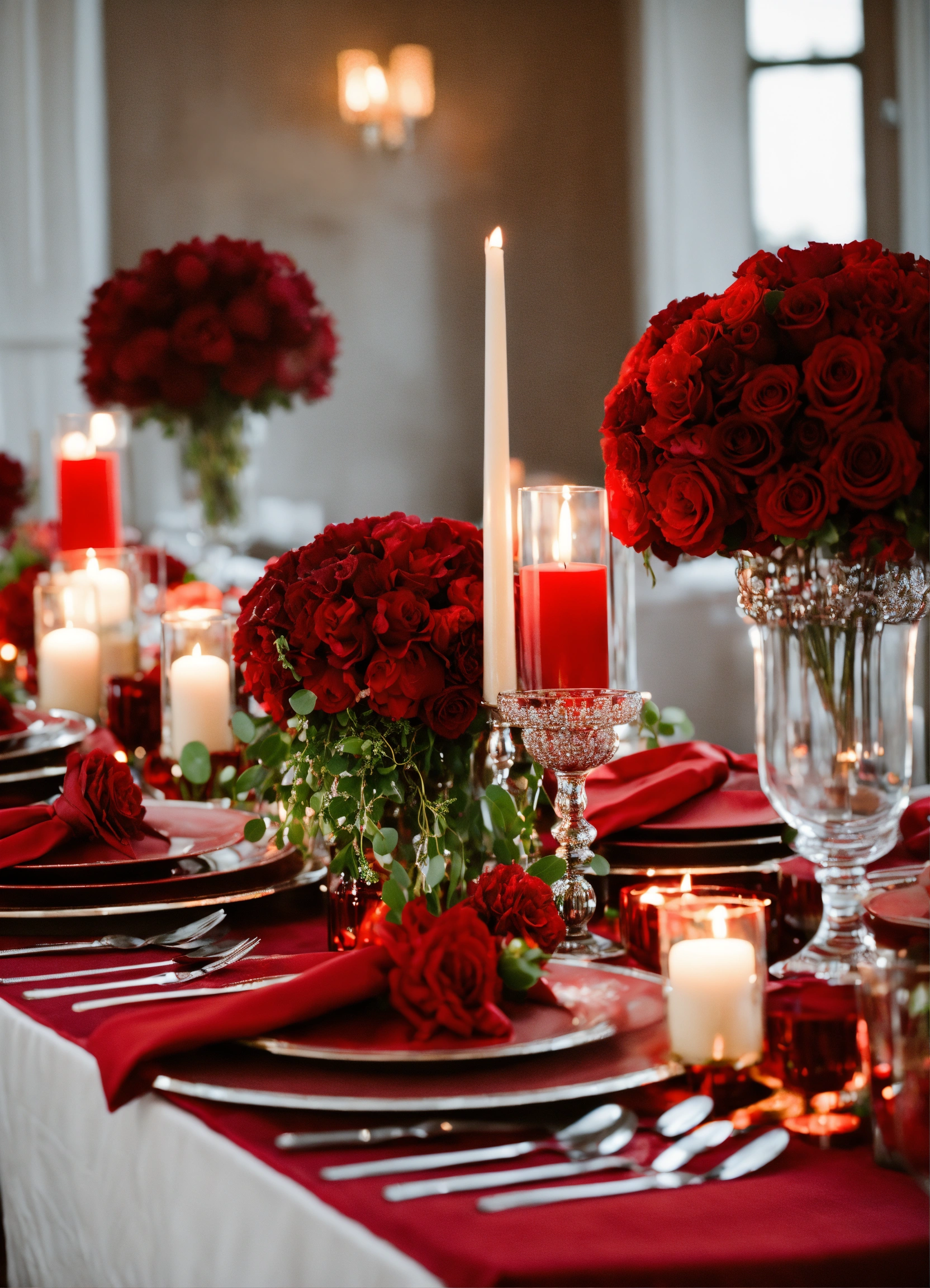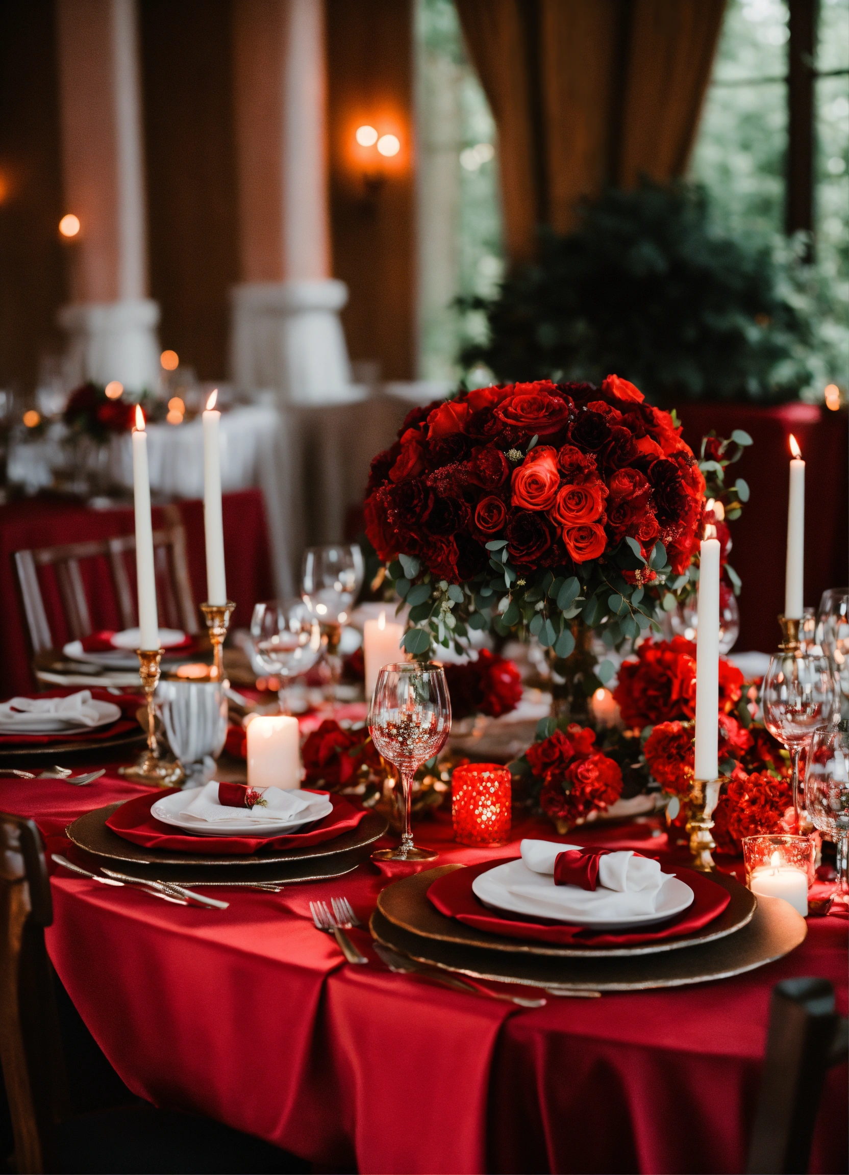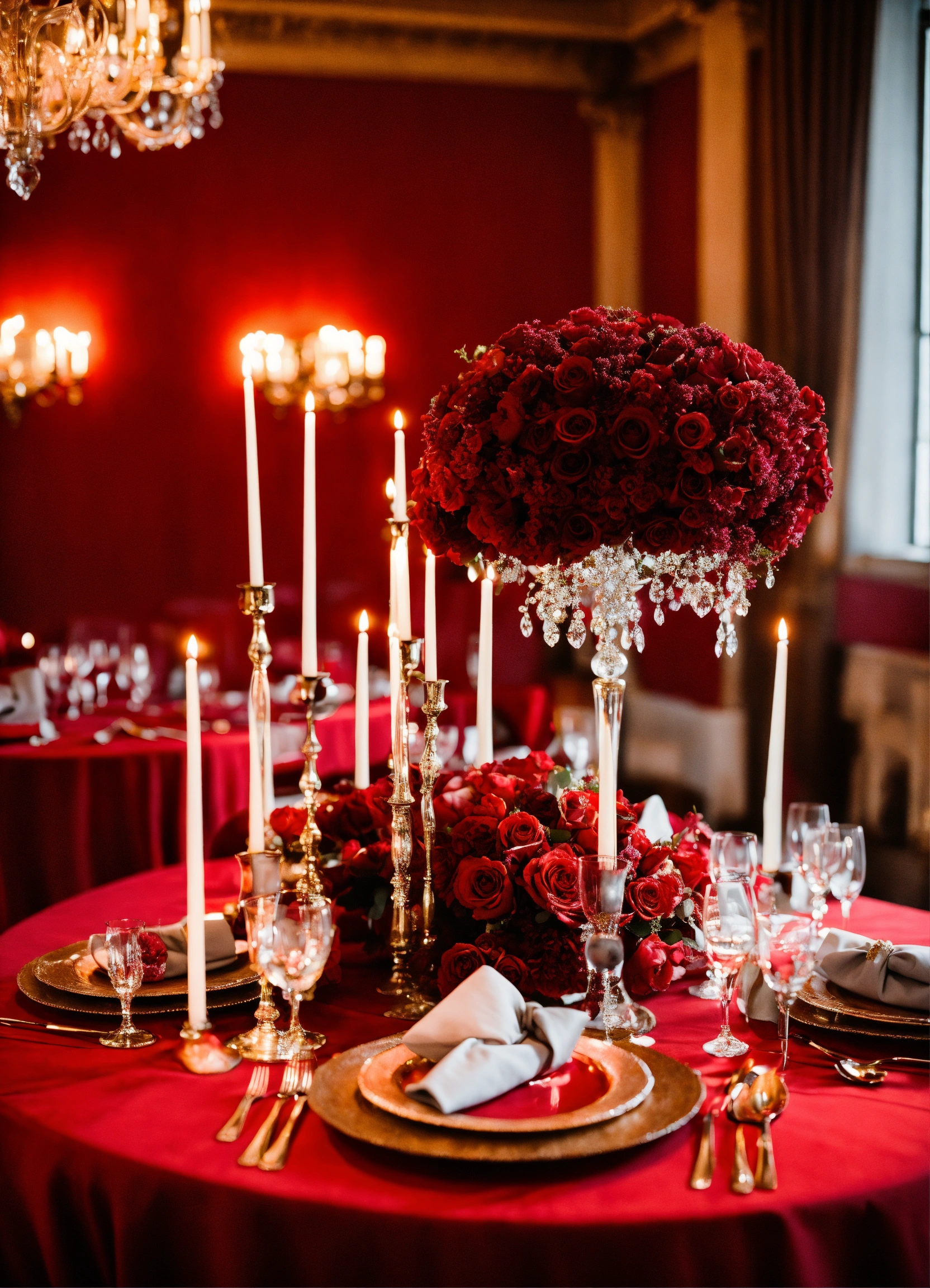 A beautiful and elegant red romantic wedding table decor
