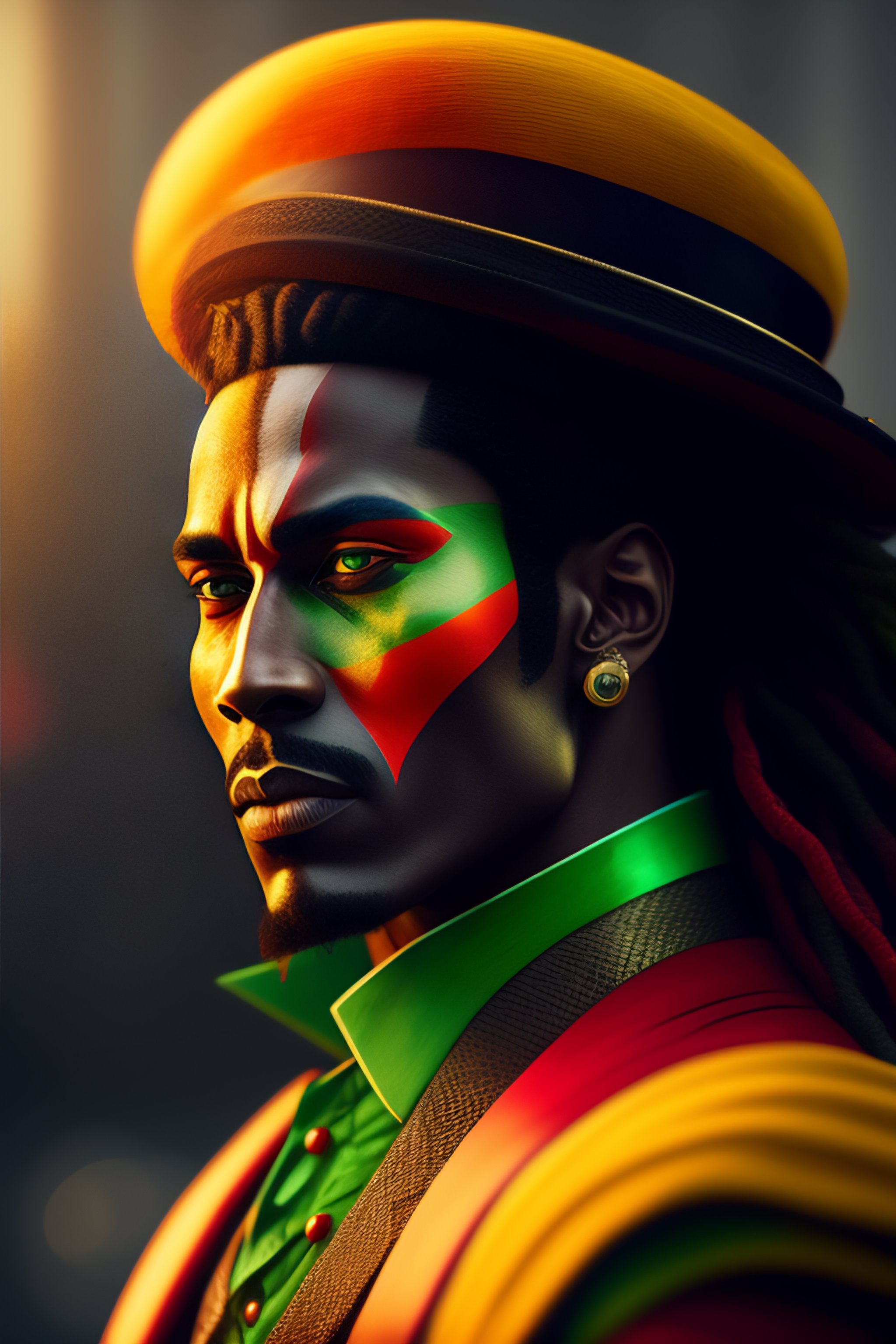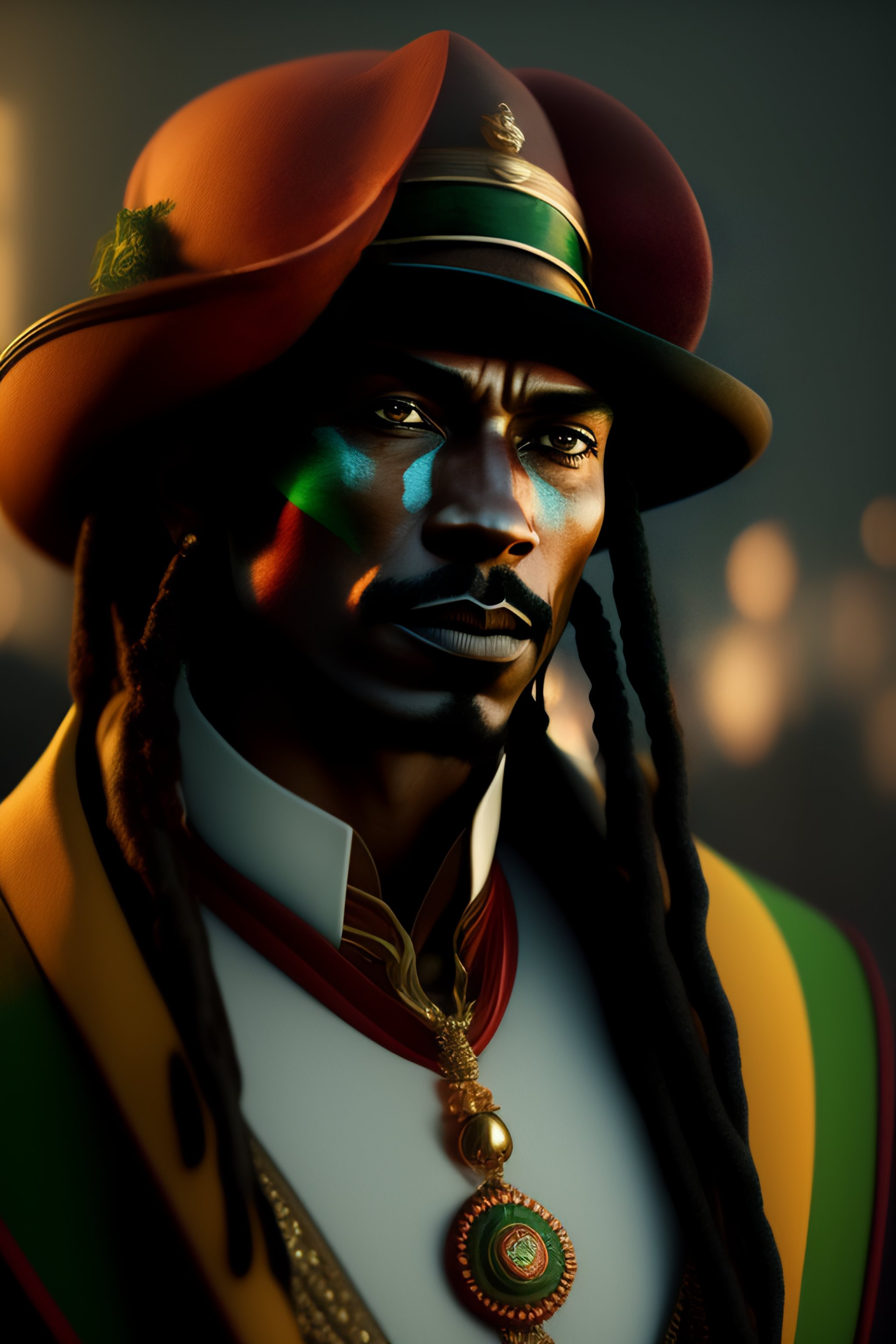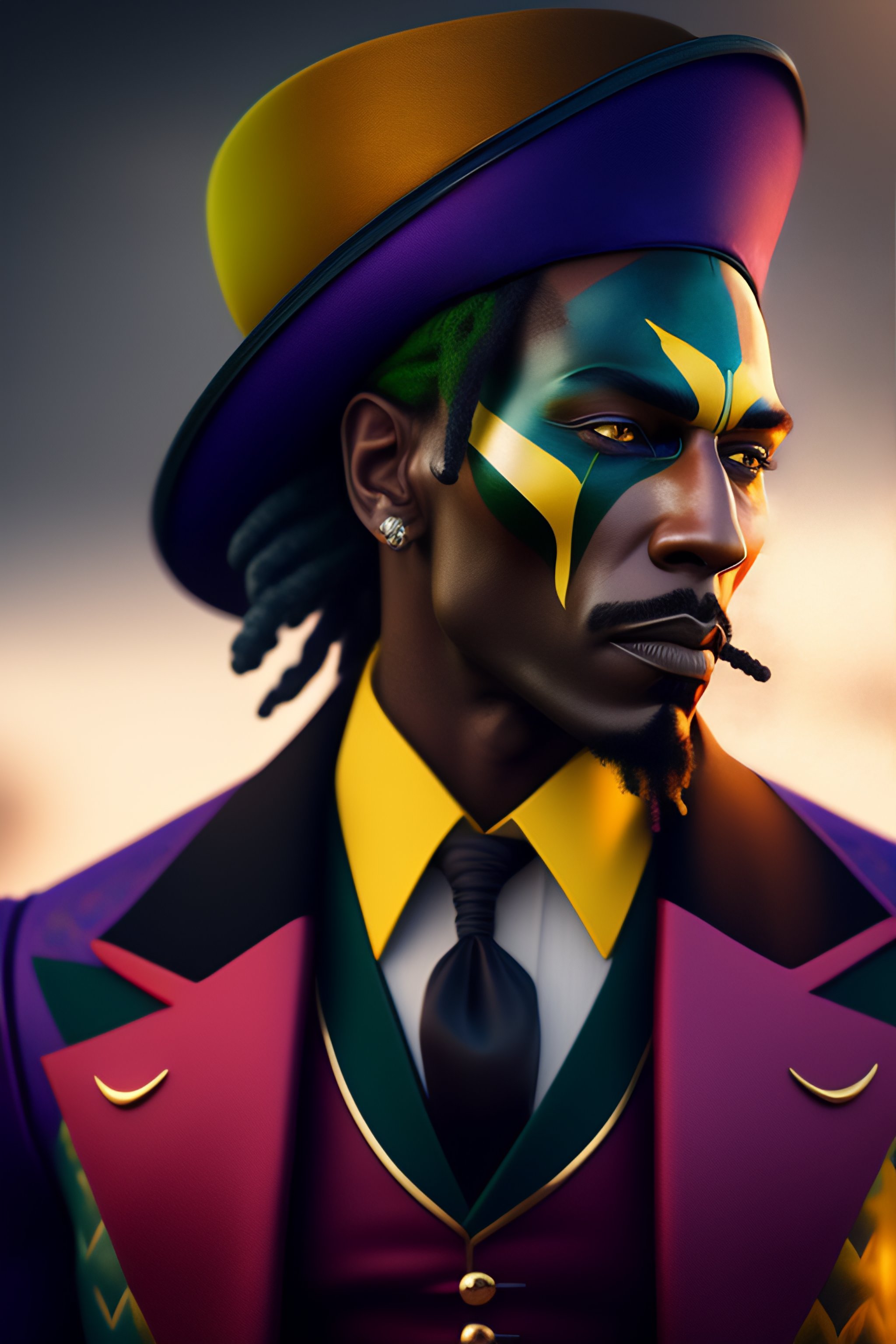 Rasta joker, 8k portrait, highly detailed, beautiful, model pose, cinematic, movie still, by greg rutkowski and mandy jurgens and diegokoi
