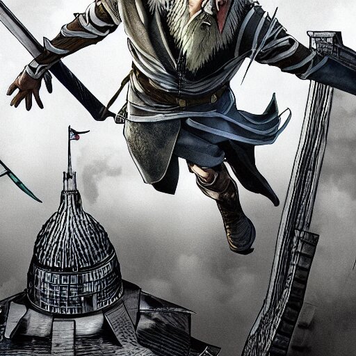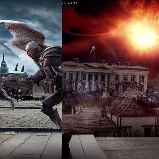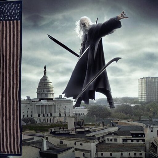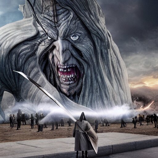 Gandalf attacks the white house, as an ugly titan, attack on titan, shingeki no kyojin, film still, wide open city