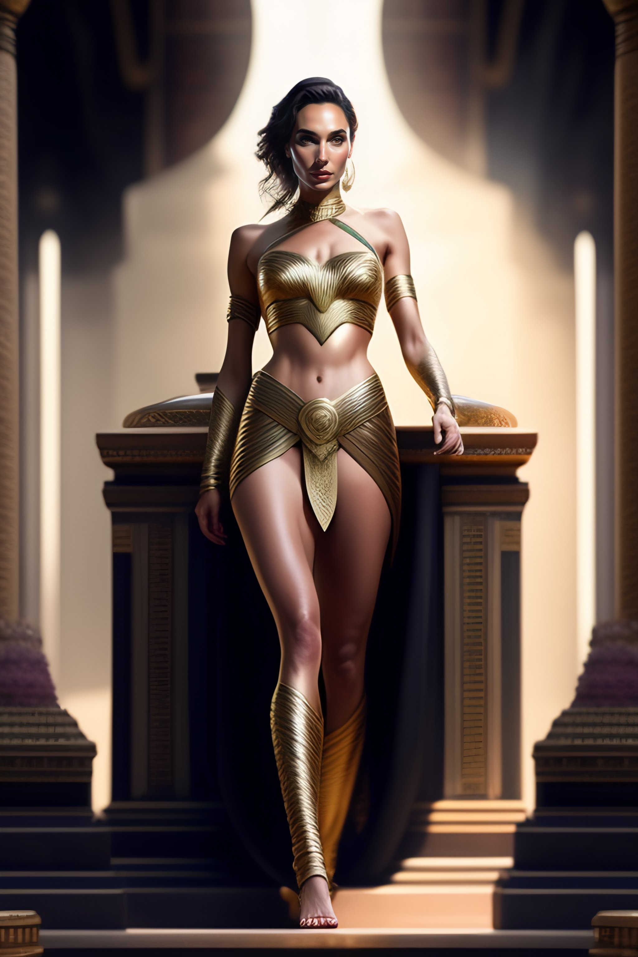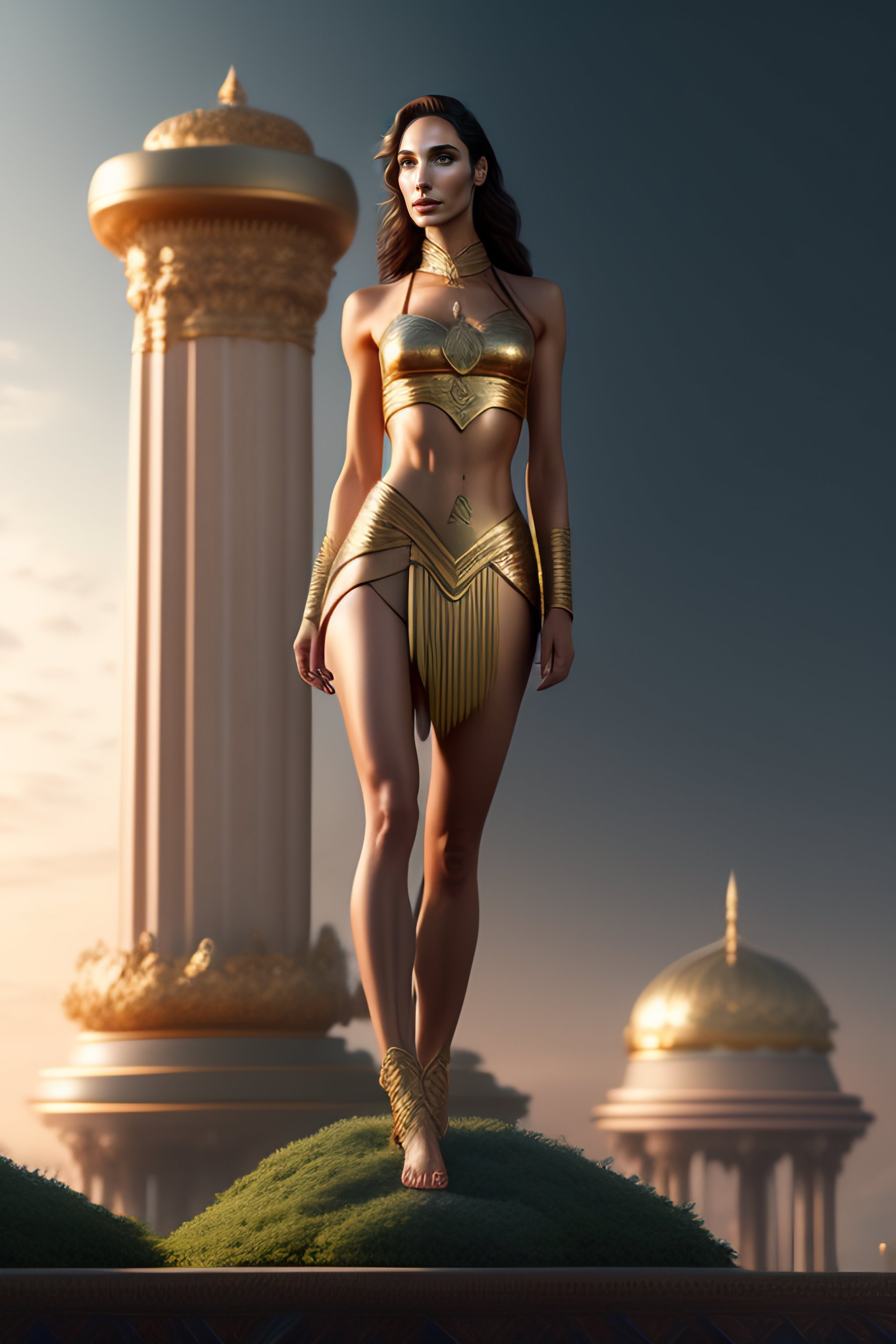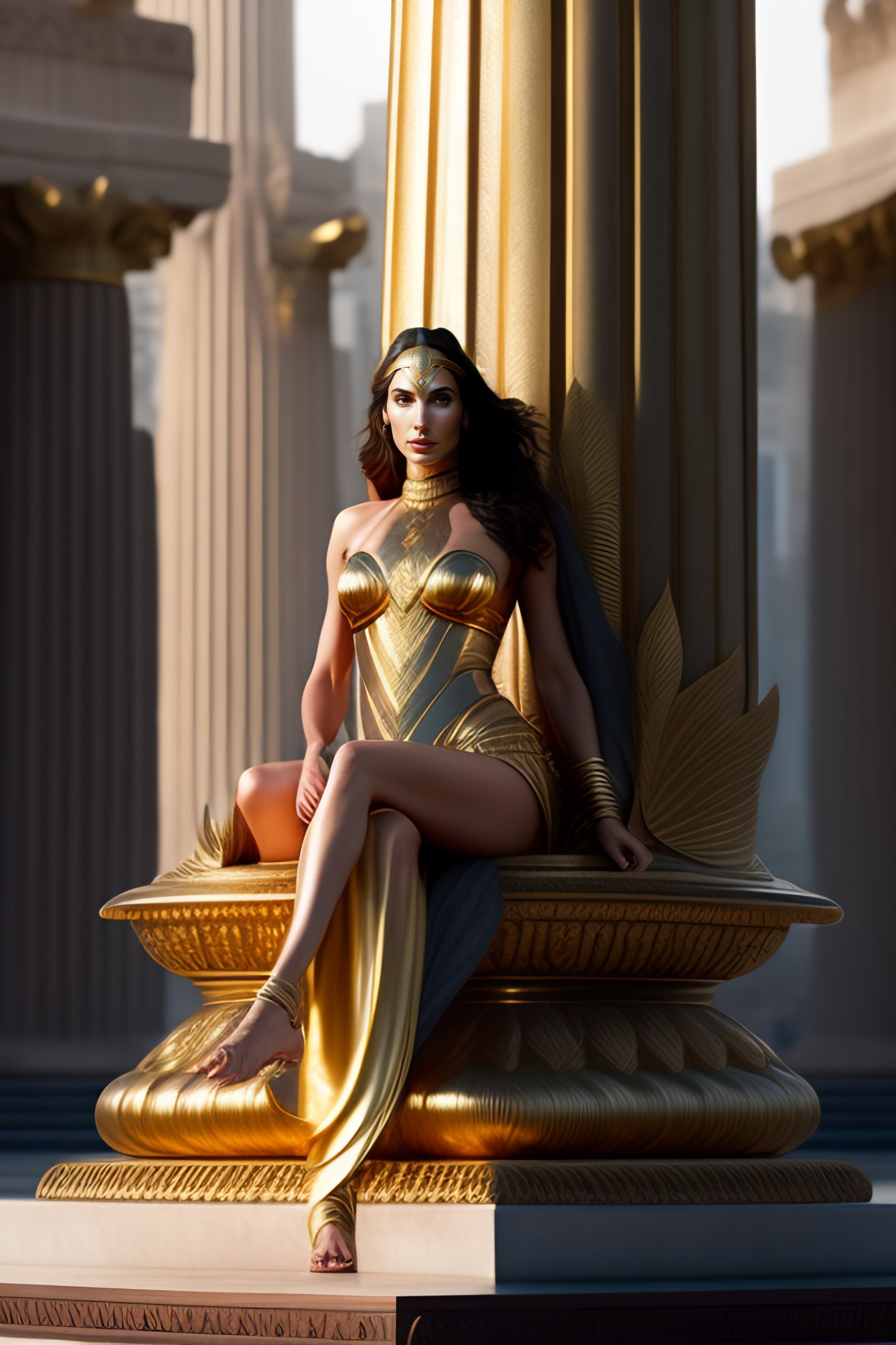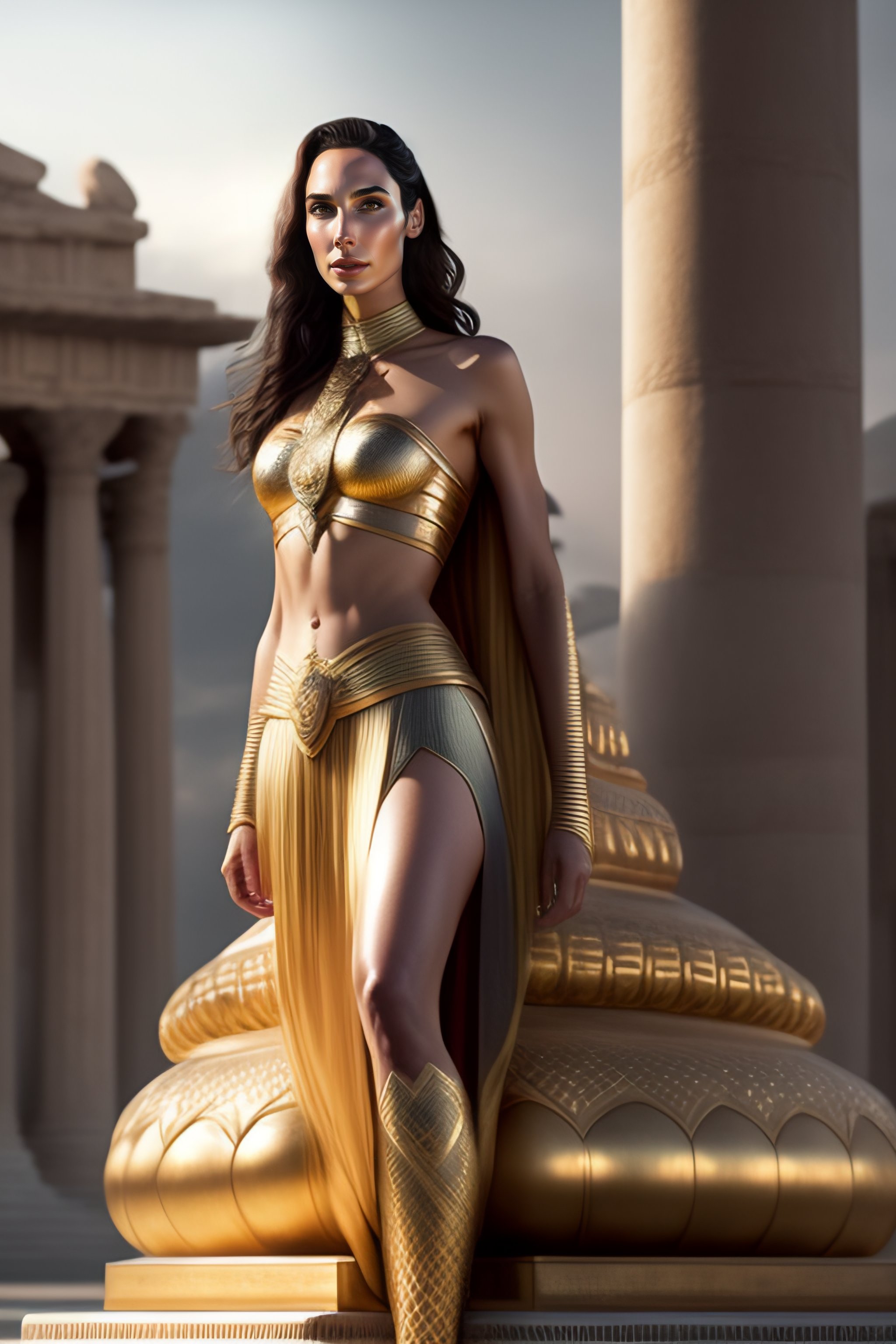 Gal gadot is virgo shaka in the lotus position on top of a large lotus flower, greek column in the background and snake hair, full-body view, greg rutkowski, ultra detailed, volumetric lighting