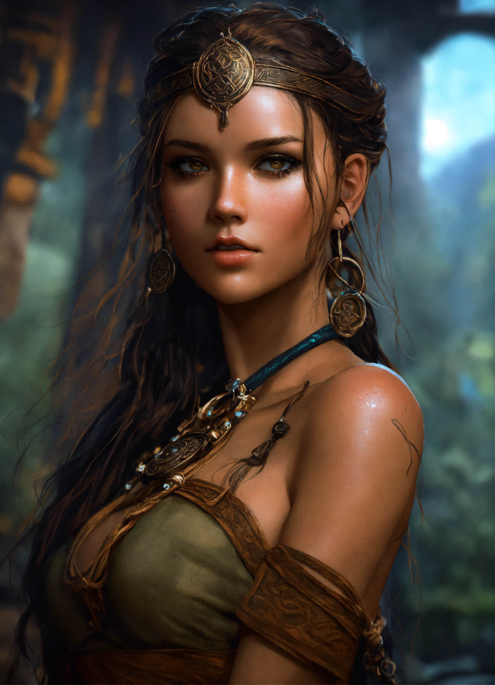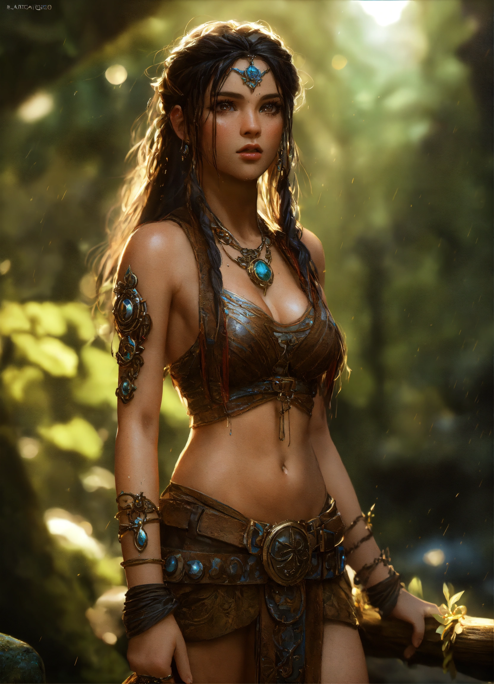 Cute celtic tribal little caprice, shapely, full body, highly detailed, digital painting, artstation, concept art, view on backside, very wet skin, smooth, sharp focus, illustration, art by luis royo and frazetta, 8 k, cinematic composition, detailed face, detailed, detailed skin, ultra-detailed, highest detail quality, ultra-realistic, photography lighting, reflection mapping, movie quality rendering, octane rendering, sharp focus, depth of field, real shadow, vfx post-production, rtx ray tracing lighting