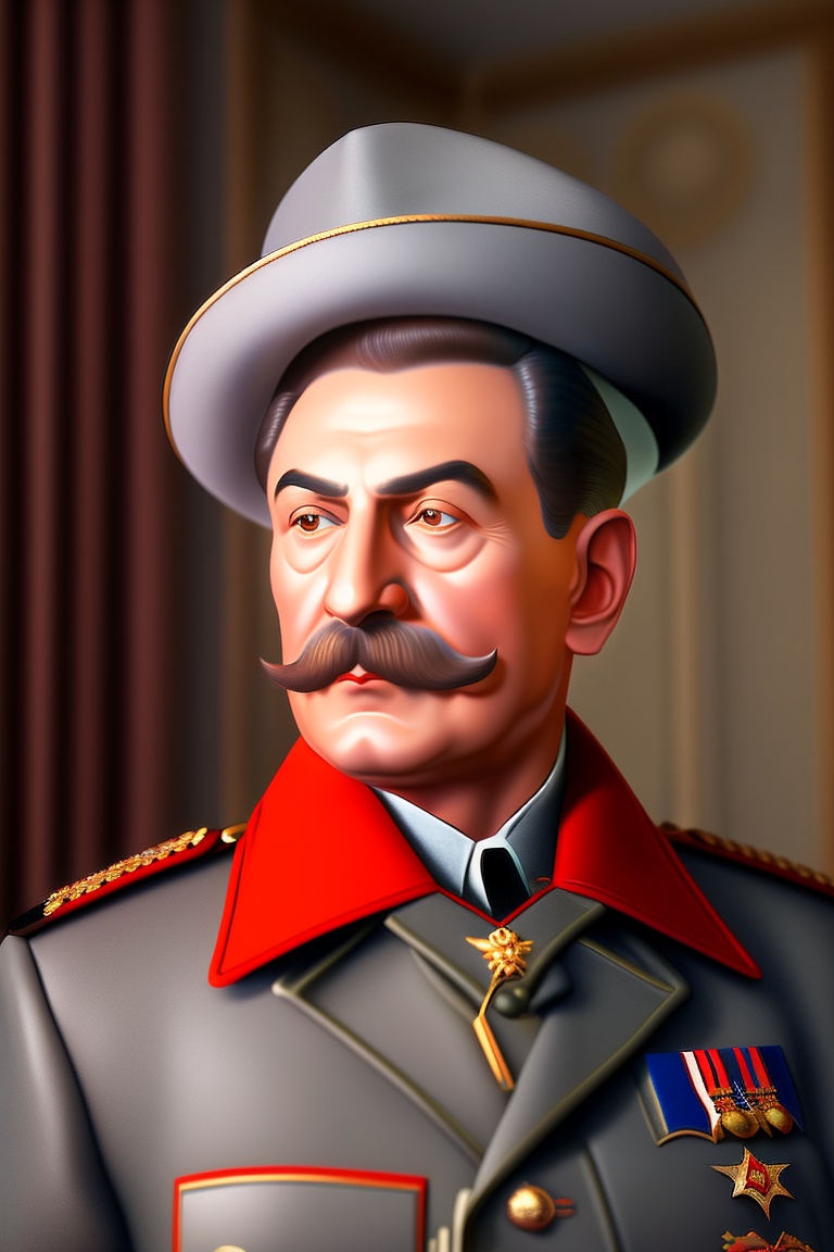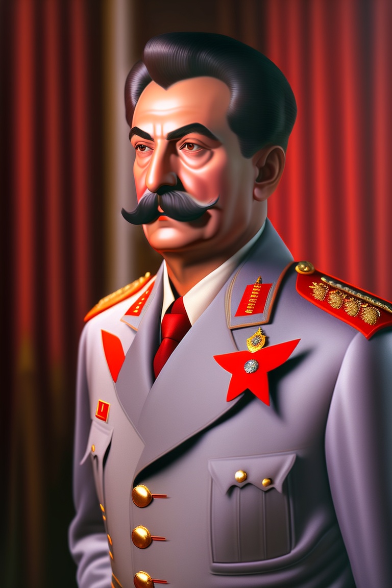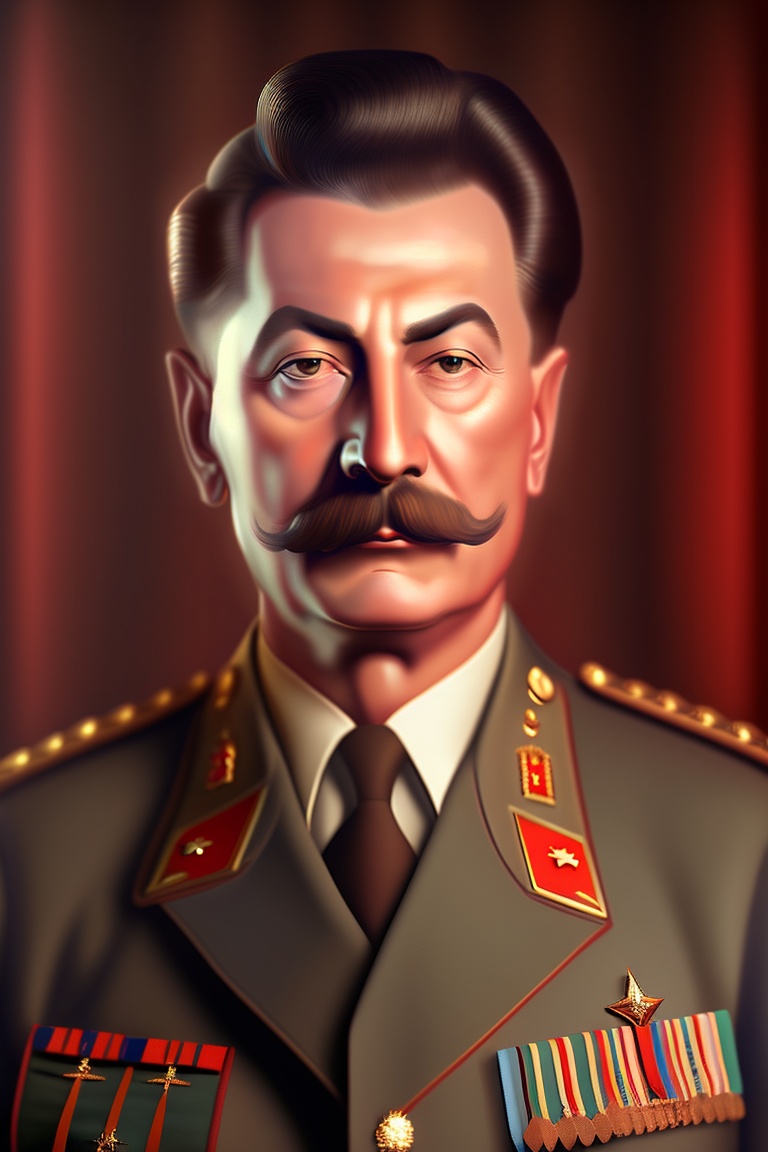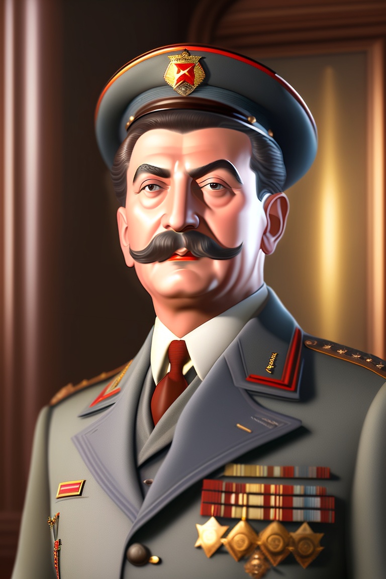 Stalin joseph (1879 - 1953): soviet statesman led the union from 1924 to 1953; looking at camera, horror, dark room, super realistic ; high resolution