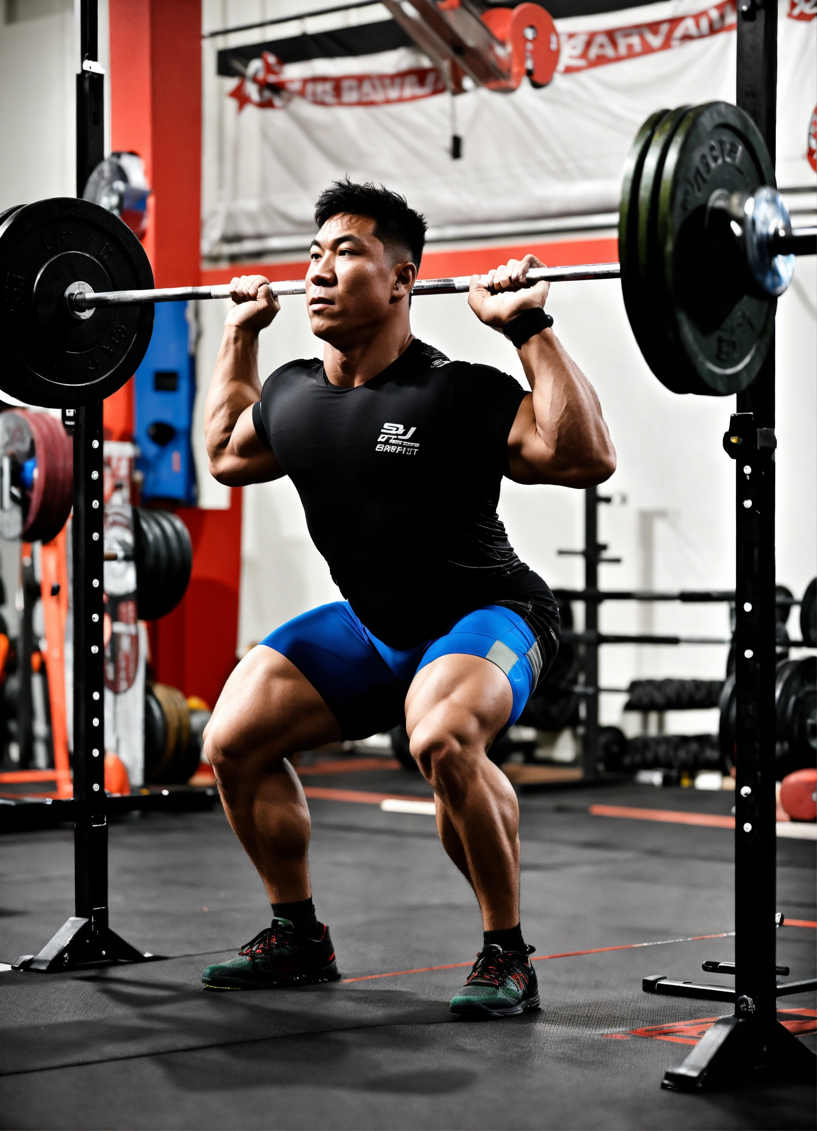 Weightlifter lifting a heavy bar
