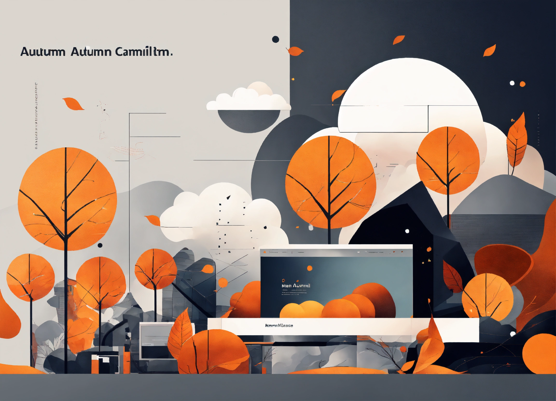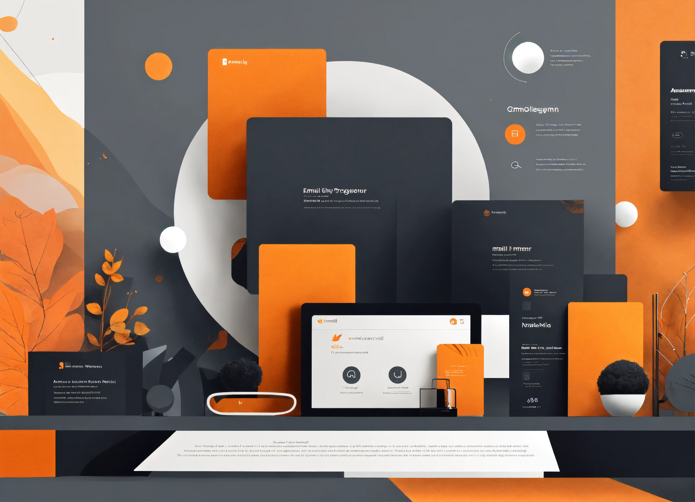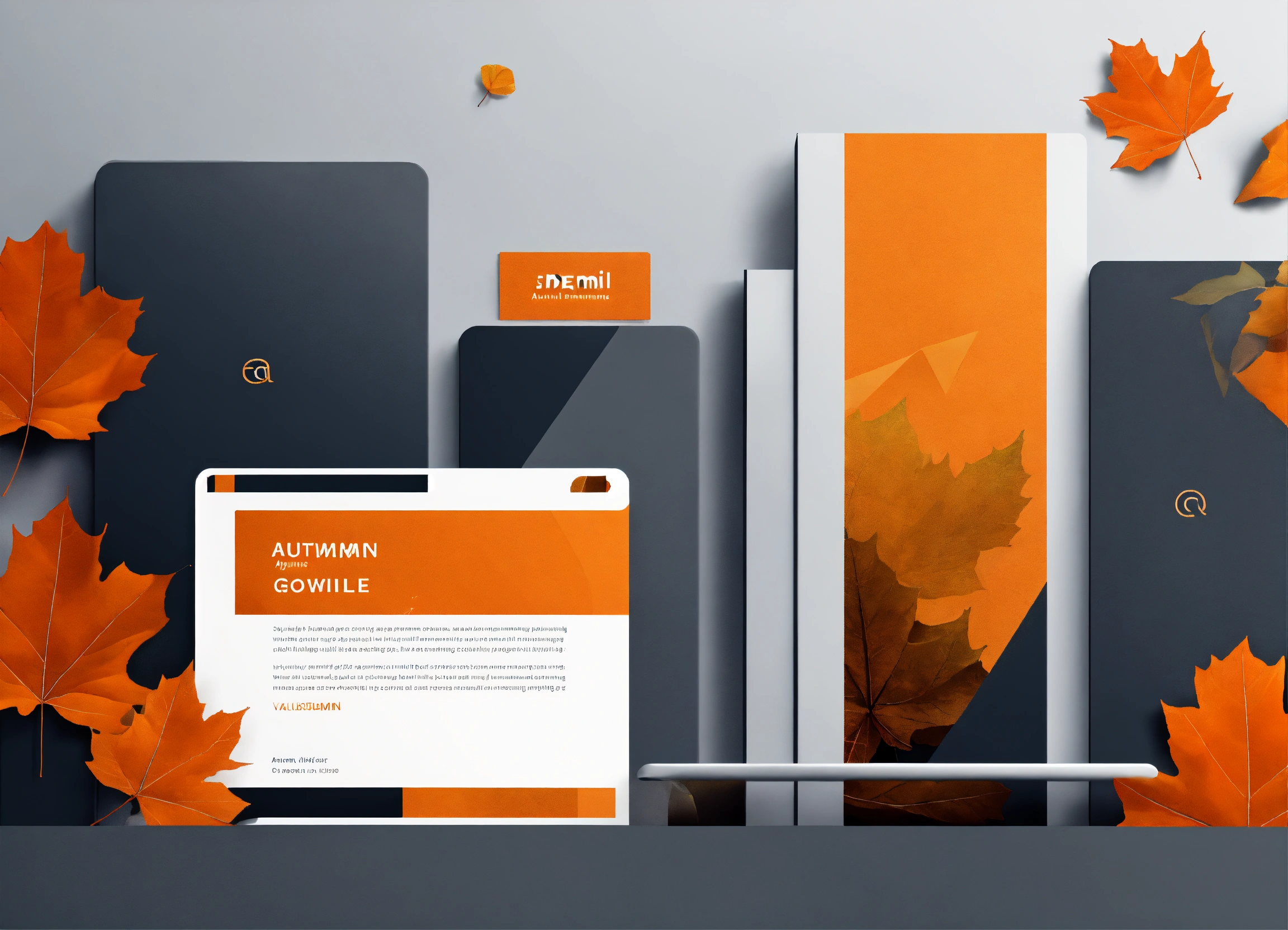 Autumn, professional and modern, clean, polished look with clean lines and bright colors, black, dark gray, orange accents, minimalist design, dynamic images, abstract or geometric shapes, symbols of growth, progress and innovation that are relevant for email marketing, stylized email images, professional, modern and minimalist style