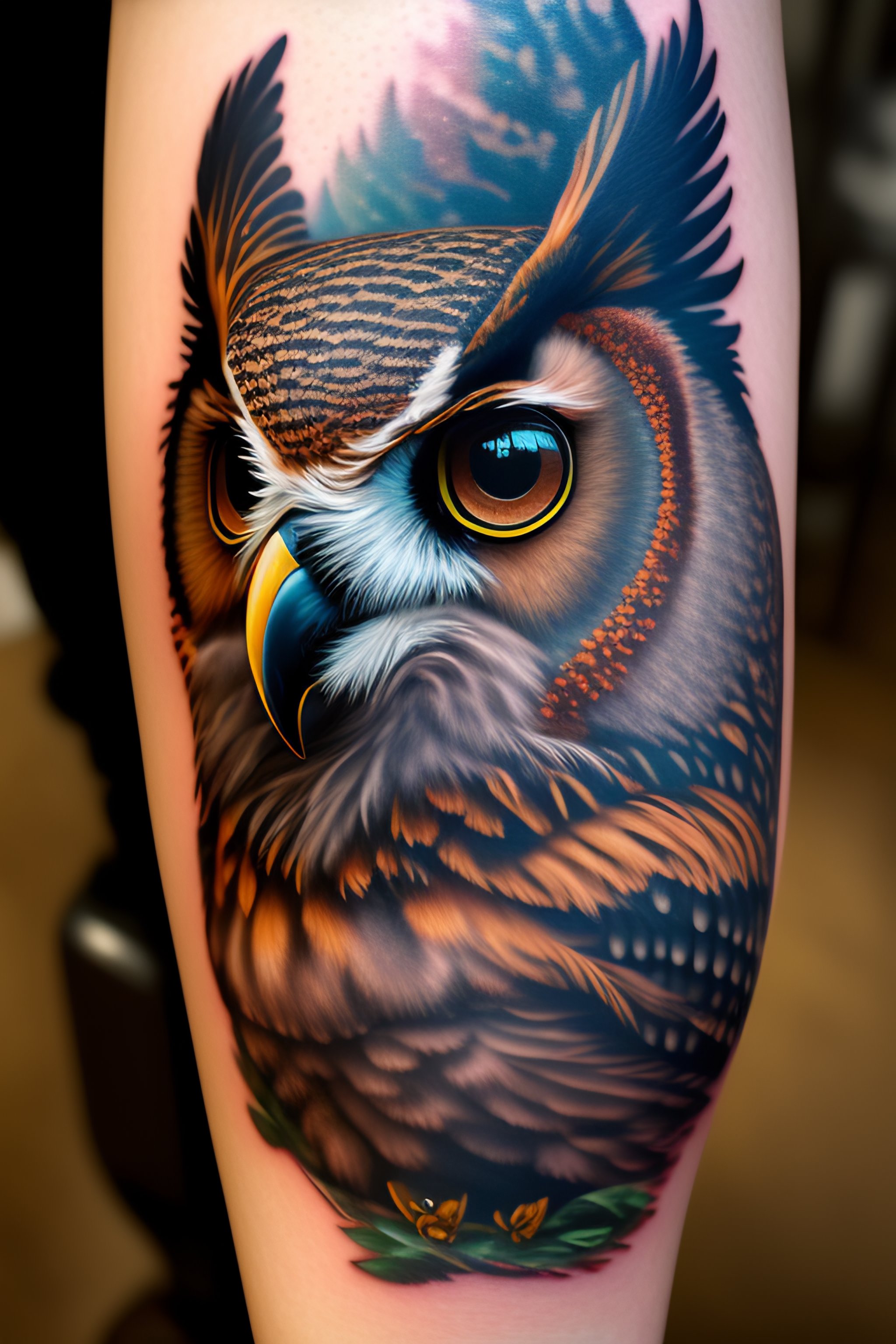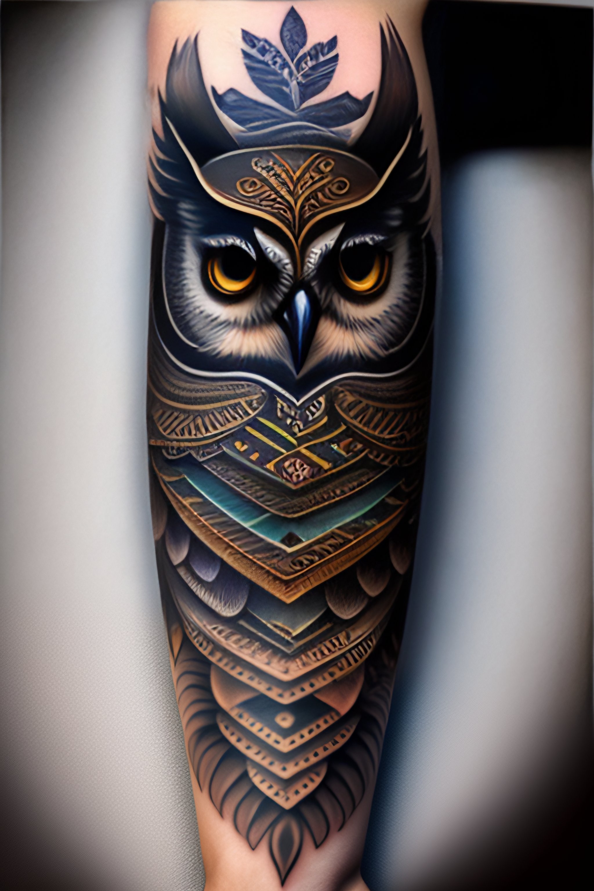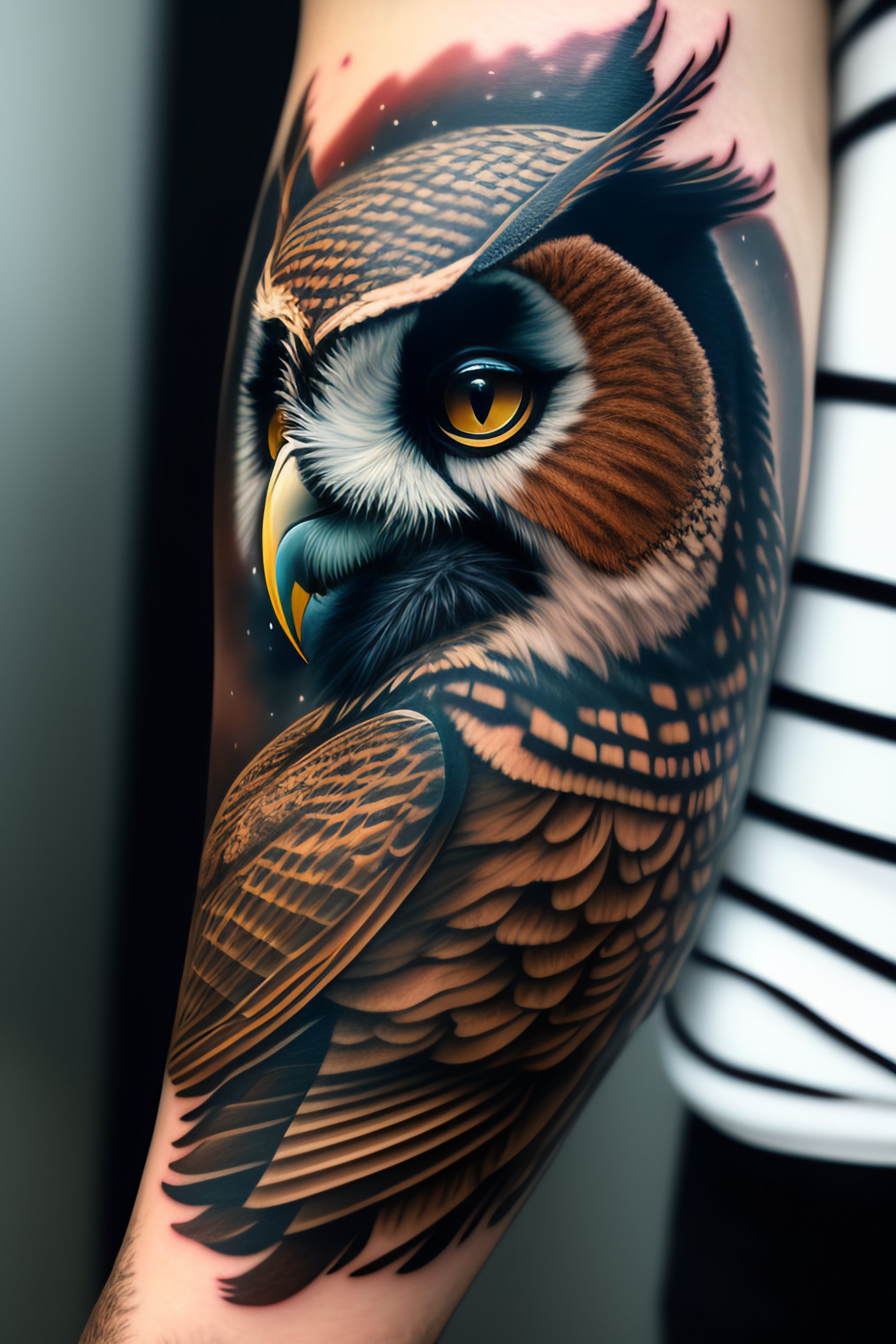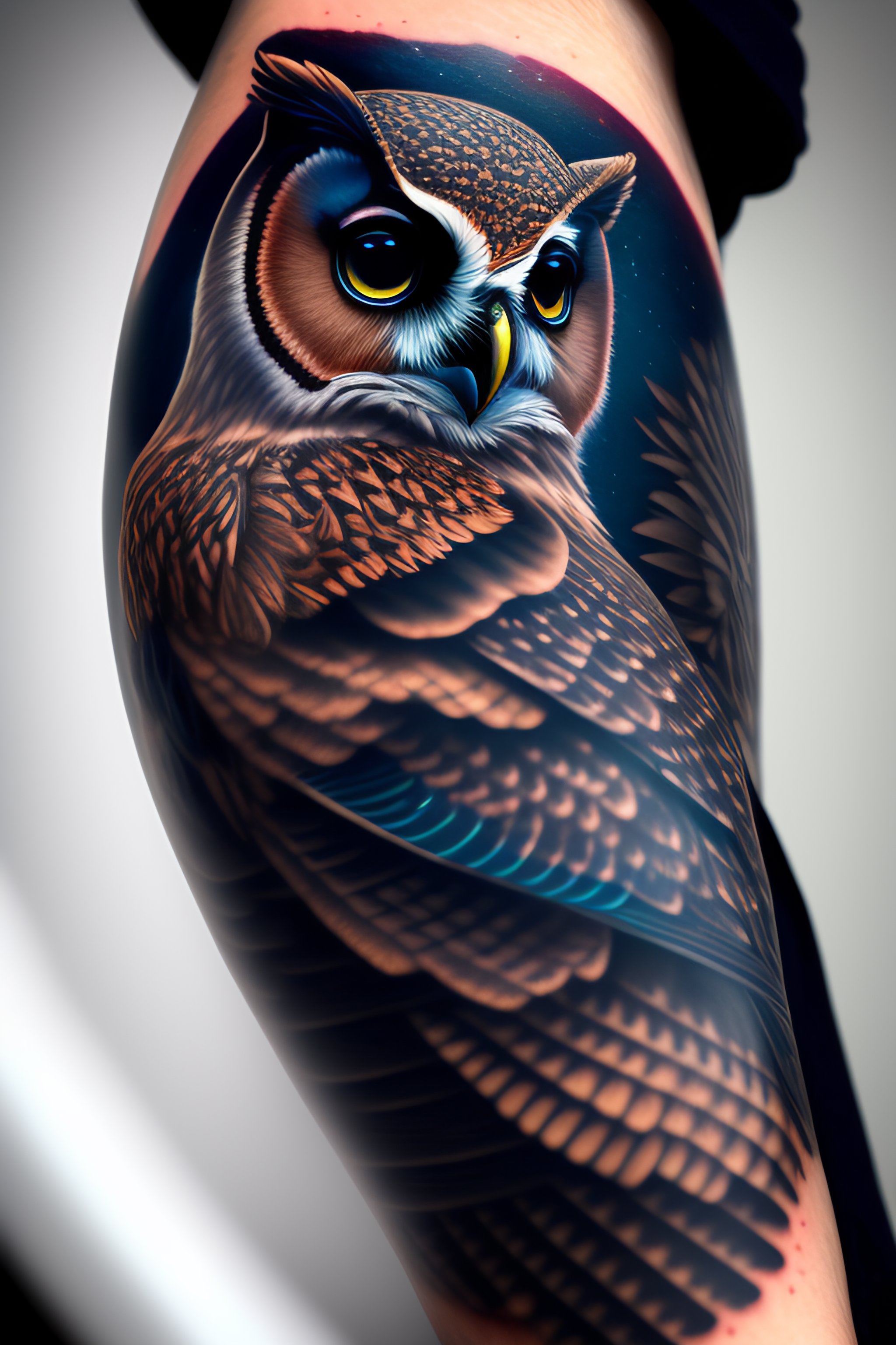 Forearm tattoo owl 8k highly detailed