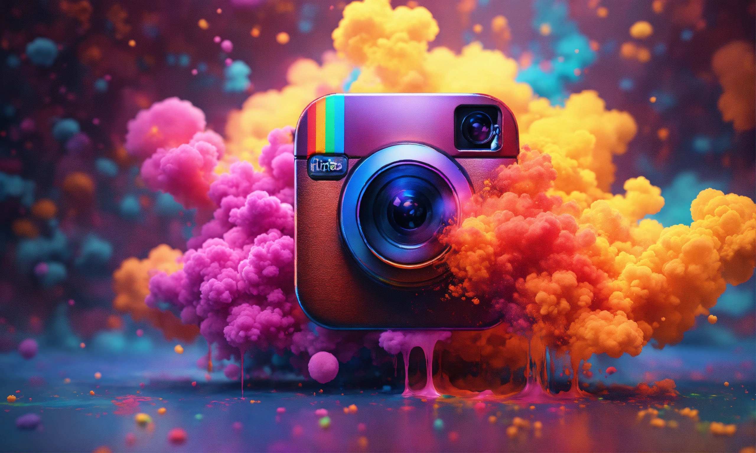Instagram logo, art, colourful, ink cloud, loose painting style, intricate detail, cinematic lighting, octane render, 8k render, volumetric lighting