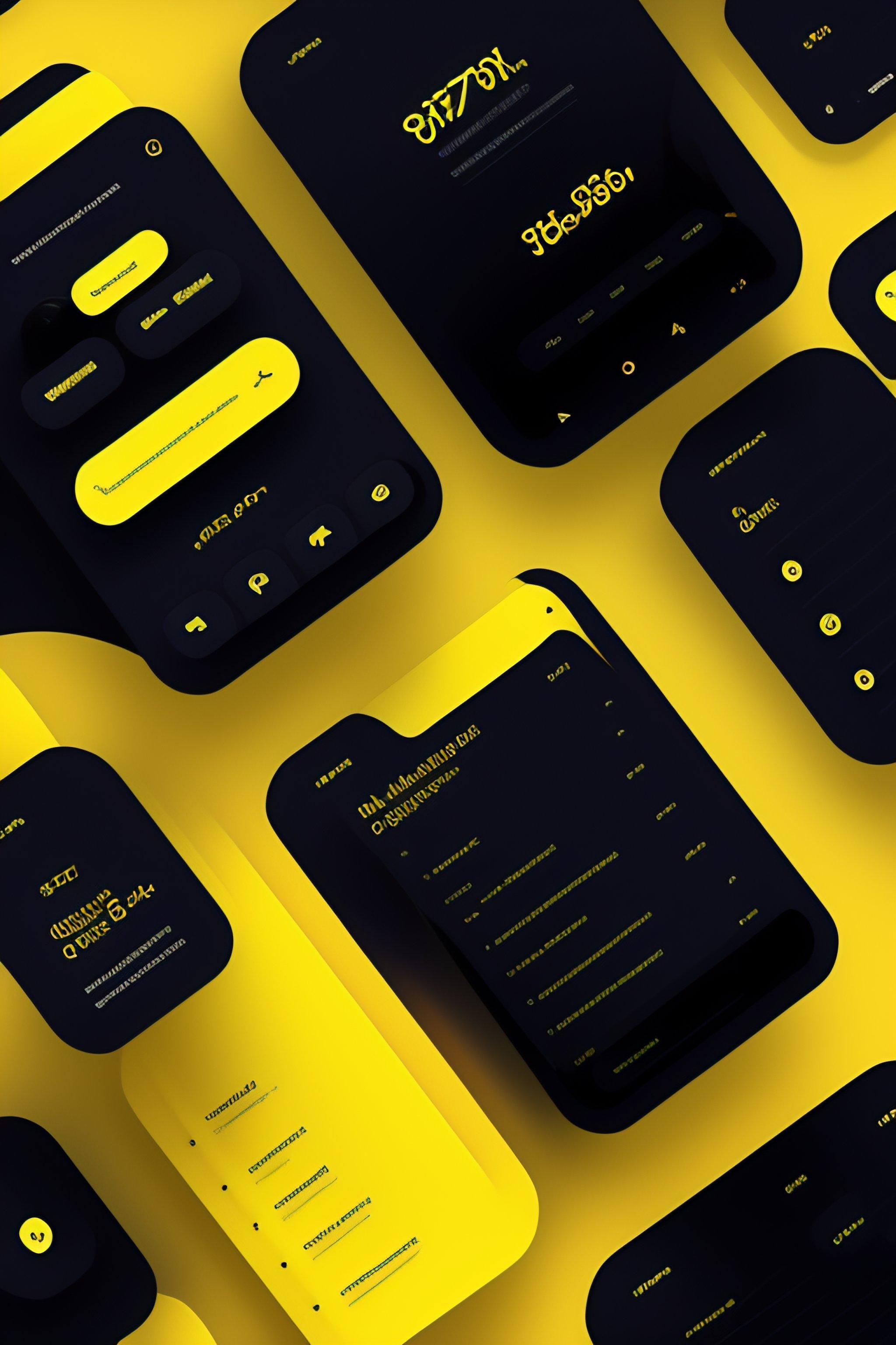 Slick, layout, ui/ux design, ux research, mobile ui ux, wireframe background black, yellow accent, dashboard, dark shadow --stylish 700