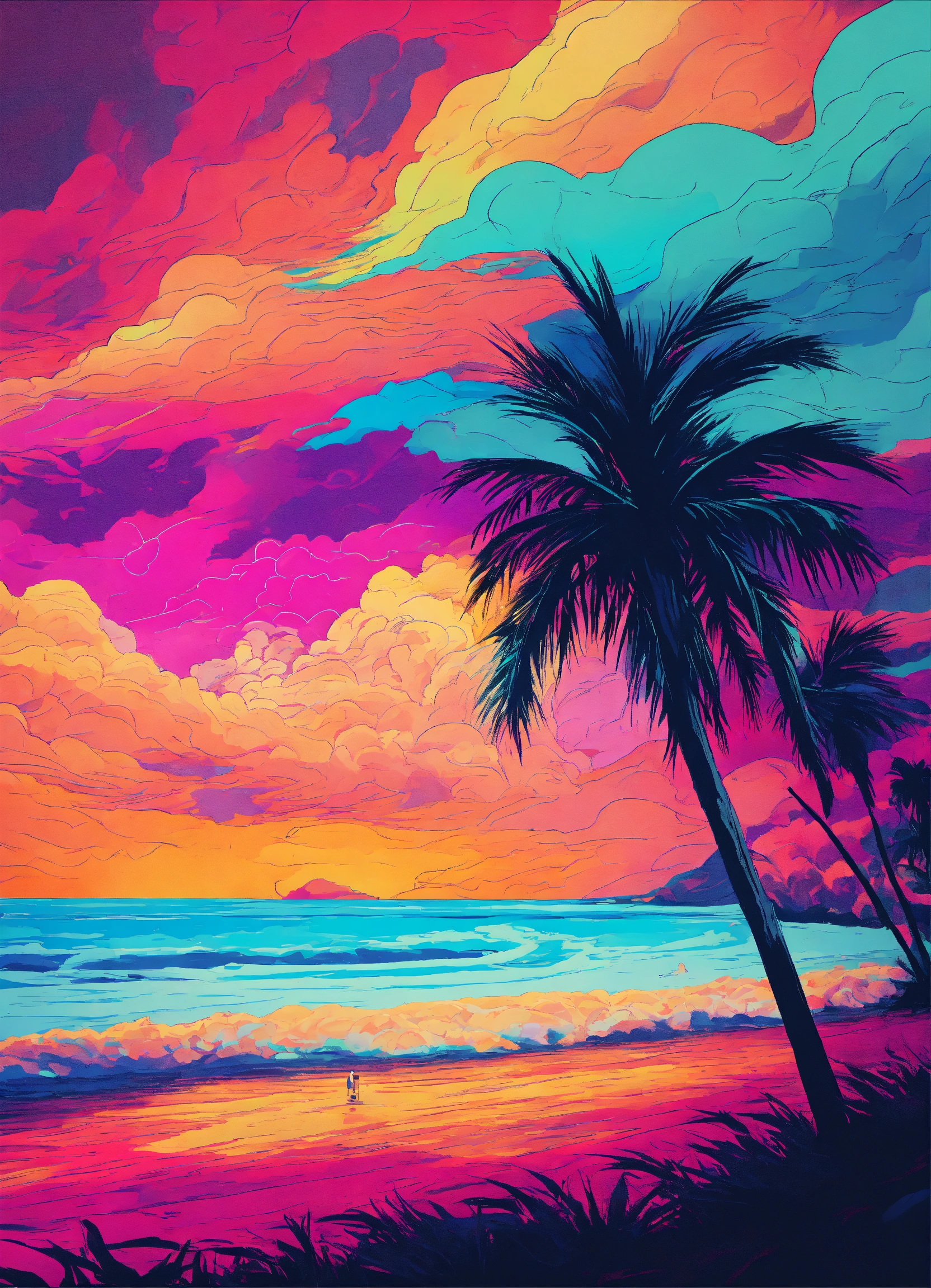 pop art with cool tones.