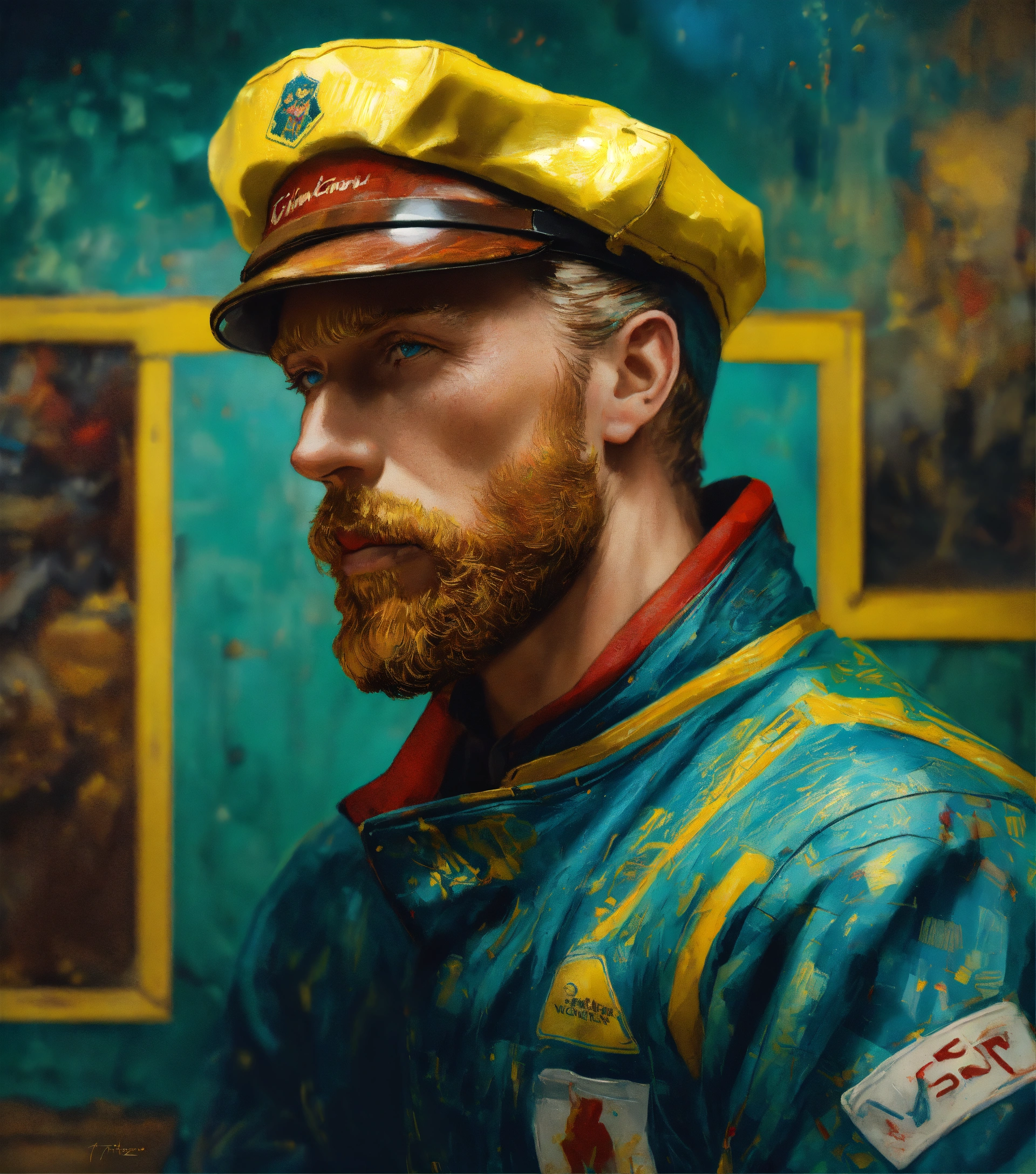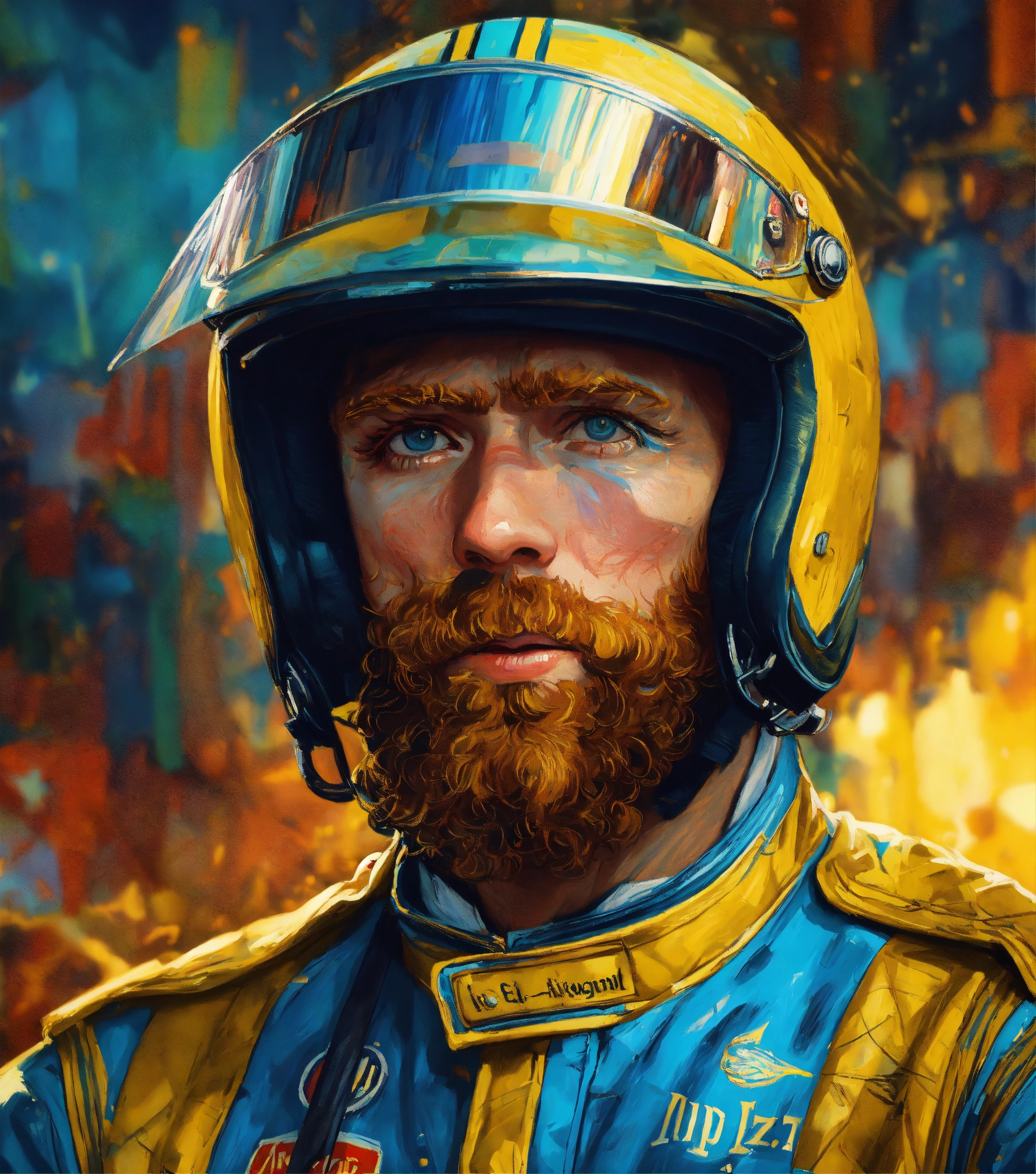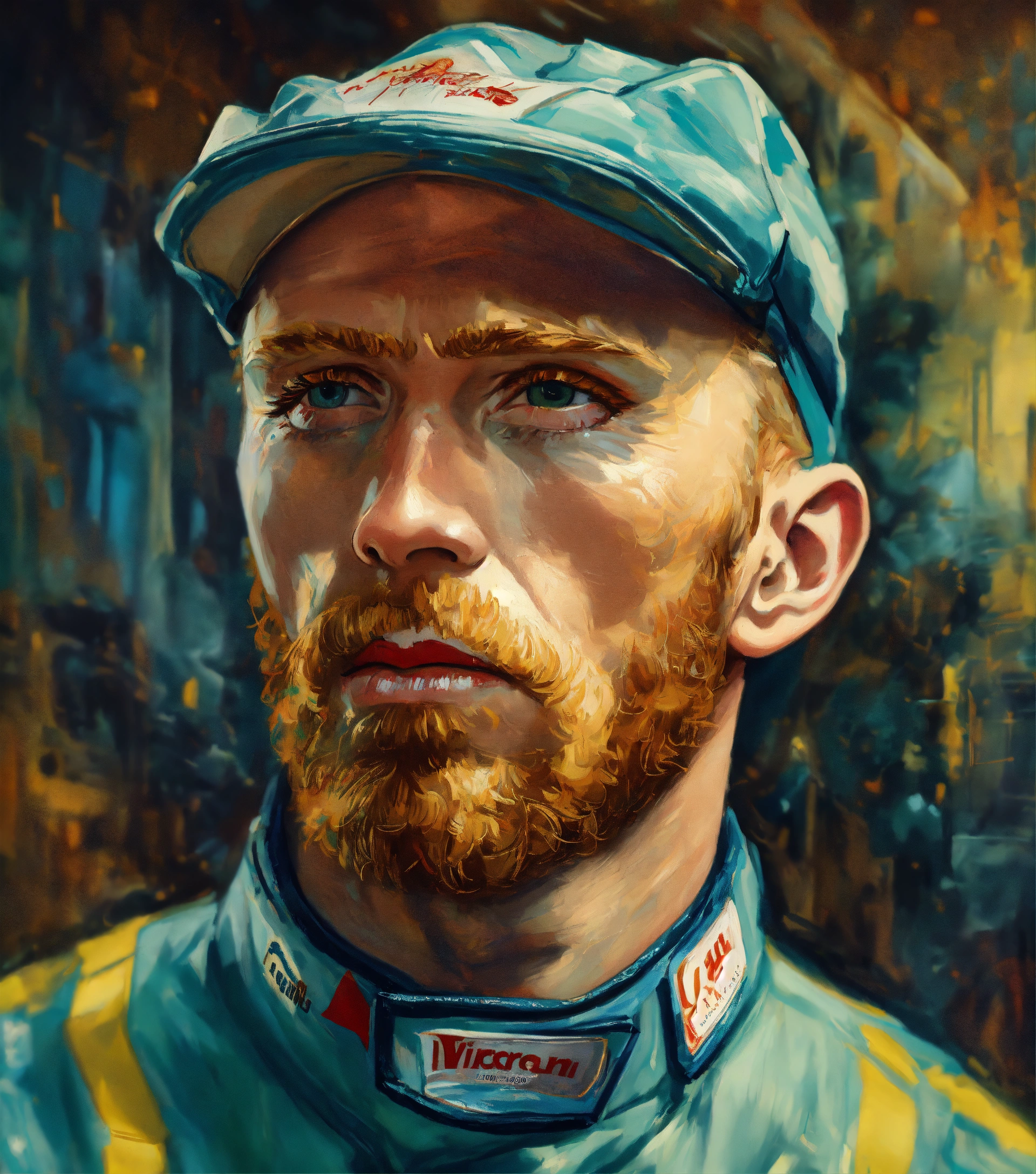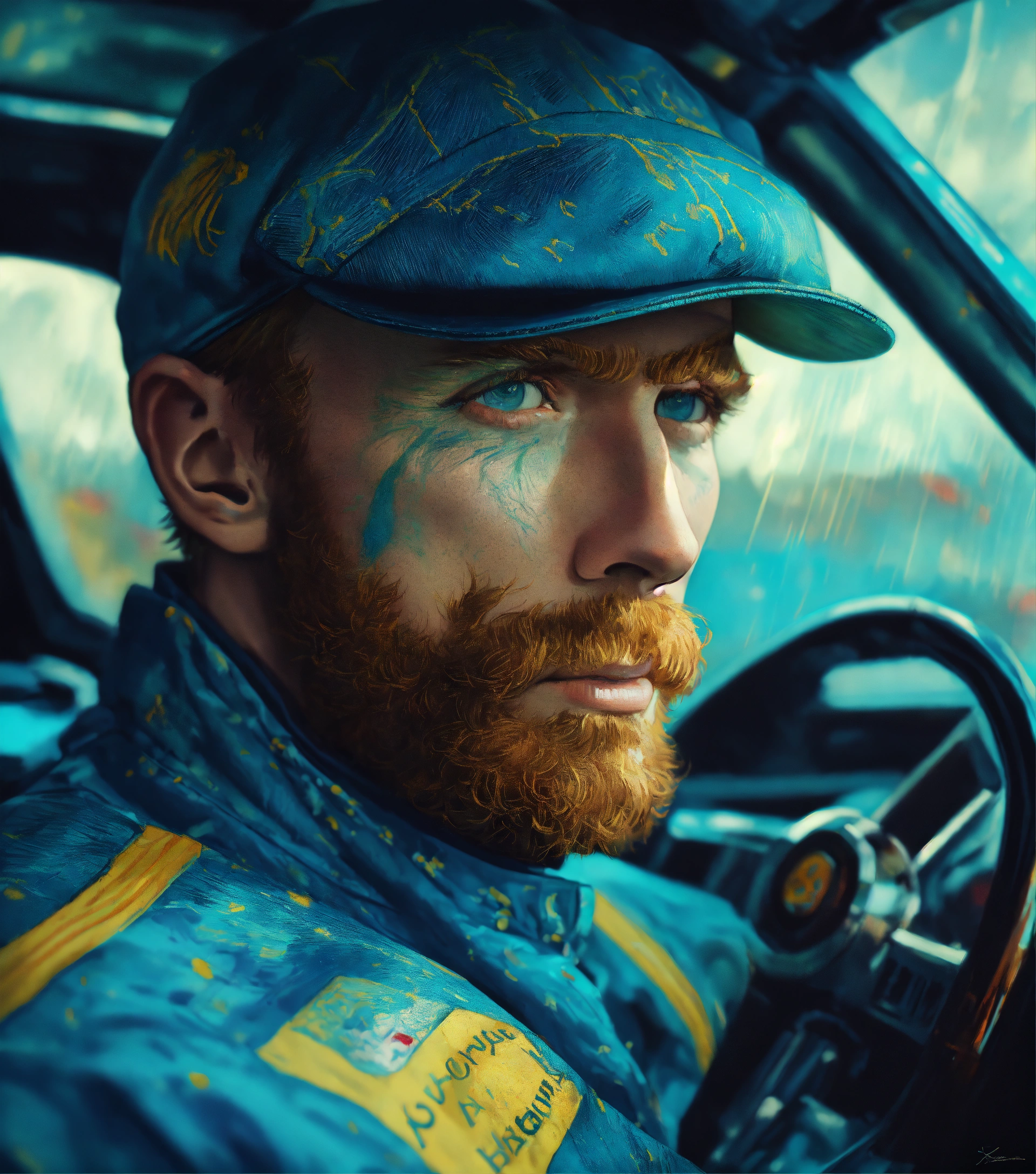 "portrait of vincent van gogh as a race car driver by artgerm, pixar, carne griffiths, gil elvgren, lou xaz, norman rockwell, wlop, intricately detailed, 8k cinematic, reimagined by industrial light and magic, 4k resolution post processing"