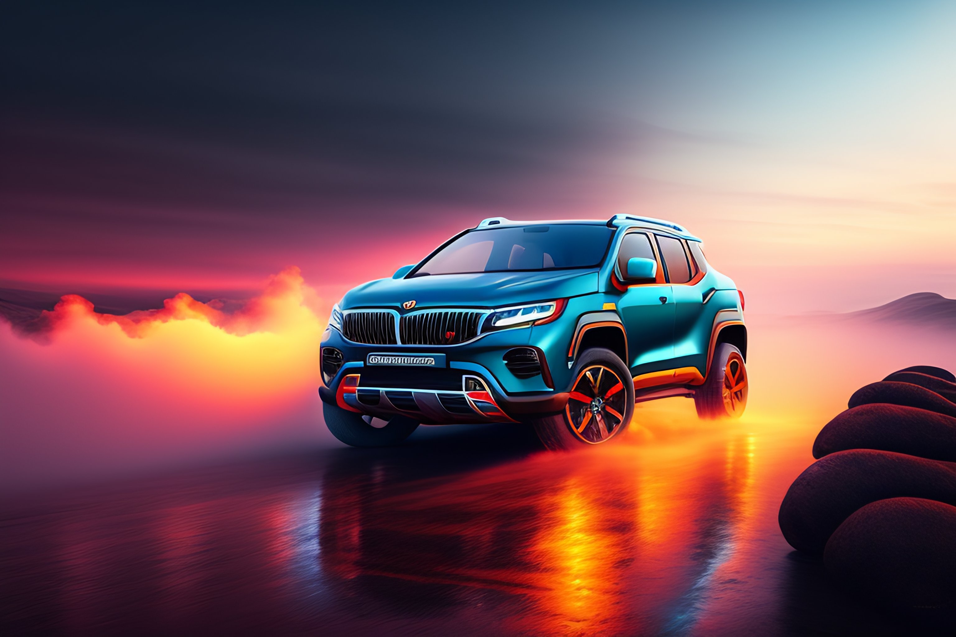 Symmetry product render poster vivid colors classical proportion 4x4 car, glowing fog intricate, elegant, highly detailed, digital painting, art station, concept art, smooth, sharp focus, illustration