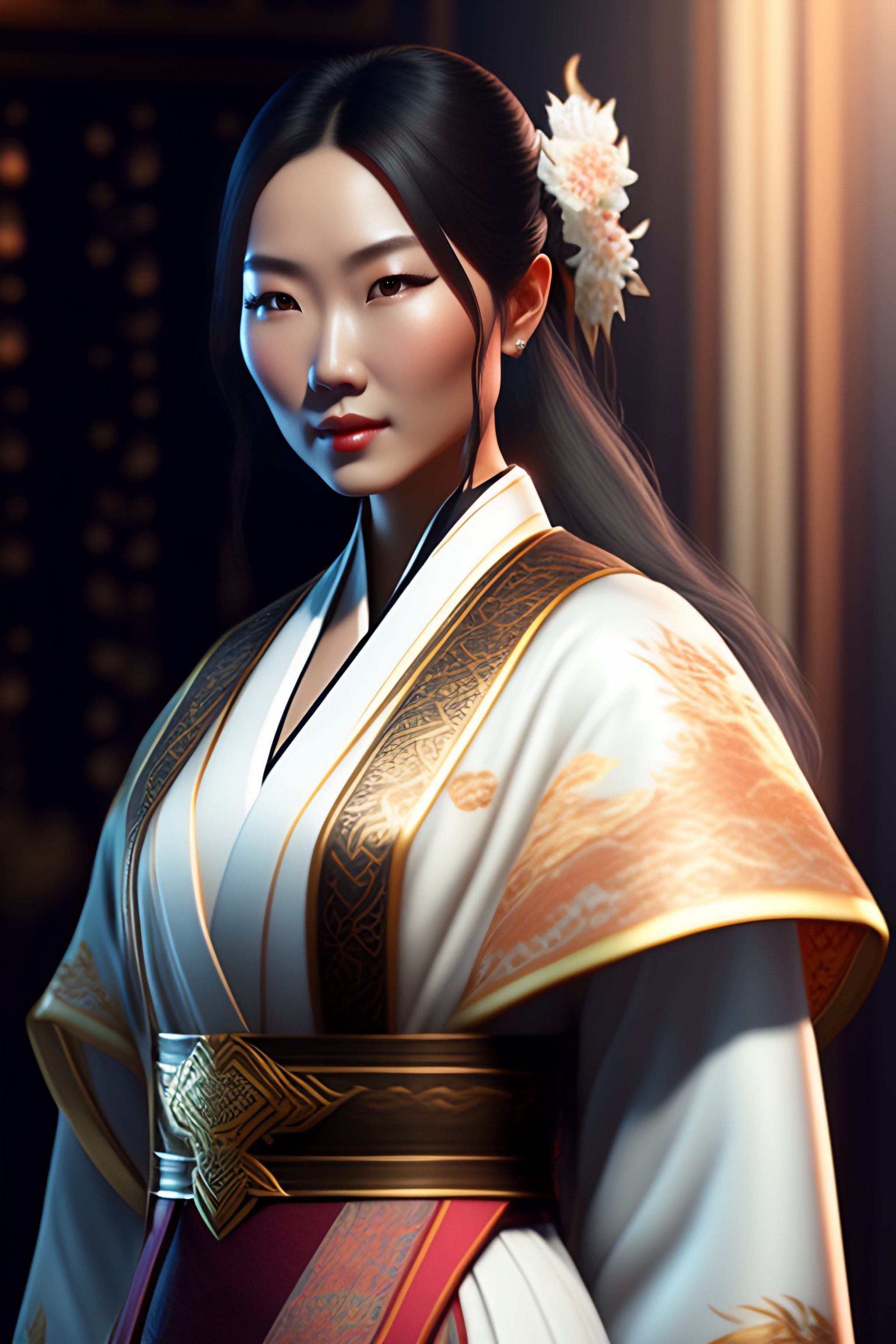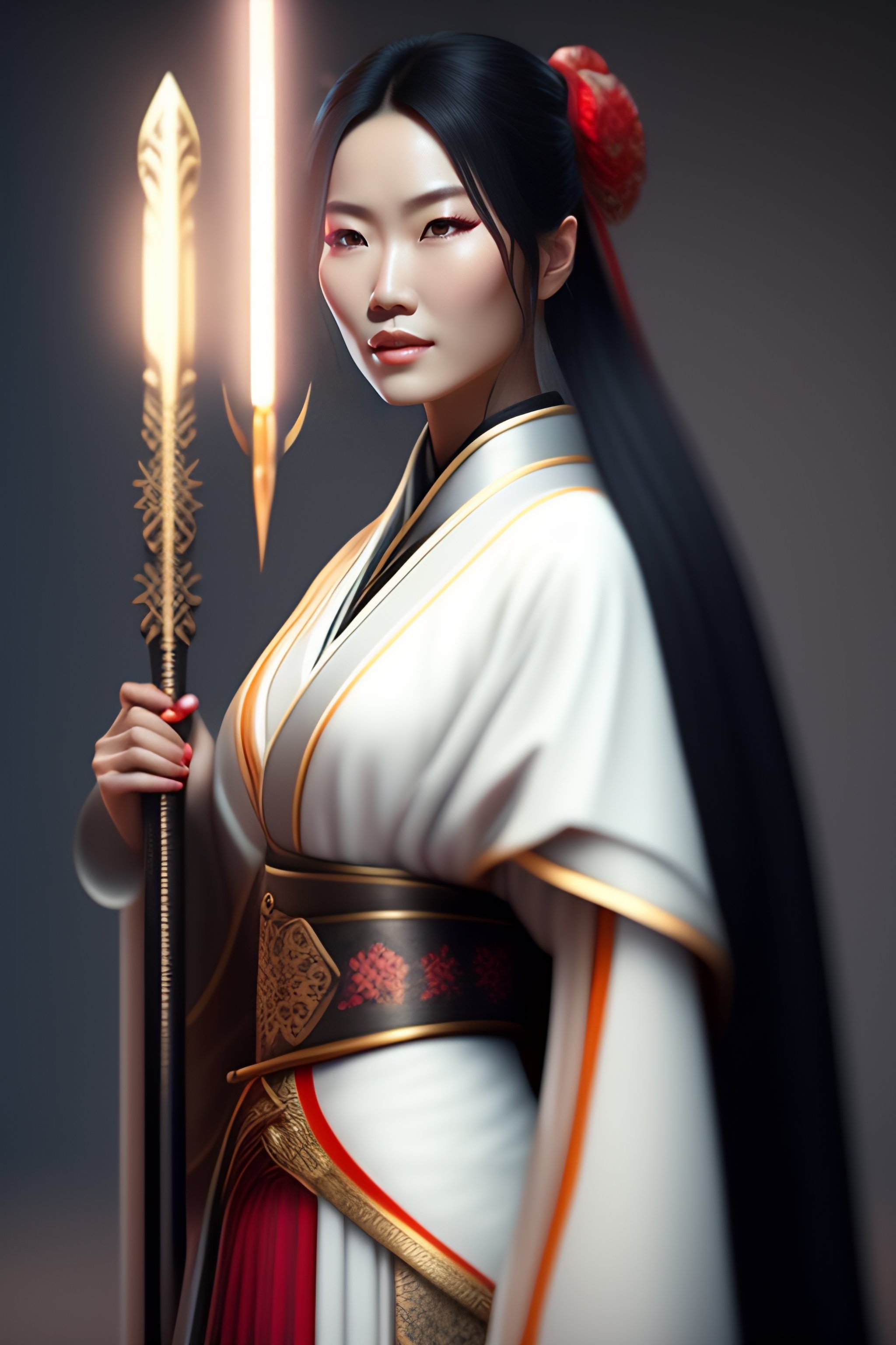 Chinese woman kunoichi, holding elementalist magic sword, fine woven white kimono. 8k ultra realistic artstation